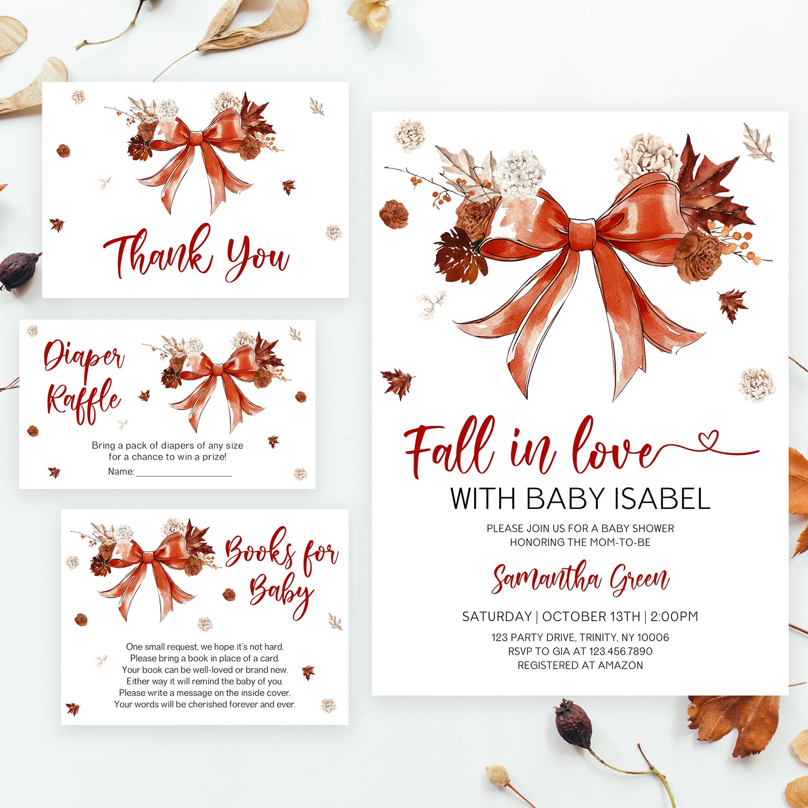 Fall Baby Shower Invite Bundle with Red Ribbon & Autumn Florals