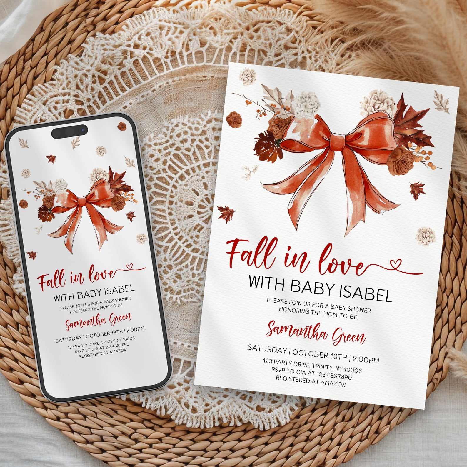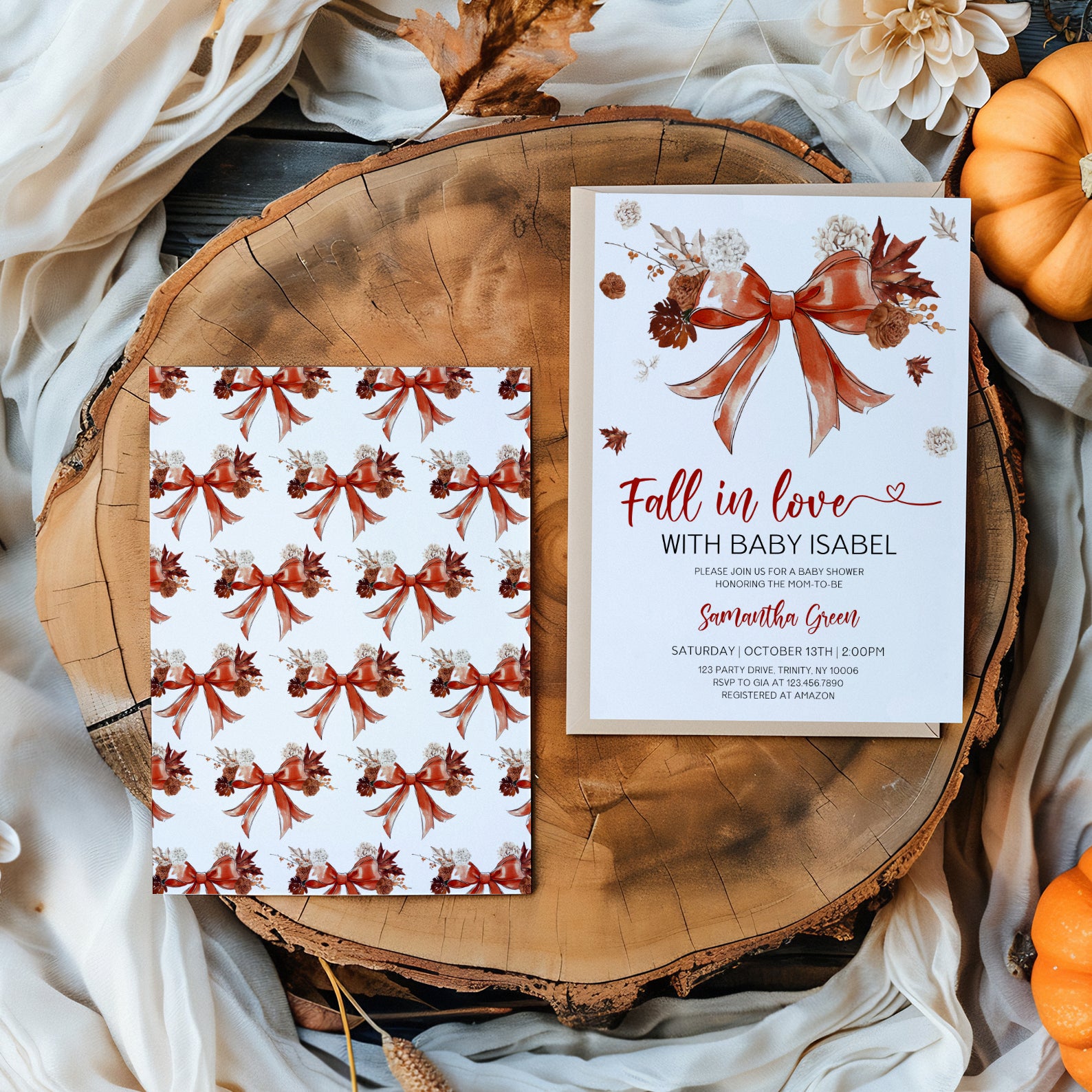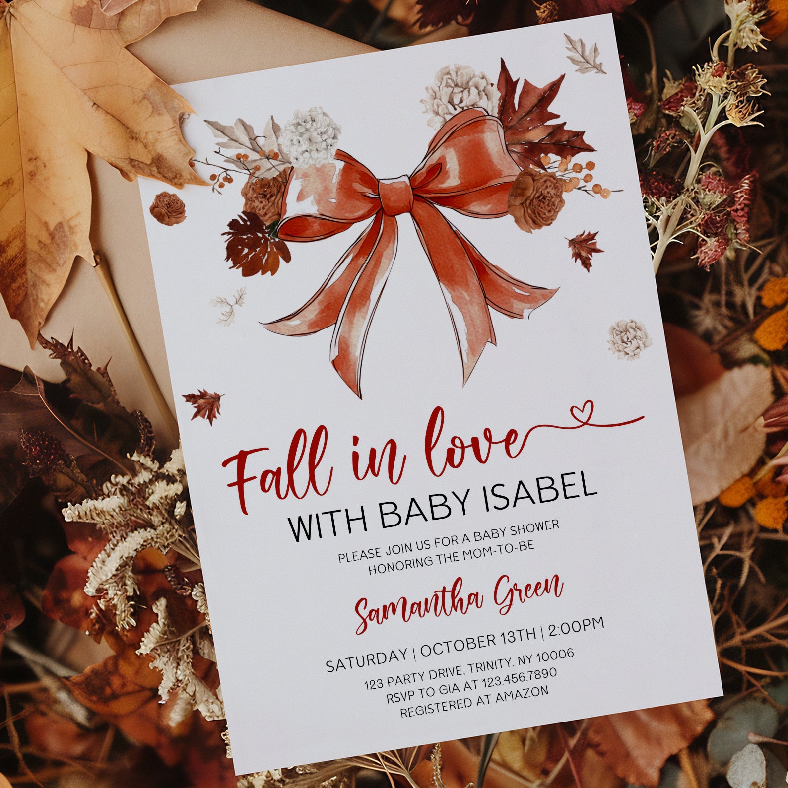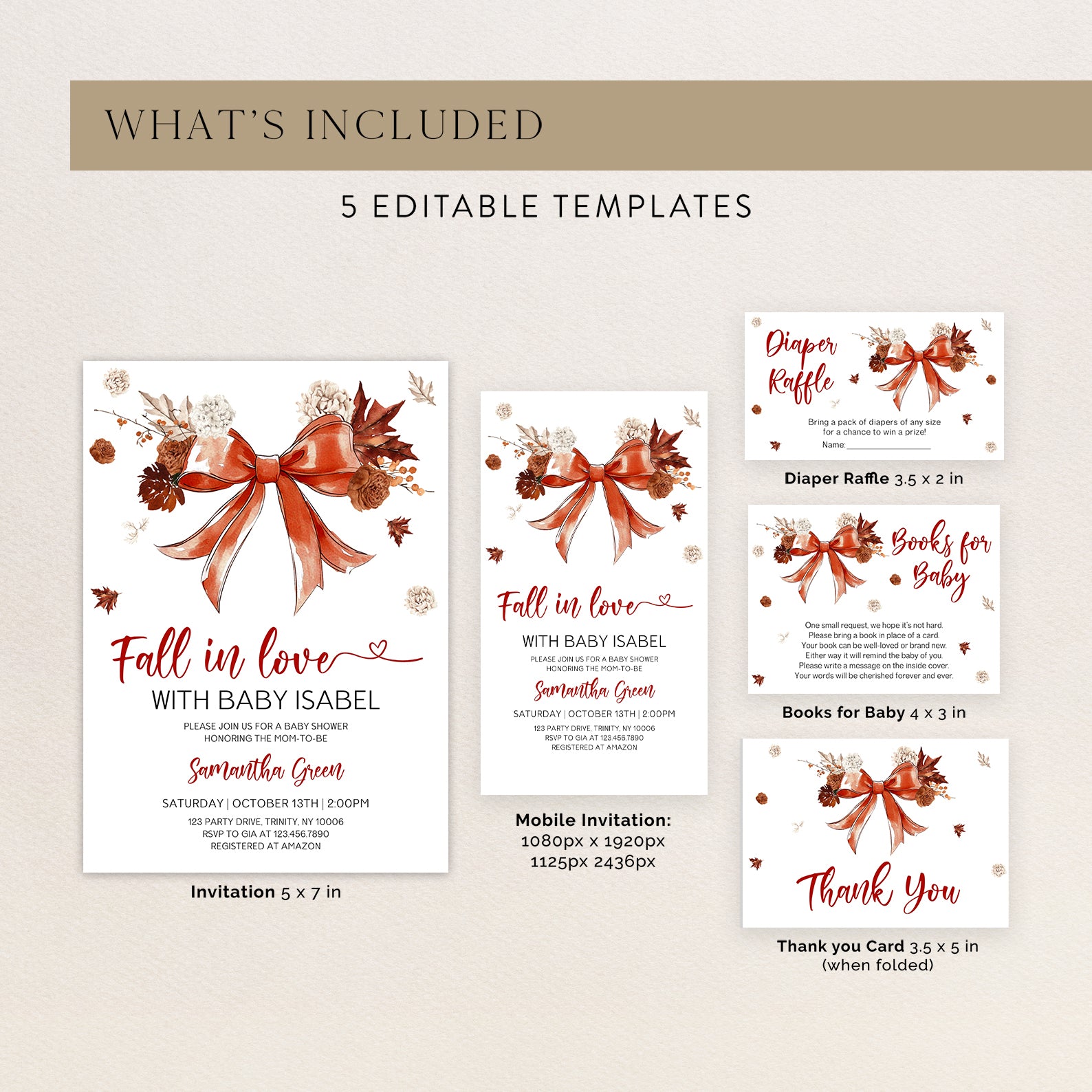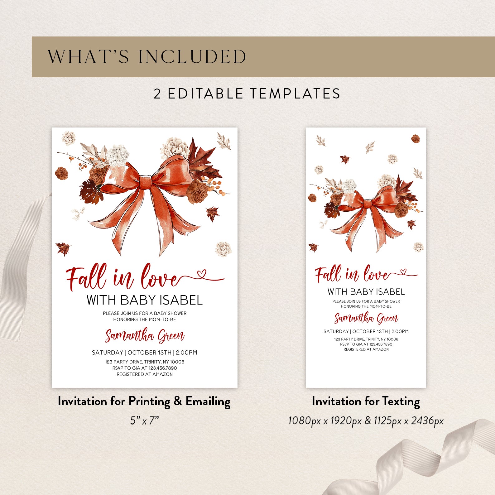 - Purchase this Fall Baby Shower Invite Bundle with Red Ribbon & Autumn Florals template