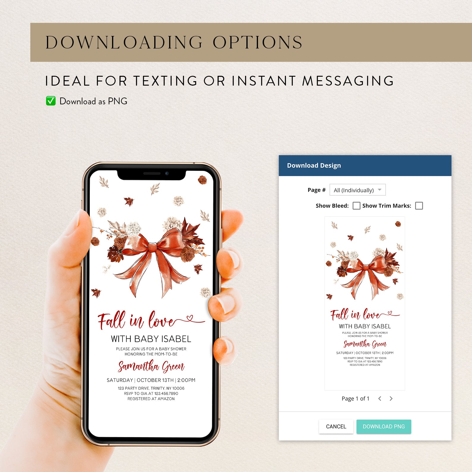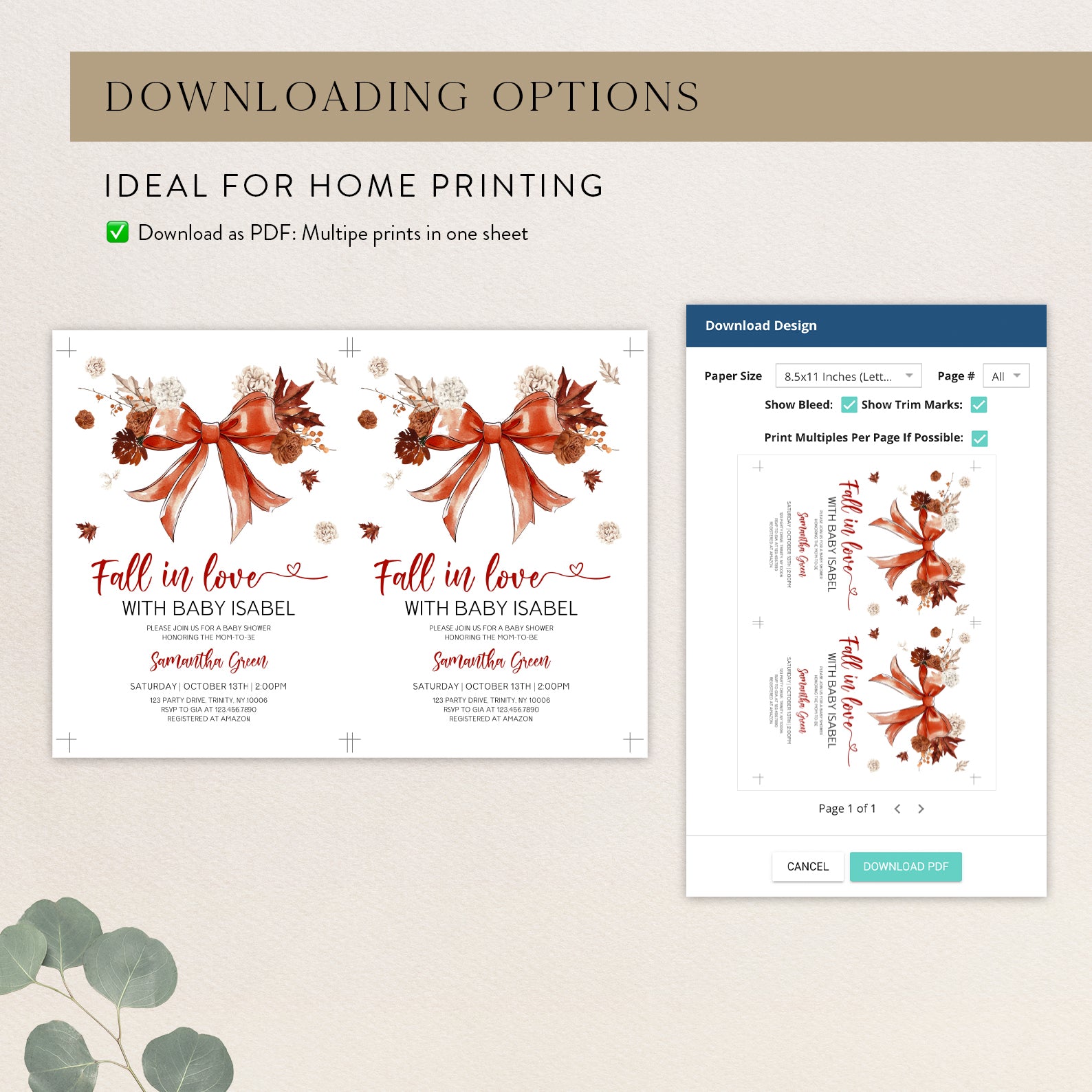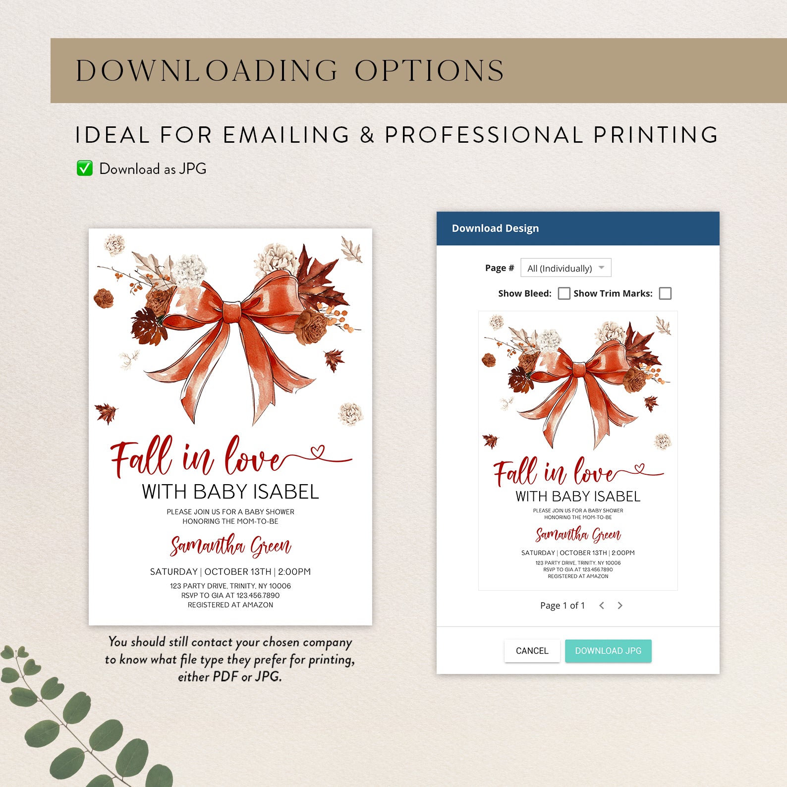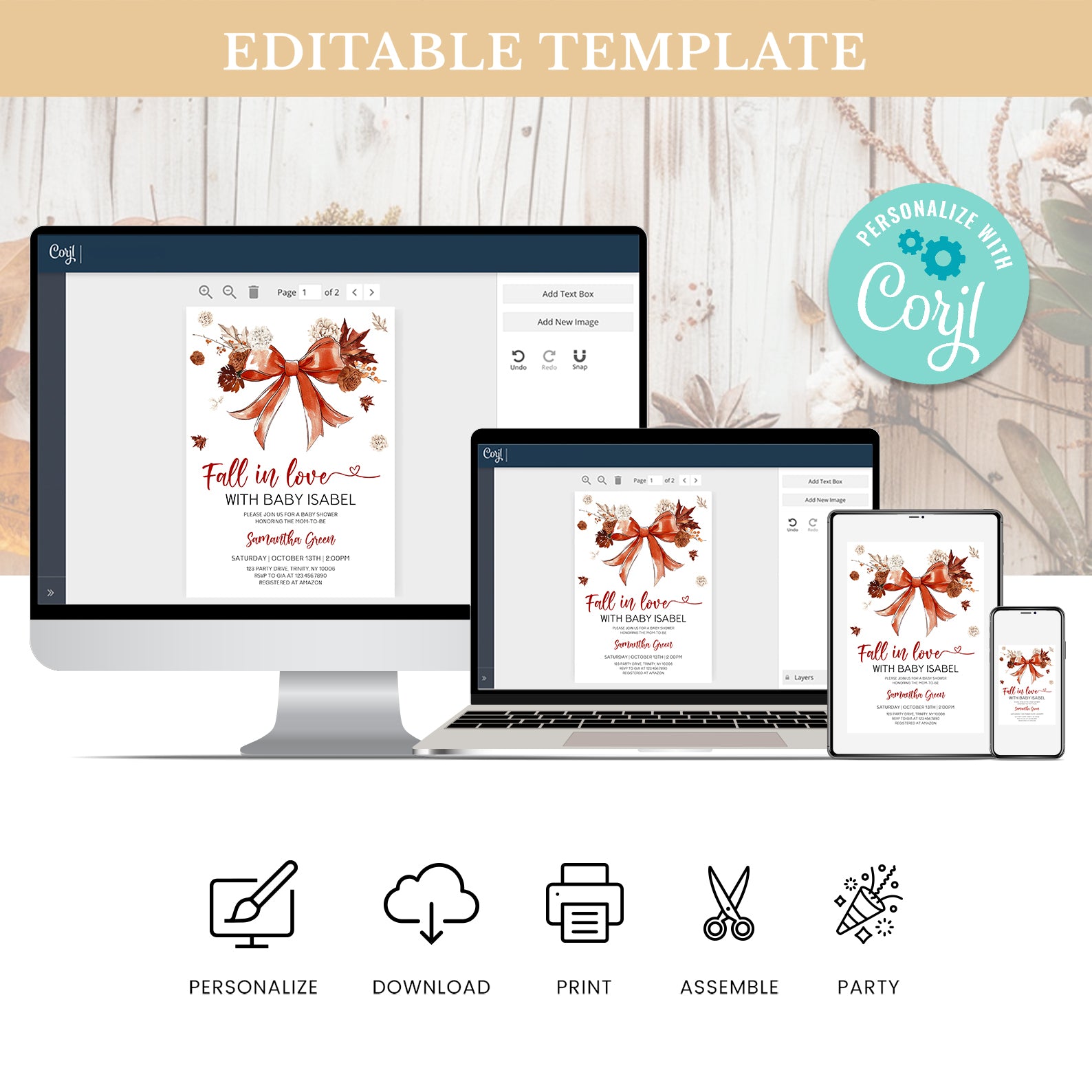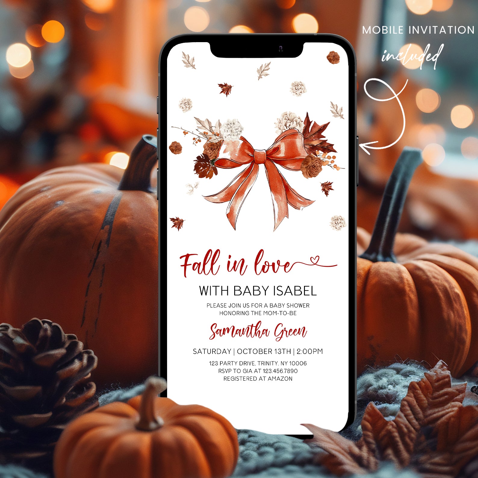 - Purchase this Fall Baby Shower Invite Bundle with Red Ribbon & Autumn Florals template