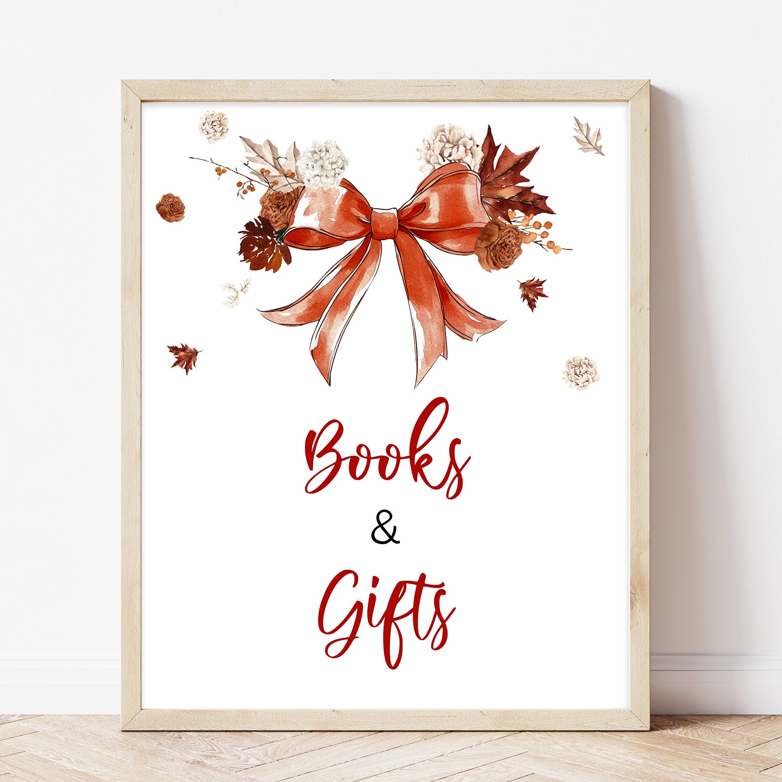 Fall Baby Shower Table Sign with Red Ribbon & Autumn Florals