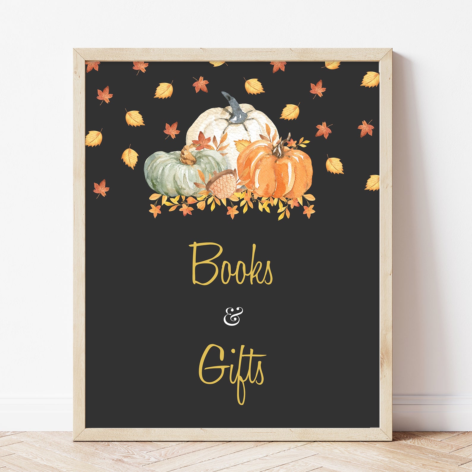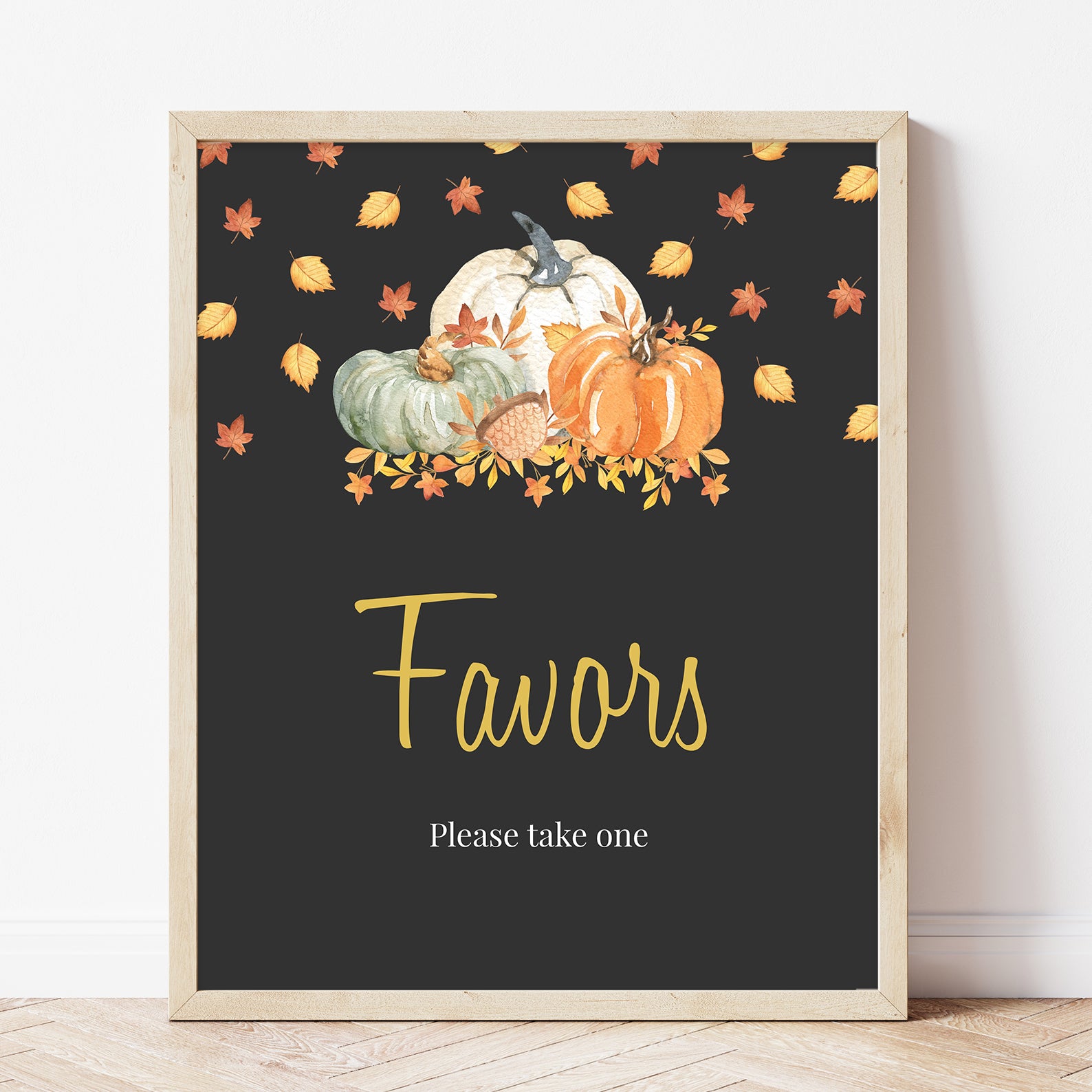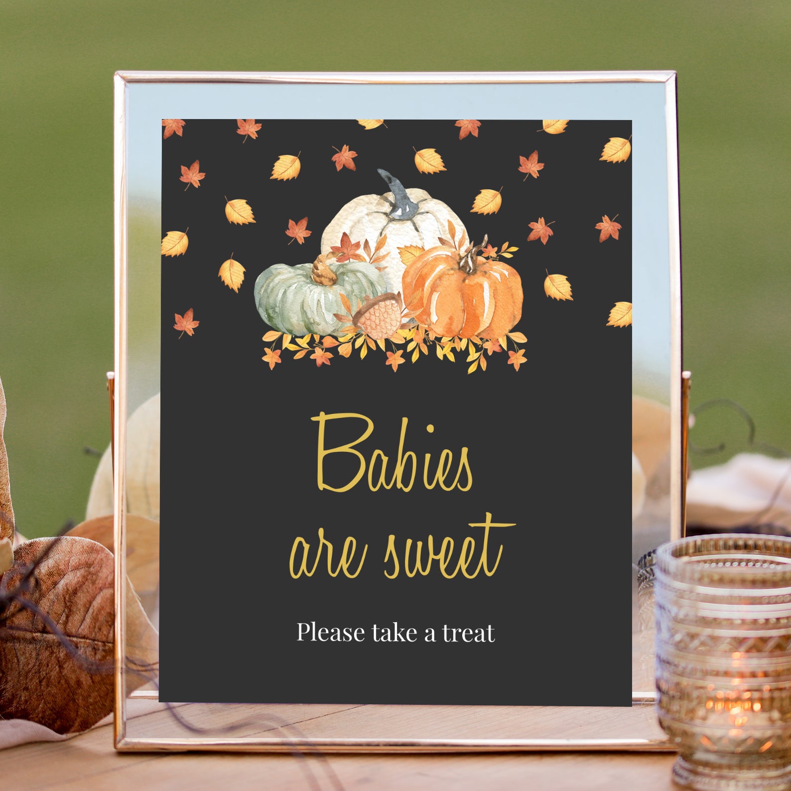 1. Purchase this Fall in Love Baby Shower Table Sign: Pumpkins and Falling Leaves template