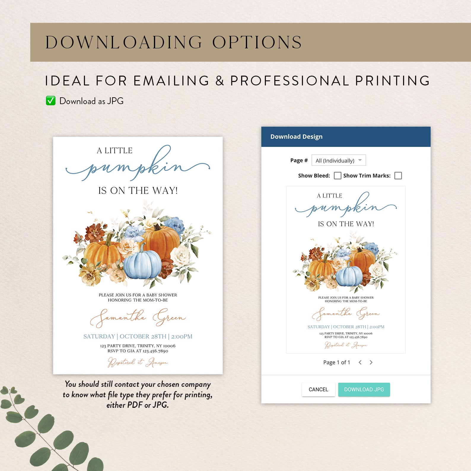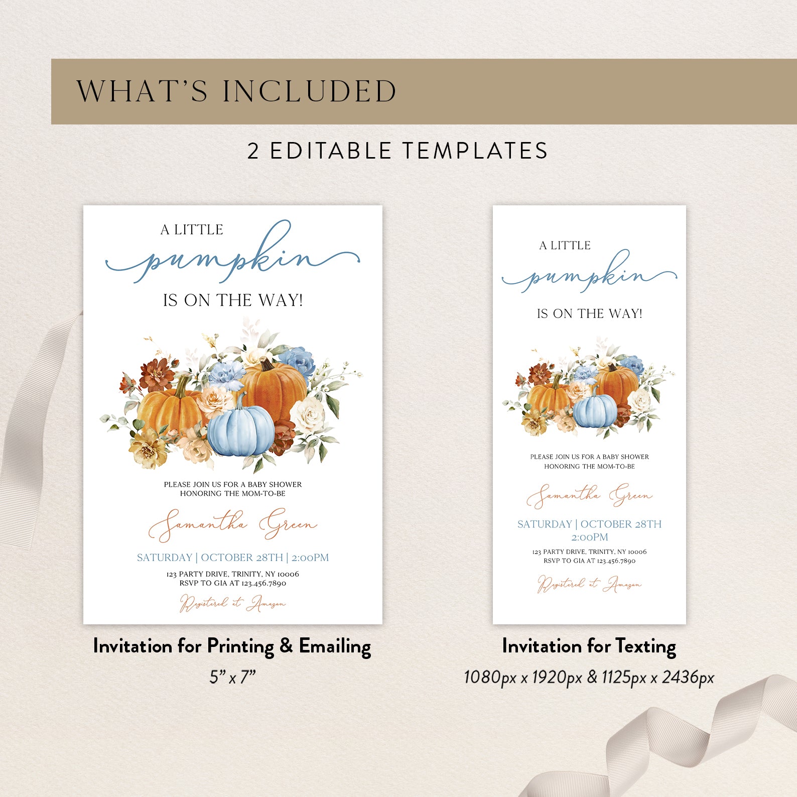 - Purchase this Floral & Pumpkin Invite Bundle: A Little Pumpkin Is on the Way template