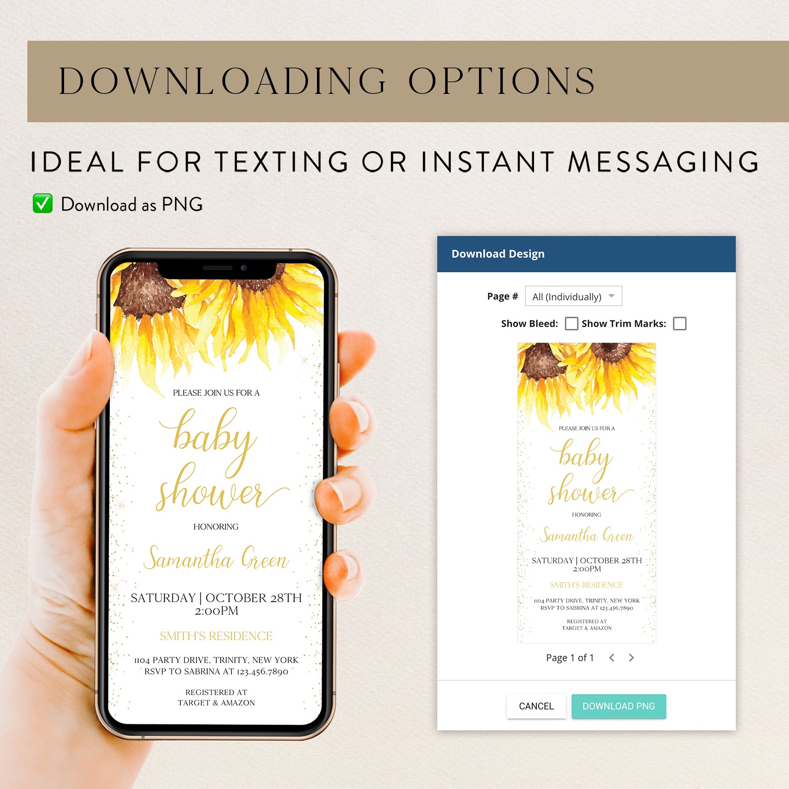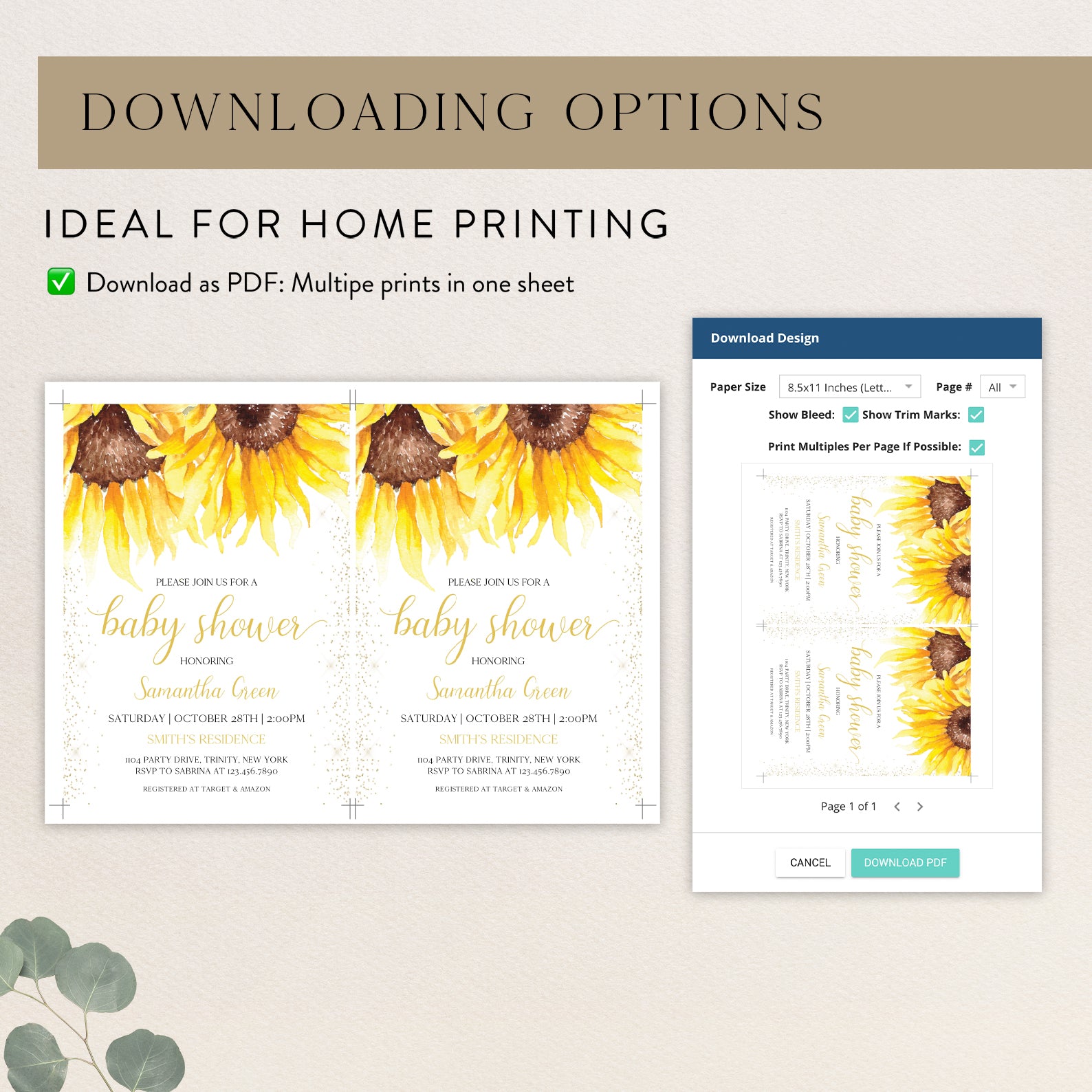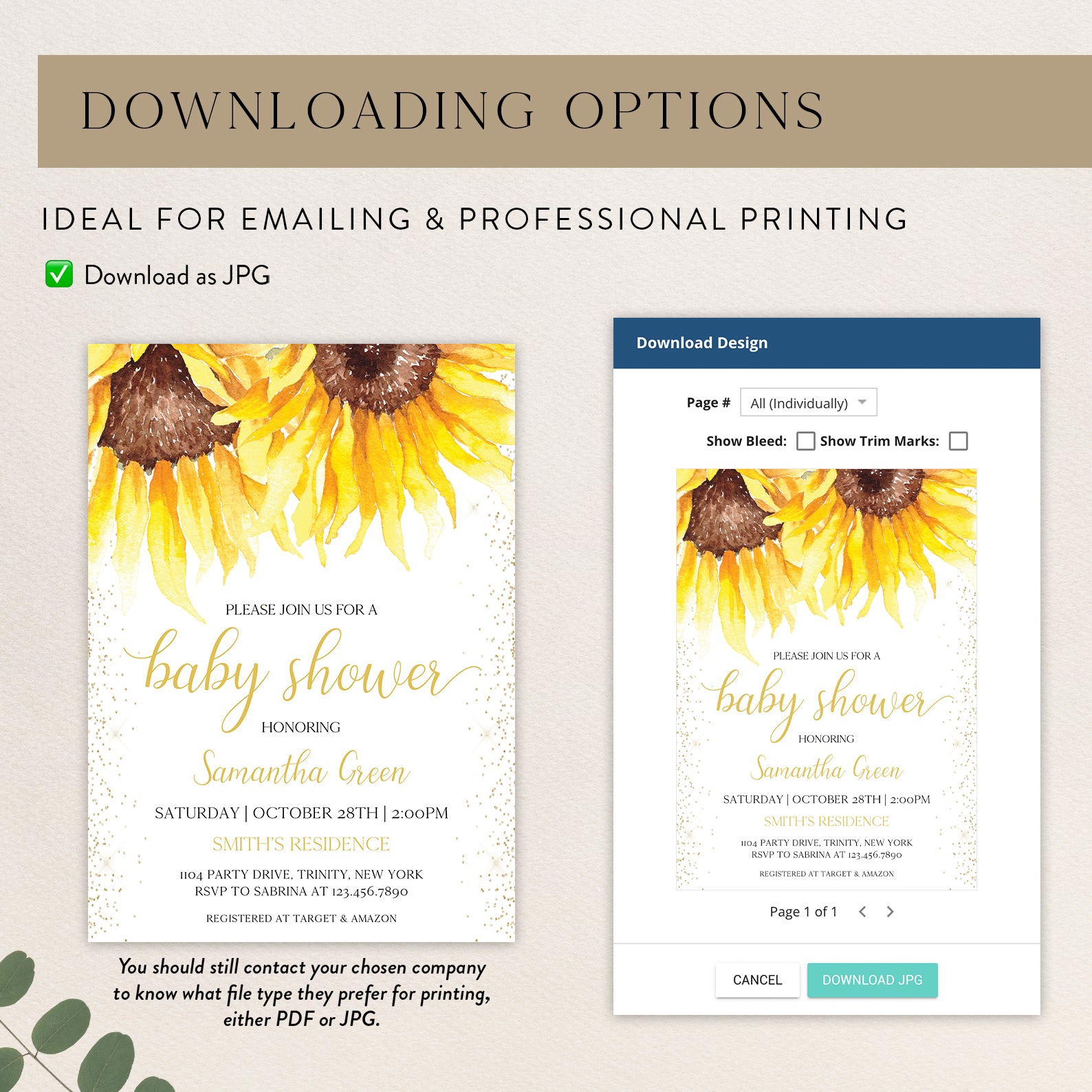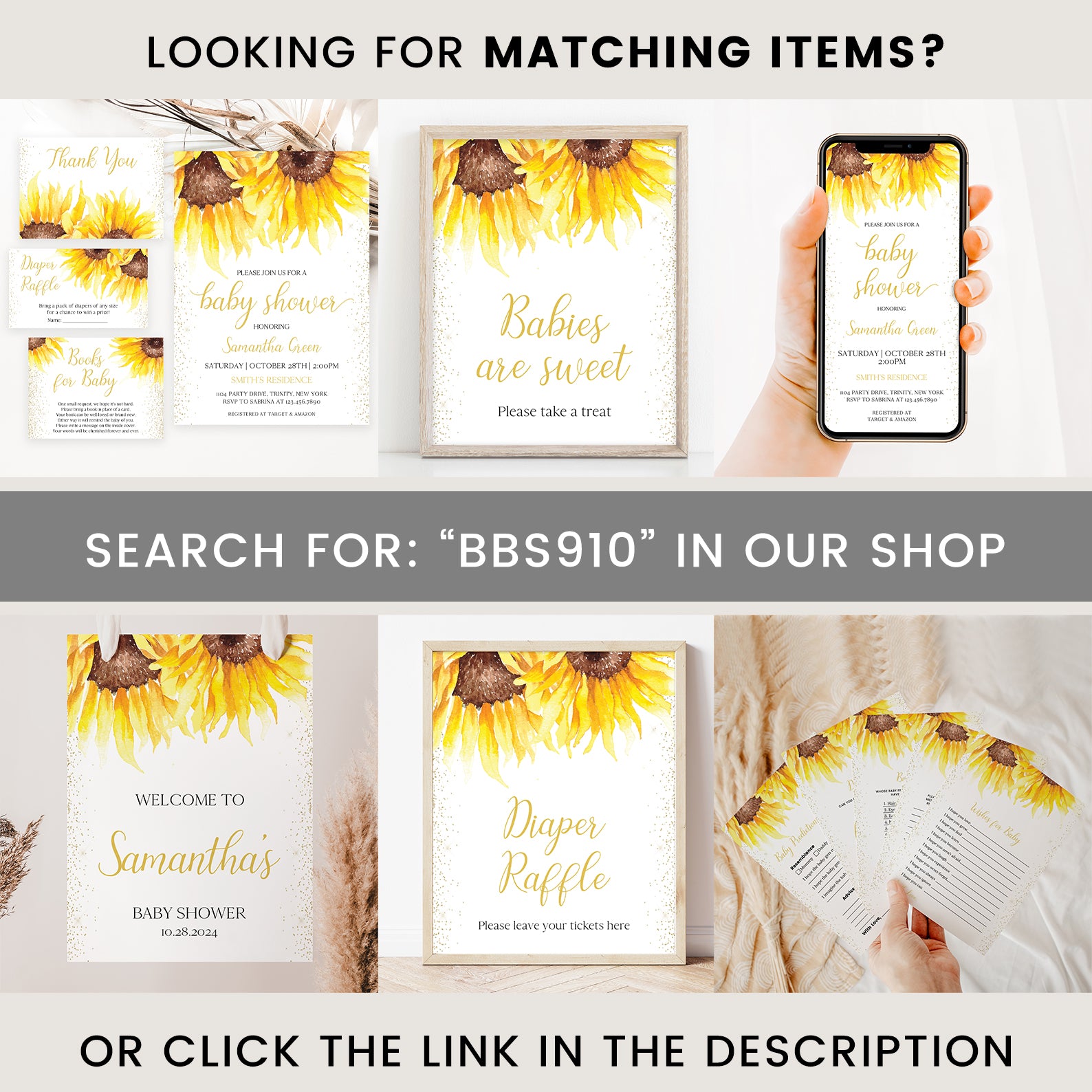 - Purchase this Yellow Fall Baby Shower Invite Bundle with Sunflowers & Gold Accents template