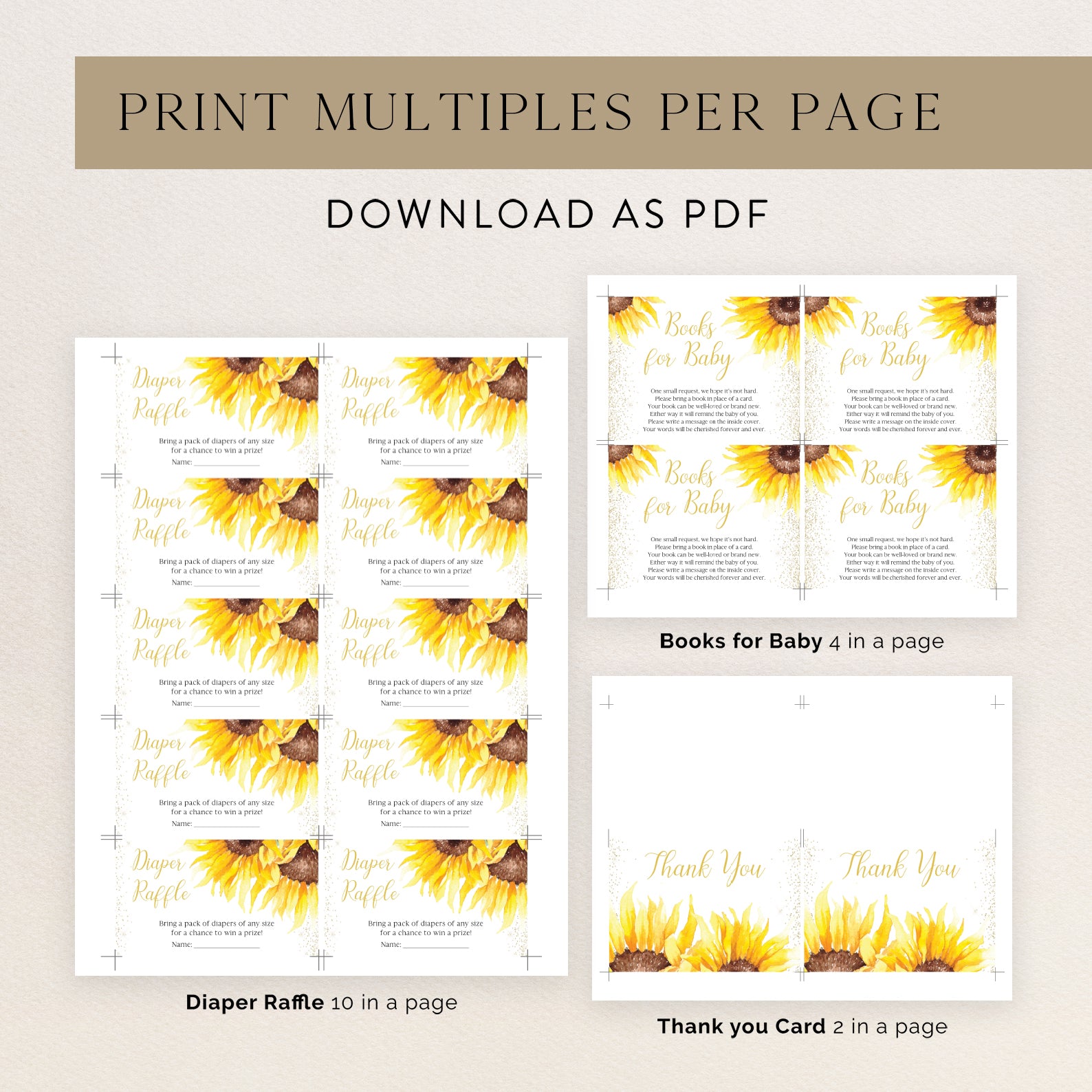 Welcome your little one with our fall baby shower bundle! This set includes an invitation, mobile invite, diaper raffle, books for baby, and thank you card, all featuring a cheerful yellow theme with sunflowers and gold accents. It’s a beautiful way to set a sunny and joyful tone for your celebration.