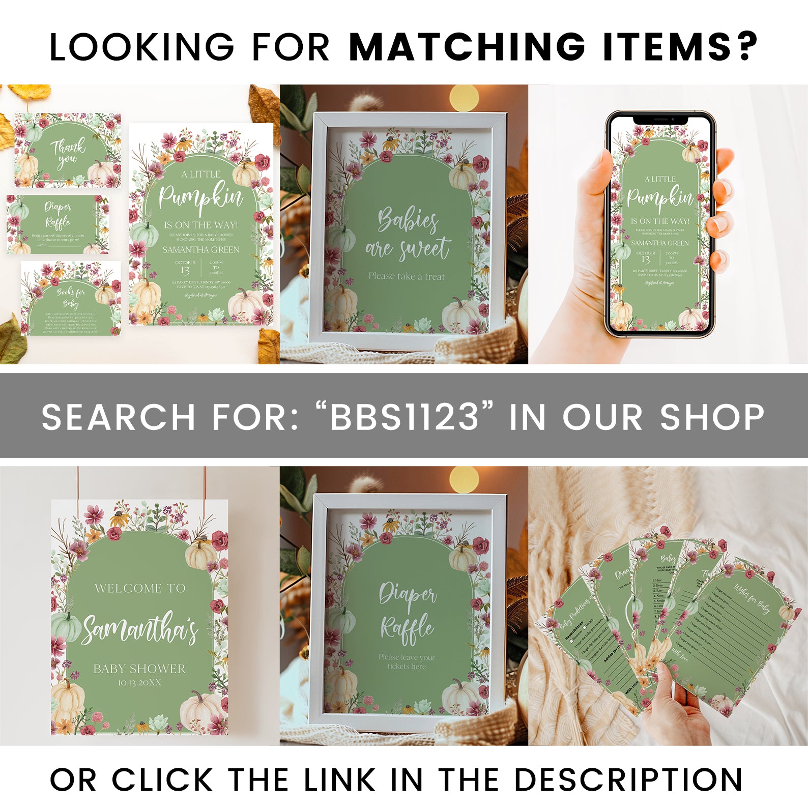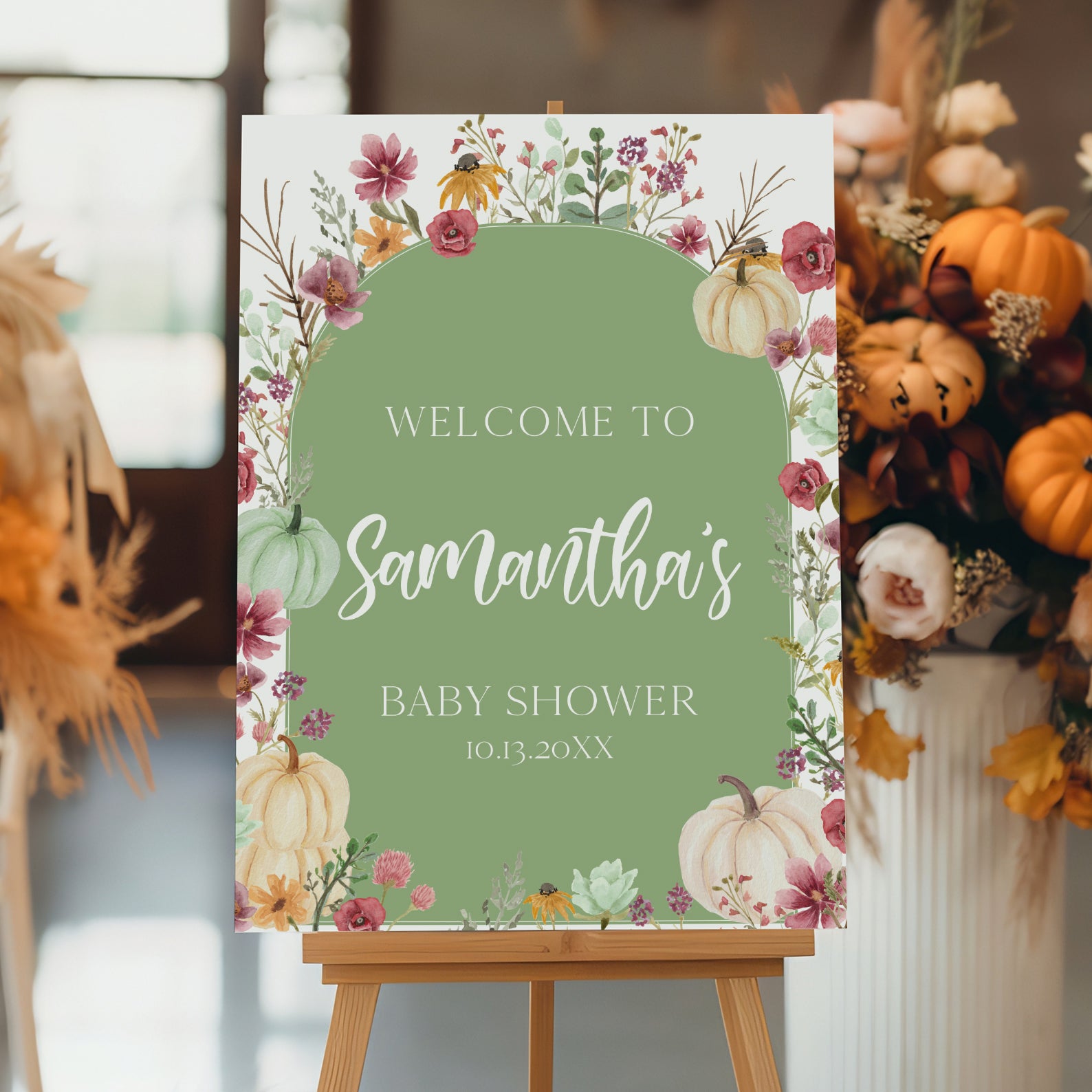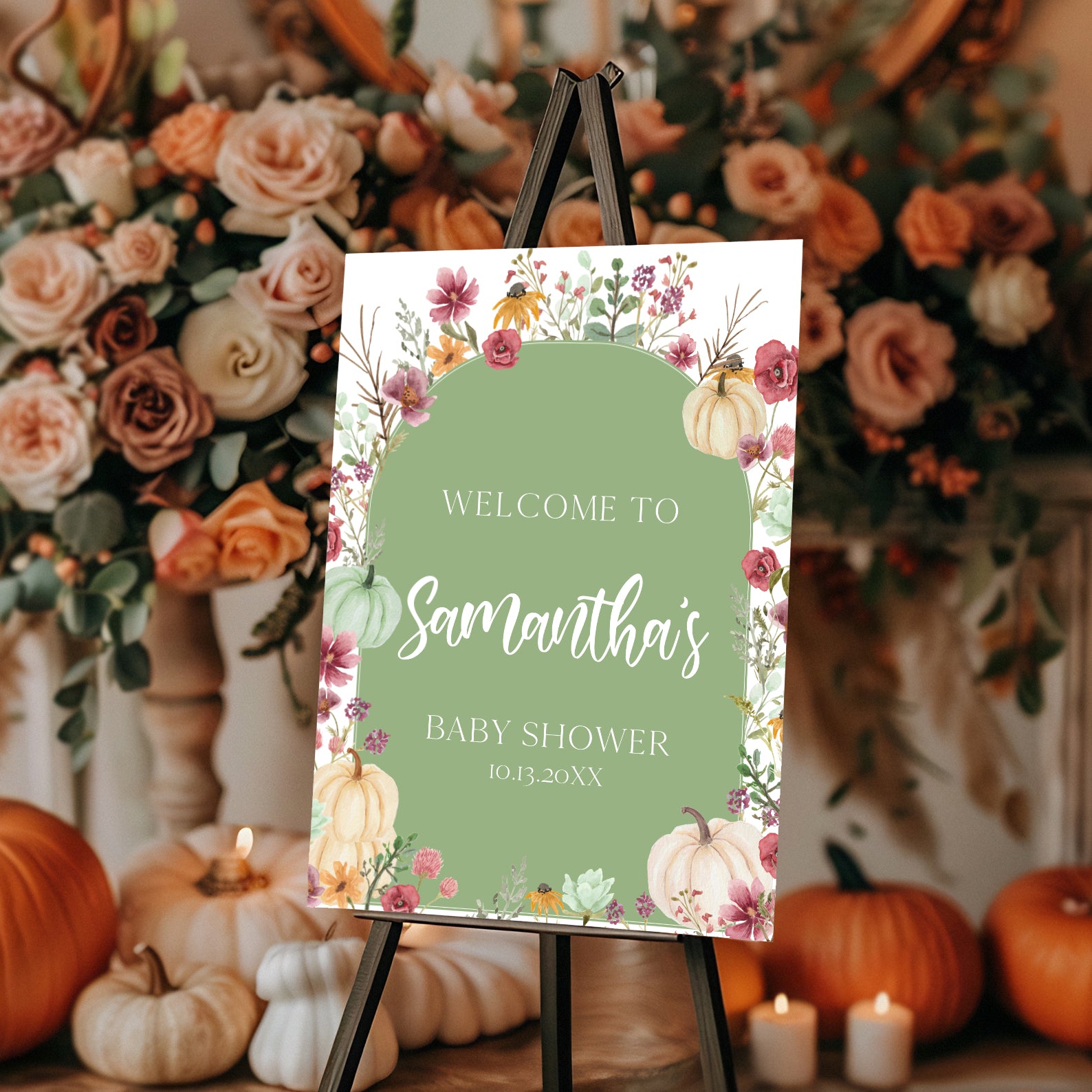 - Purchase this Fall Baby Shower Green Welcome Sign: Pumpkin & Wildflowers Arch template