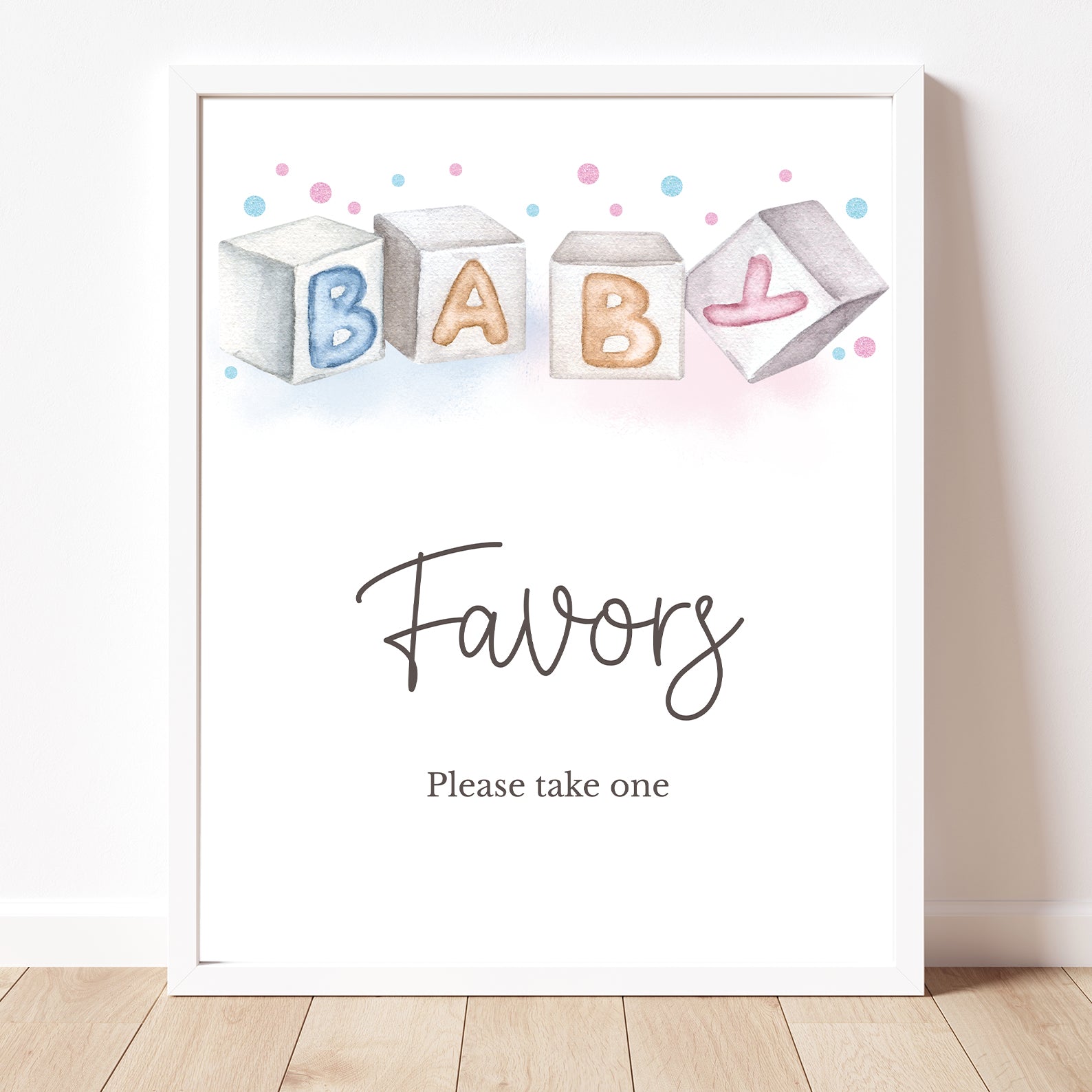 - Purchase this Minimalist Gender Reveal Table Sign: Baby Blocks & Bubbles template