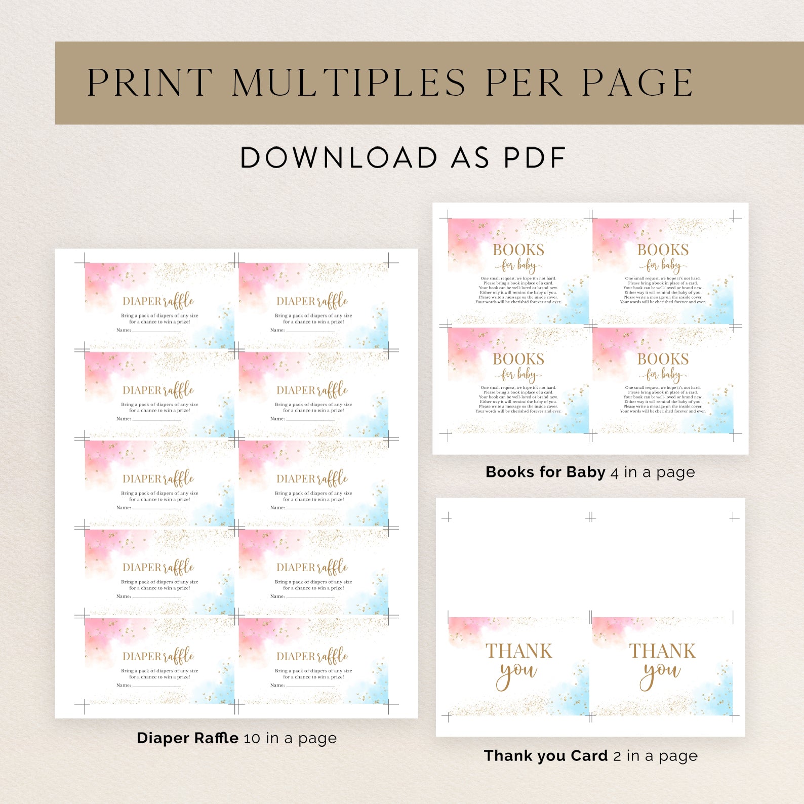 Celebrate your big reveal with our "Oh Baby!" gender reveal invitation bundle. Featuring soft pink and blue pastels with elegant gold accents, this set includes a digital invitation, mobile invite, diaper raffle, books for baby, and thank you card. Perfect for sharing the excitement in style!