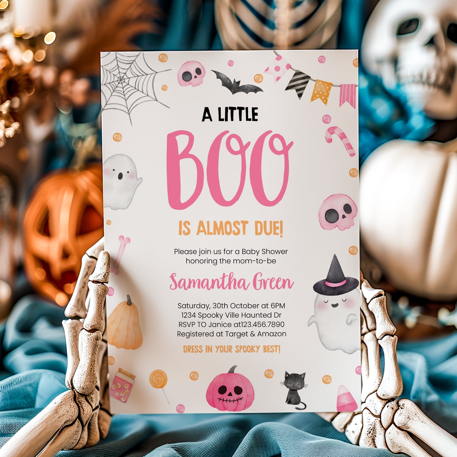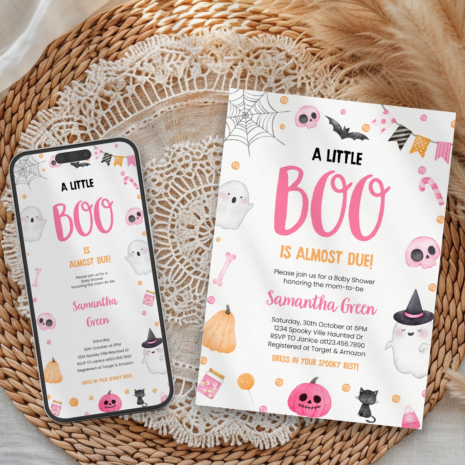 Adorable Pink Baby Shower Digital Invite: Ghosts & Sweet Treats