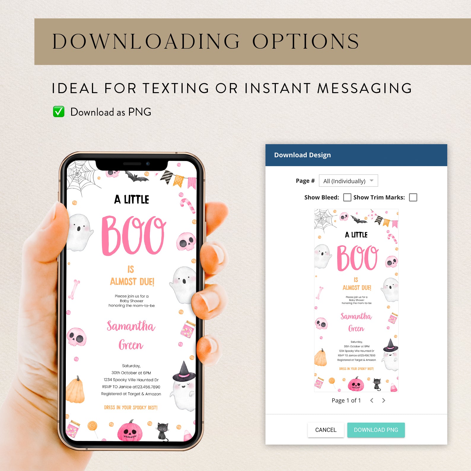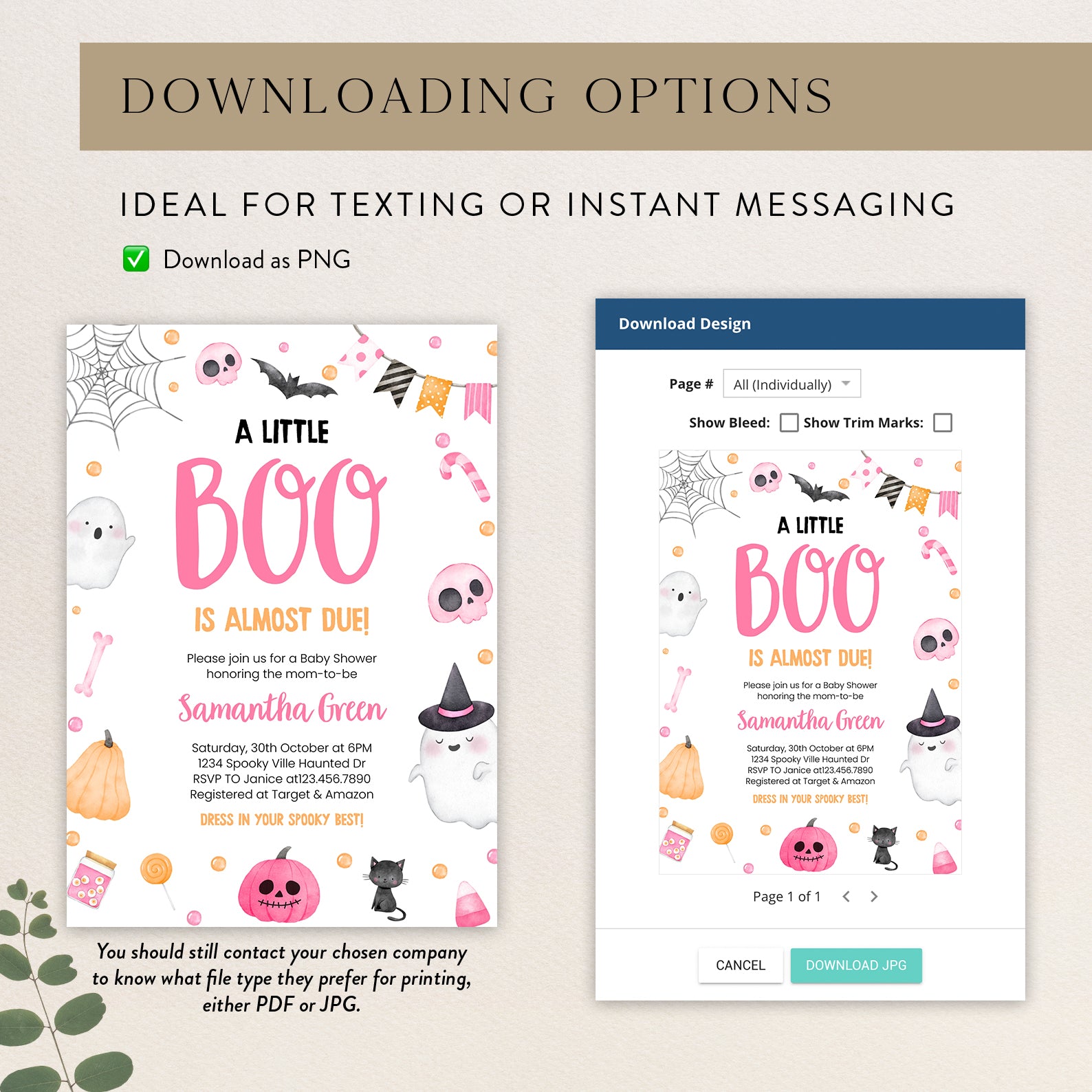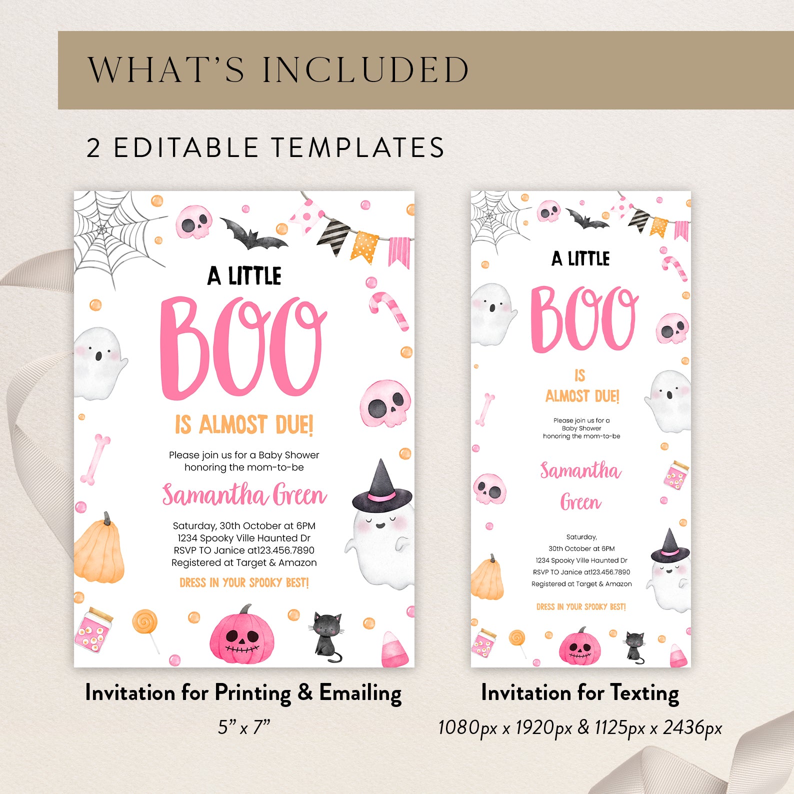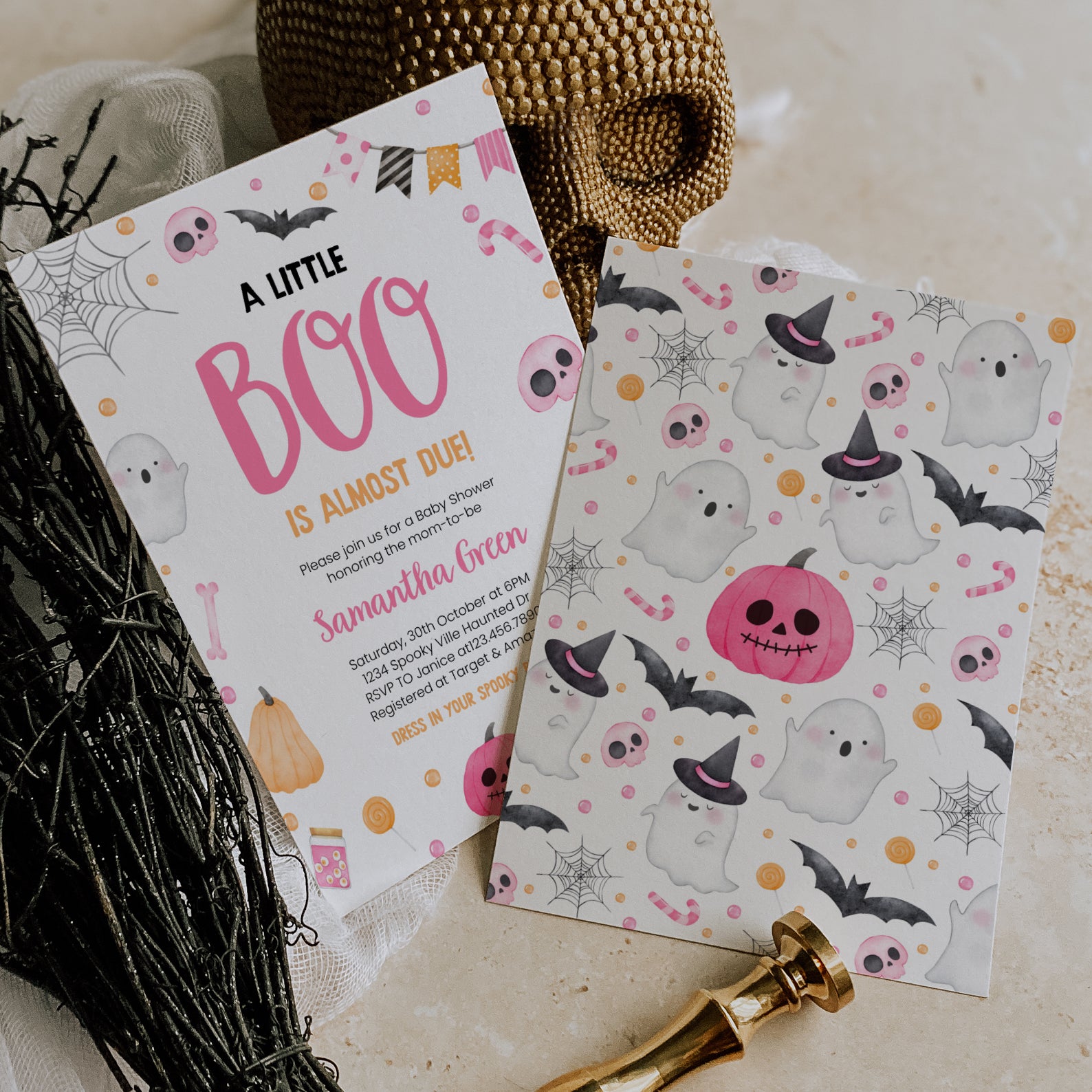 1. Purchase this Adorable Pink Baby Shower Digital Invite: Ghosts & Sweet Treats template