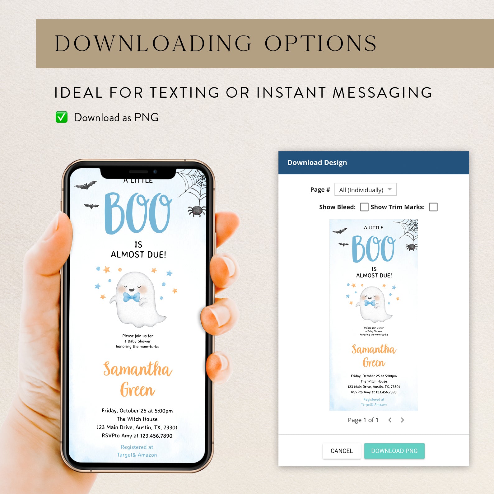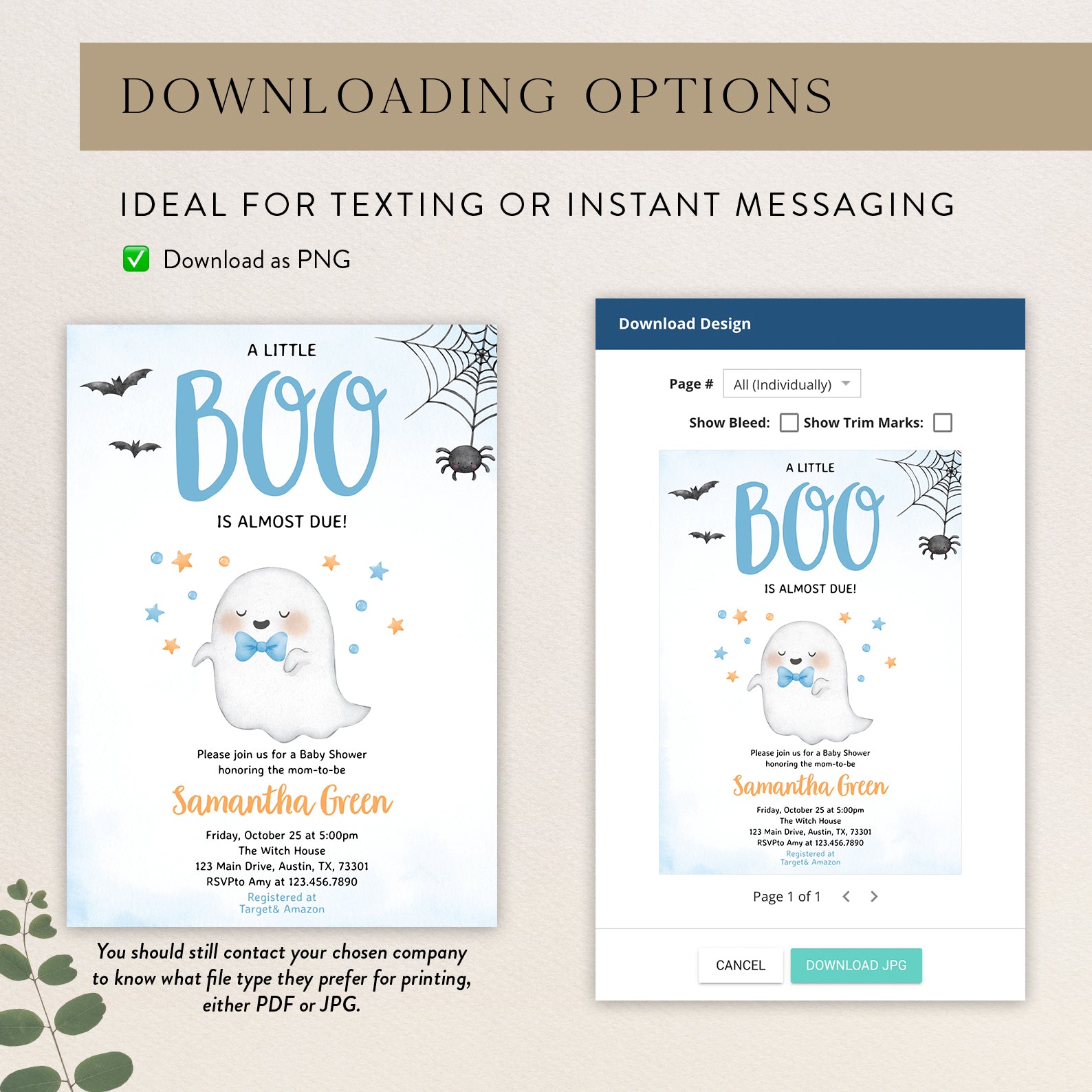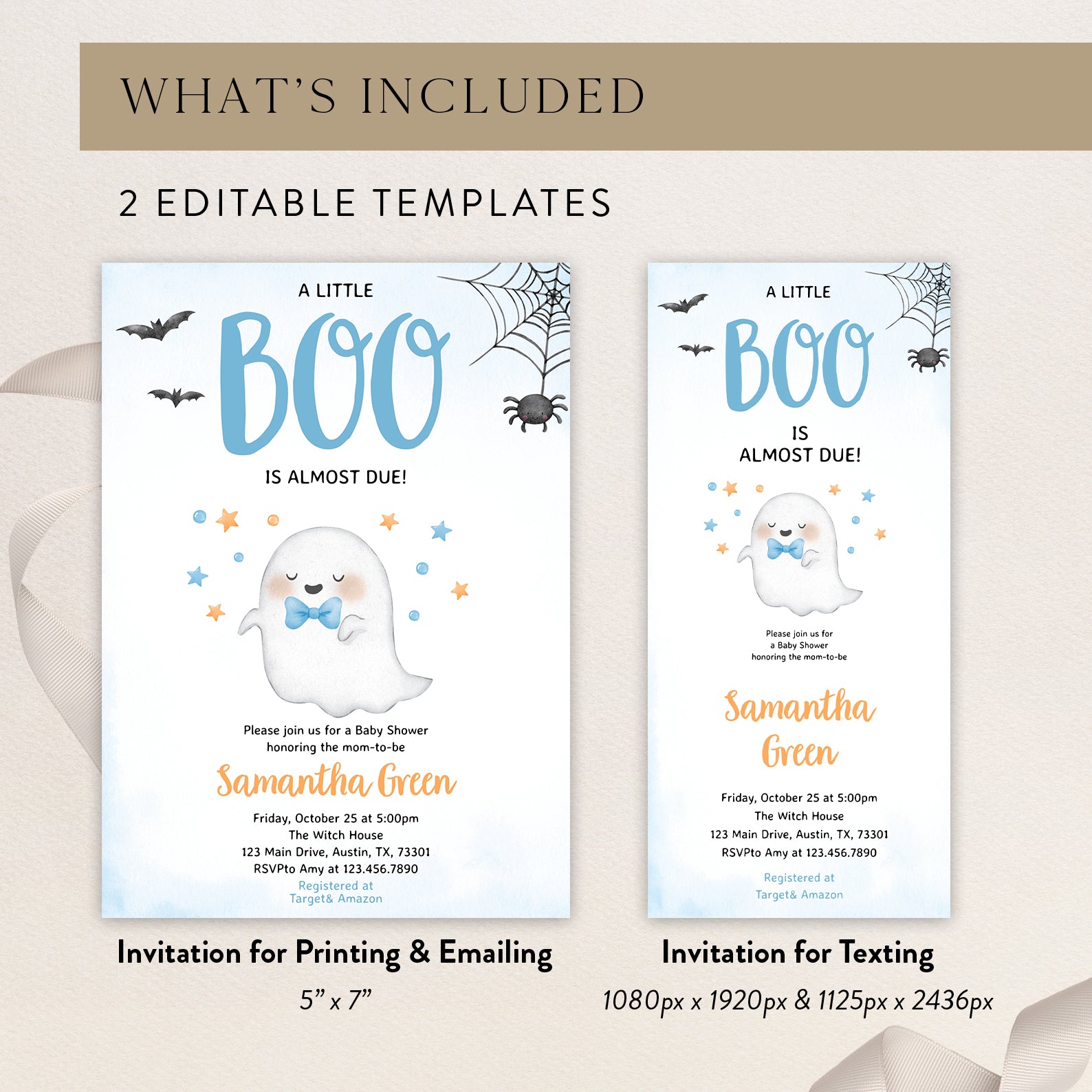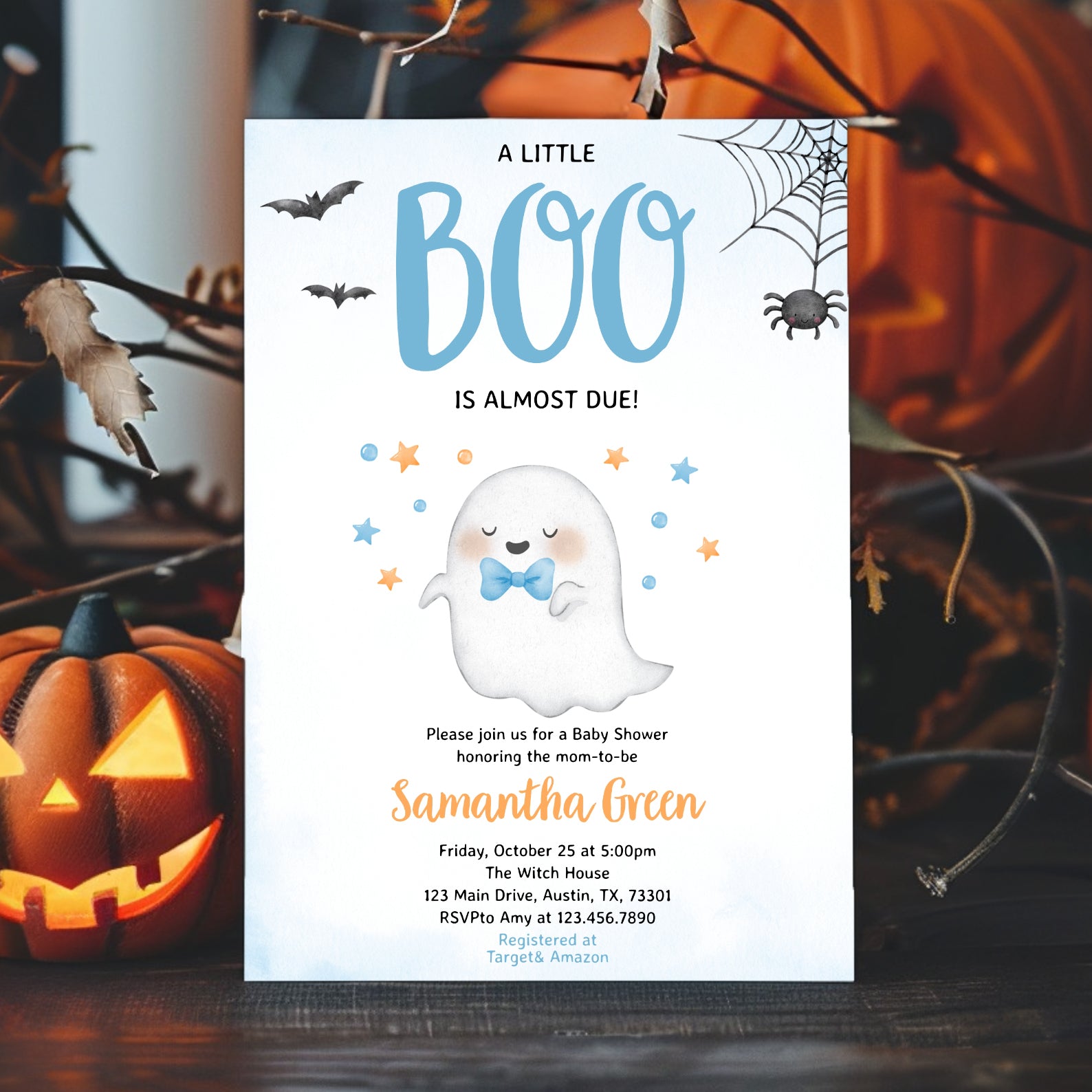 - Purchase this Boo-tiful Baby Shower Invite: A Little Ghost is Almost Here! template