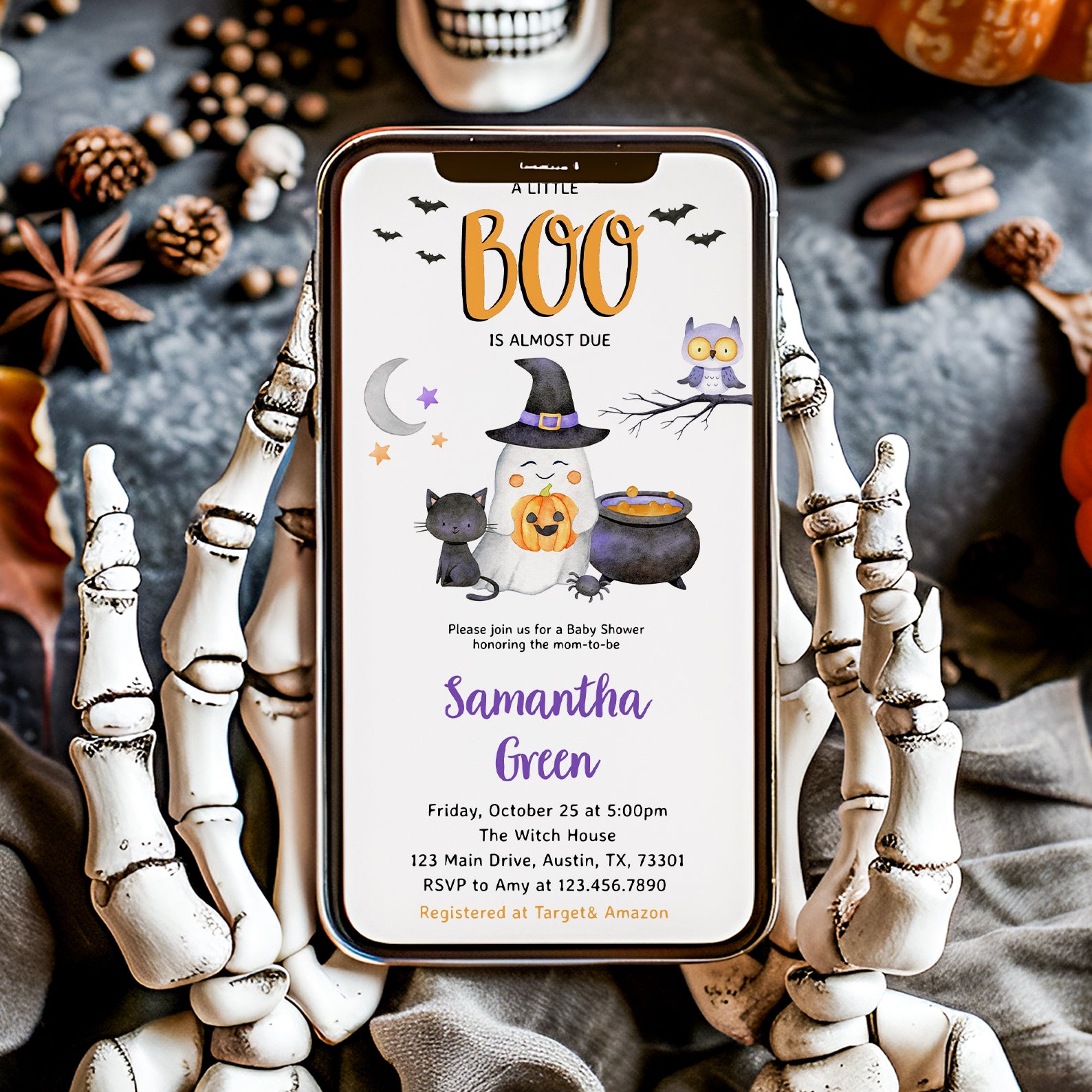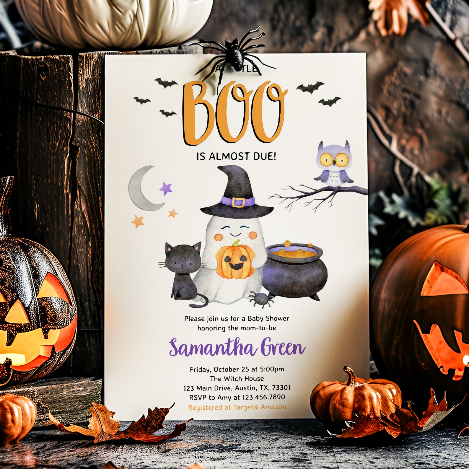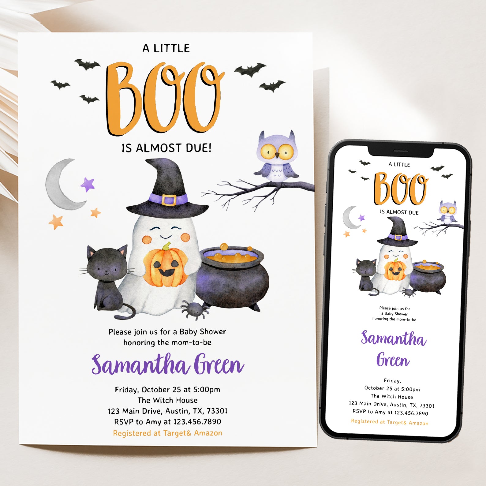 - Purchase this Charming Halloween Orange Digital Invite: Cute Boo Arriving Soon template
