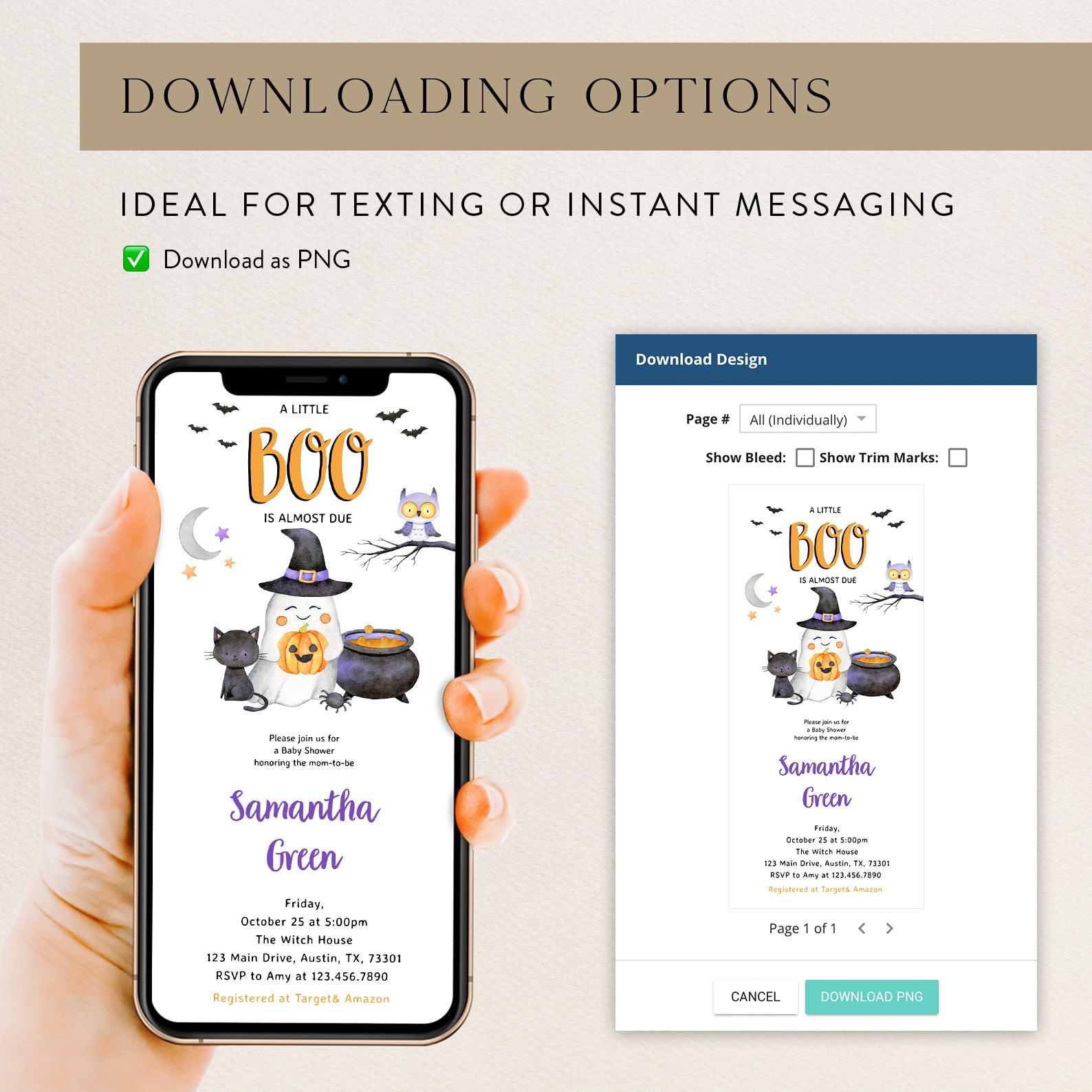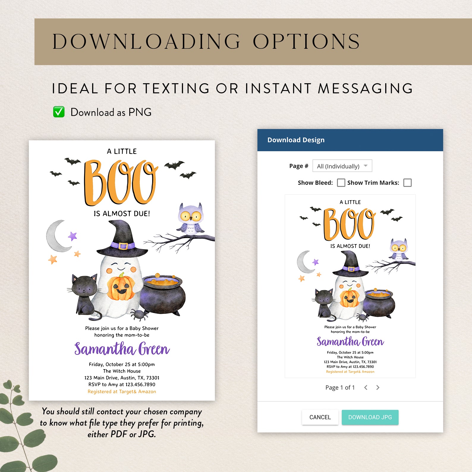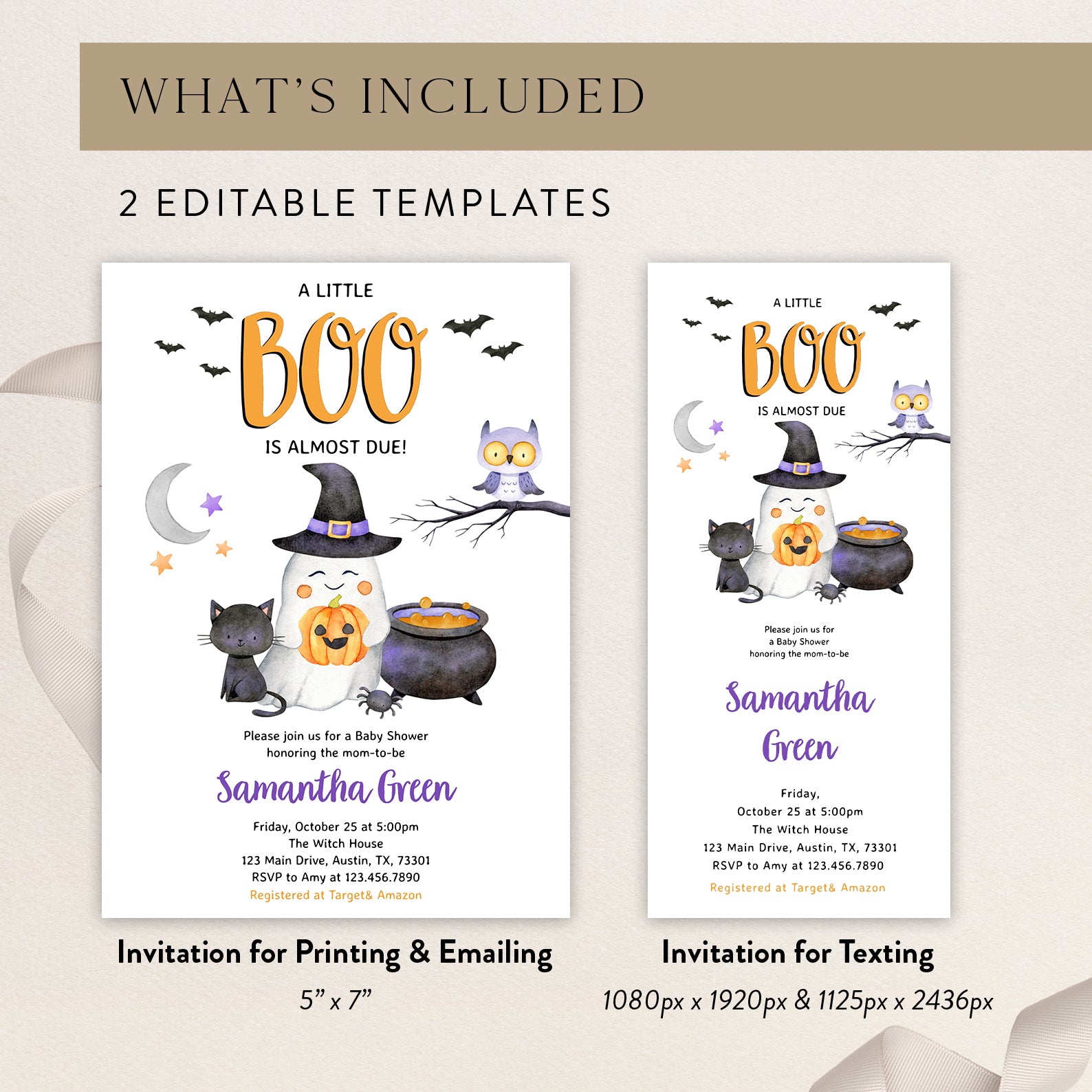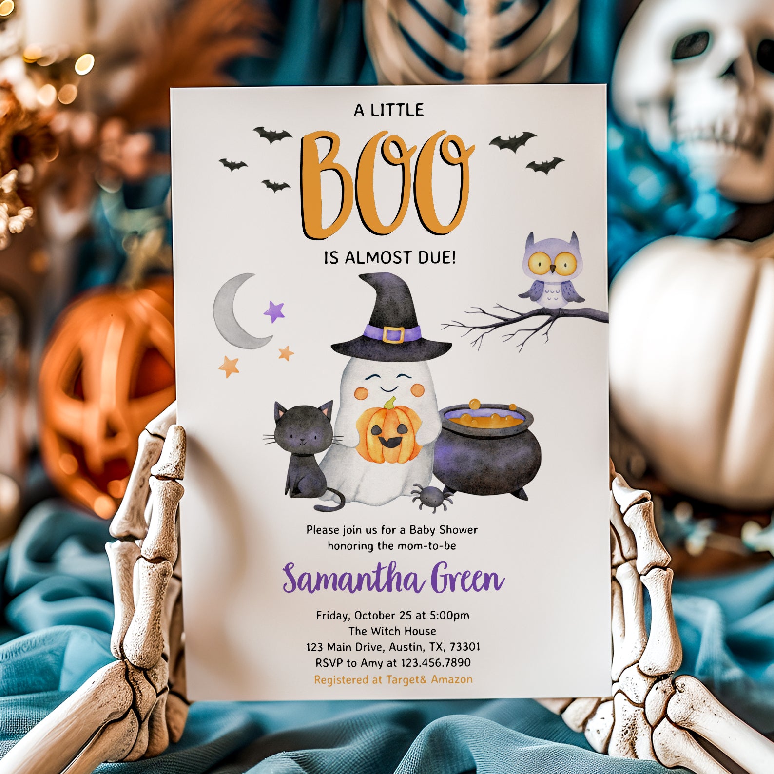 - Purchase this Charming Halloween Orange Digital Invite: Cute Boo Arriving Soon template