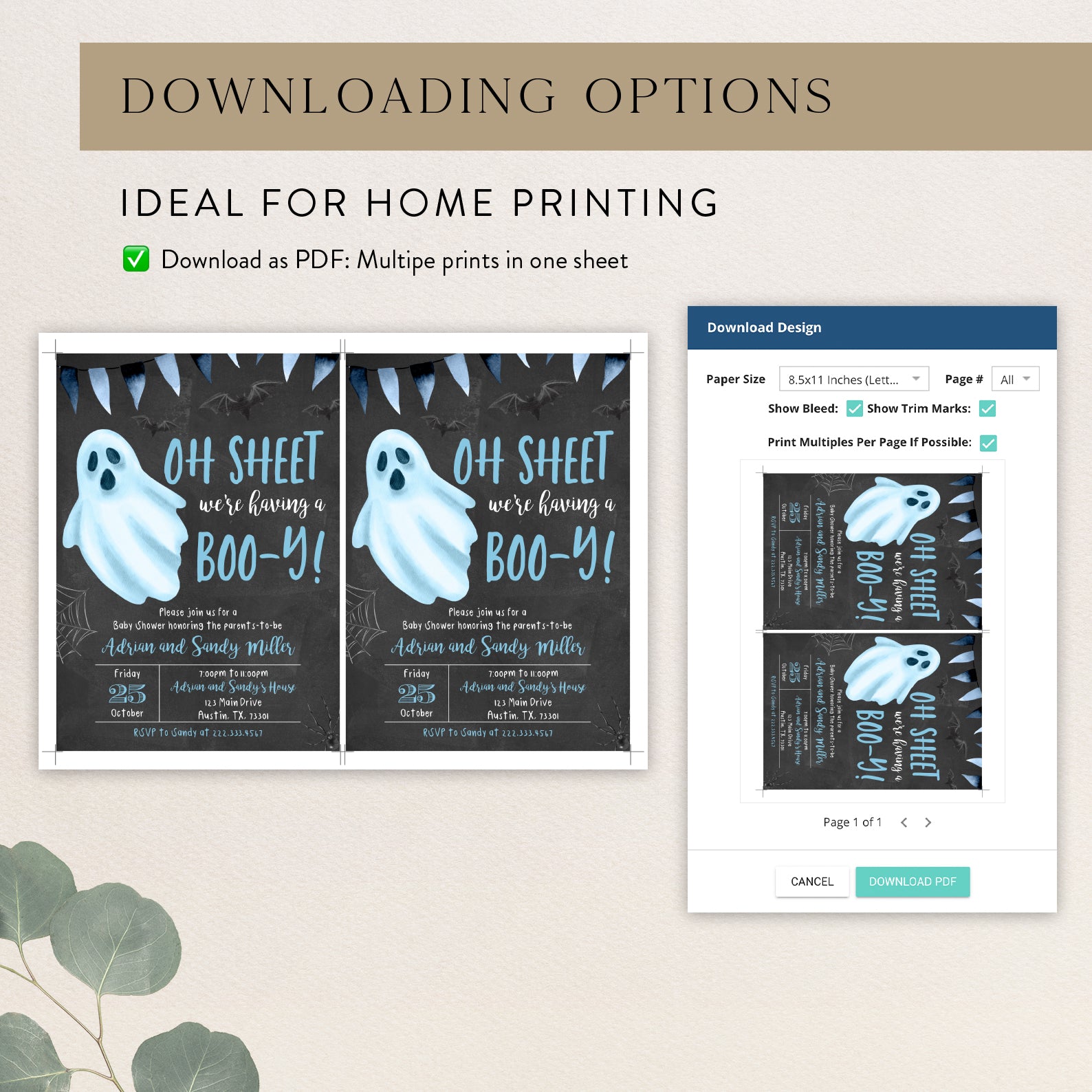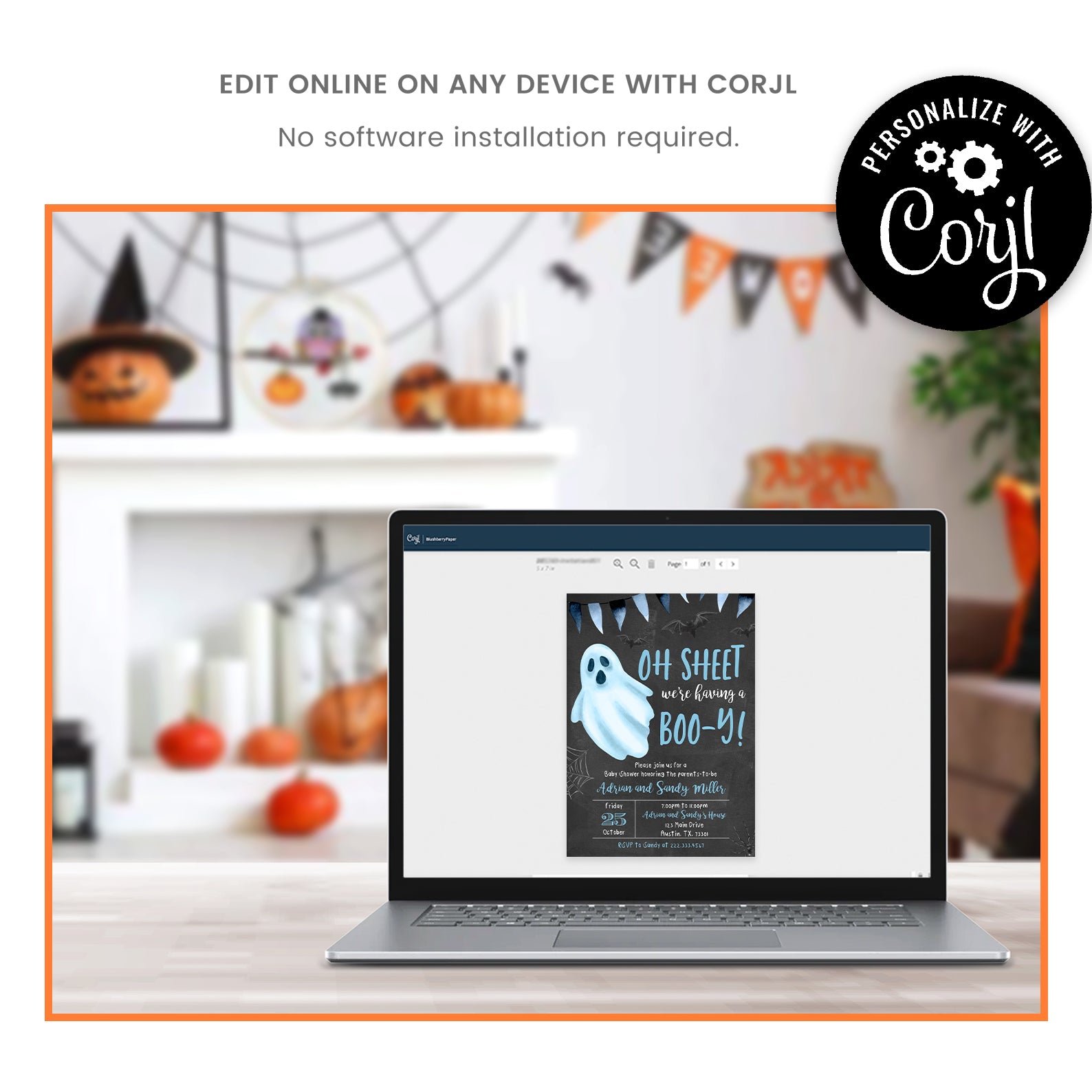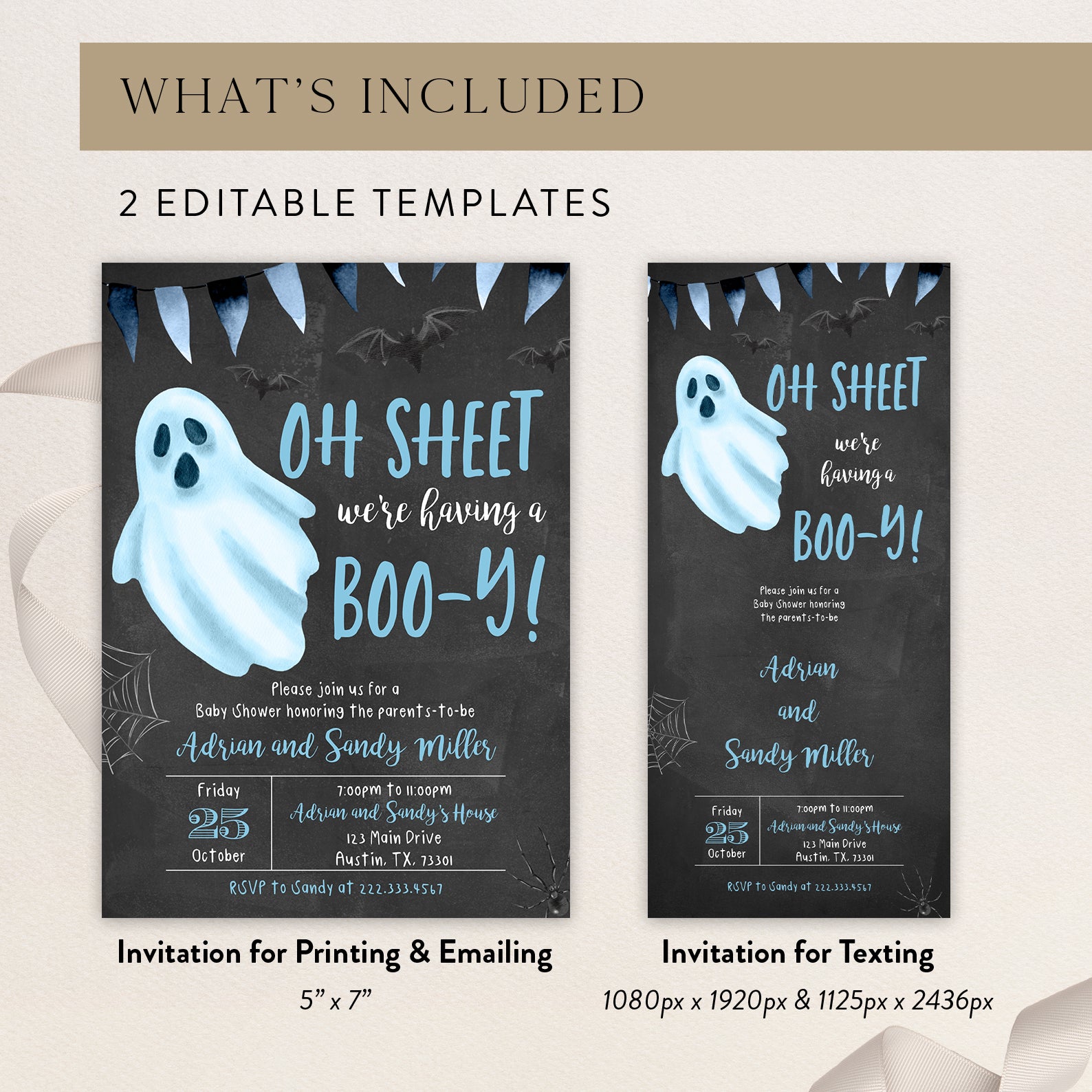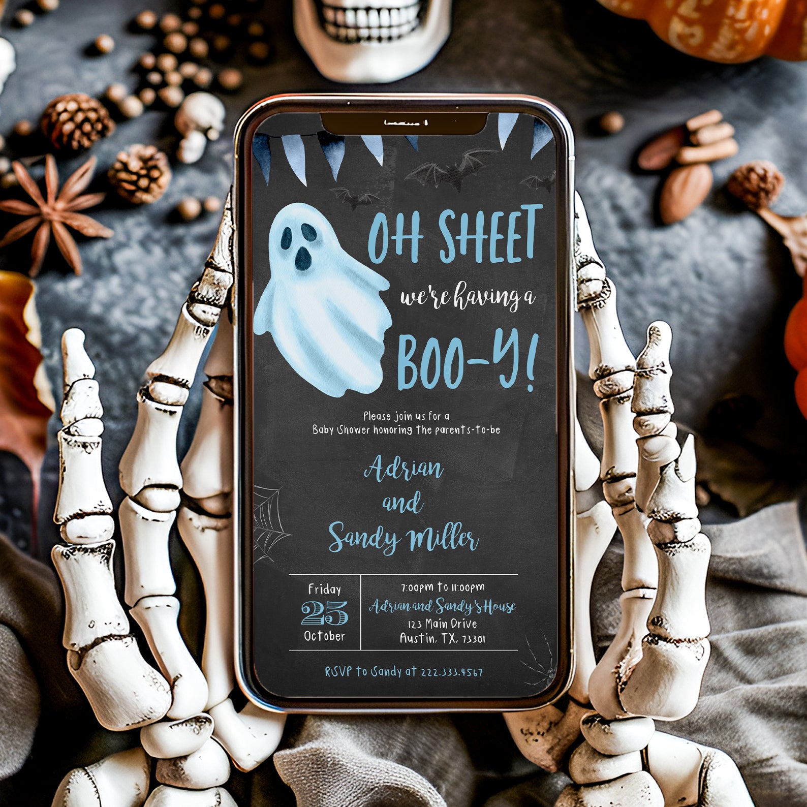 - Purchase this Oh Sheet Boo-y Blue Baby Shower Digital Invite: Spooky Fun Awaits! template