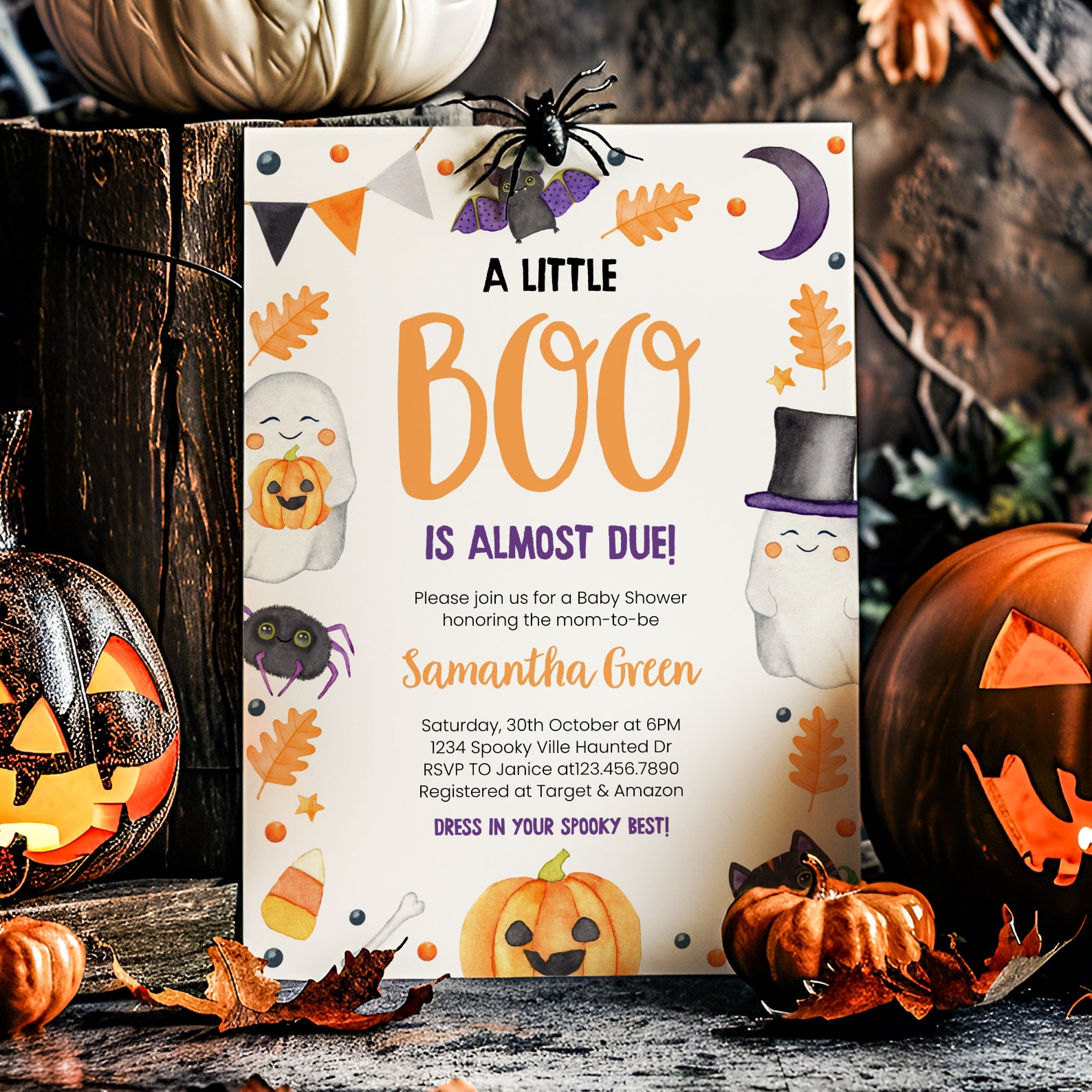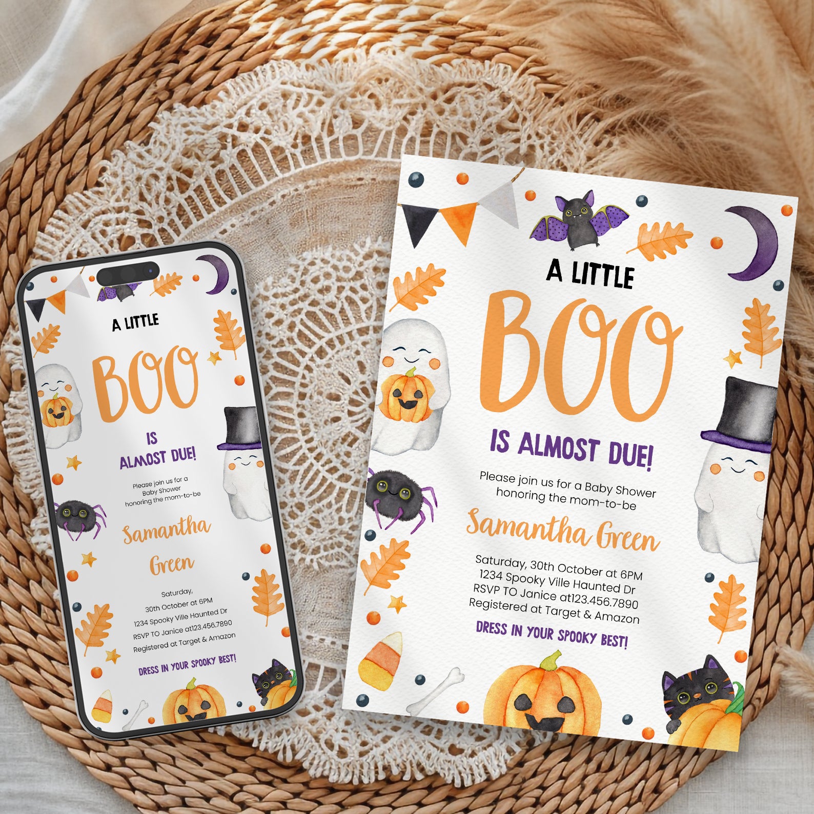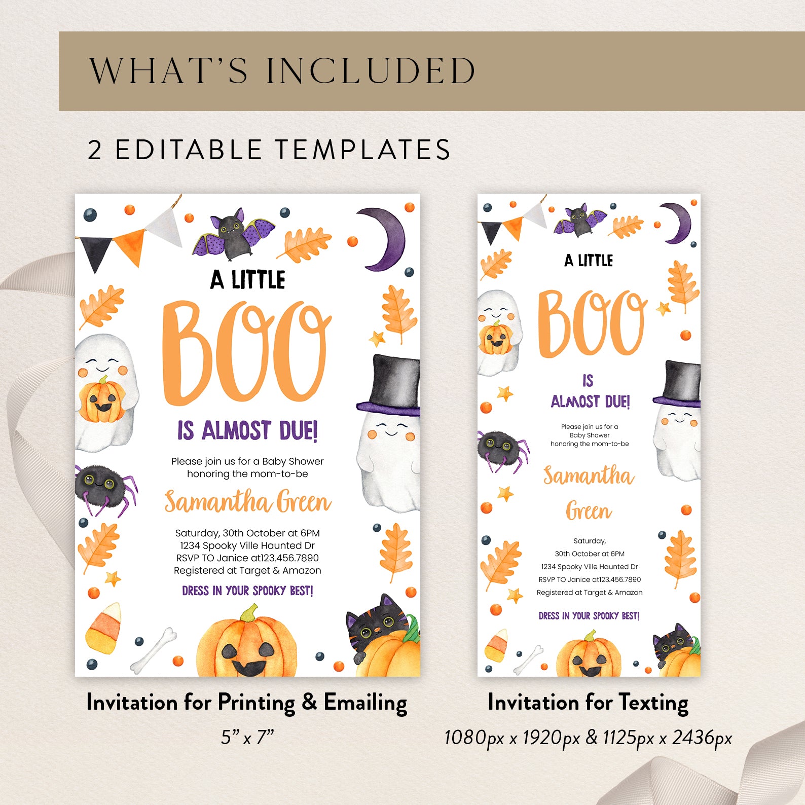 - Purchase this Whimsical Baby Shower Digital Invite: A Little Boo is Coming! template