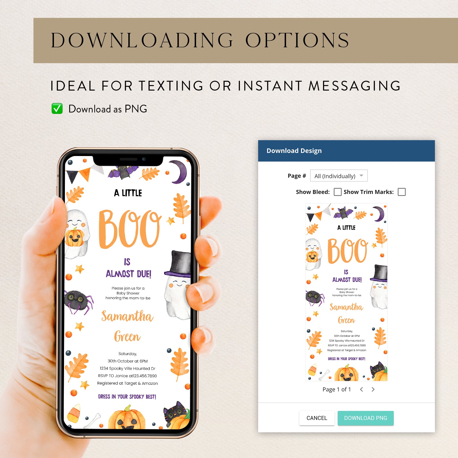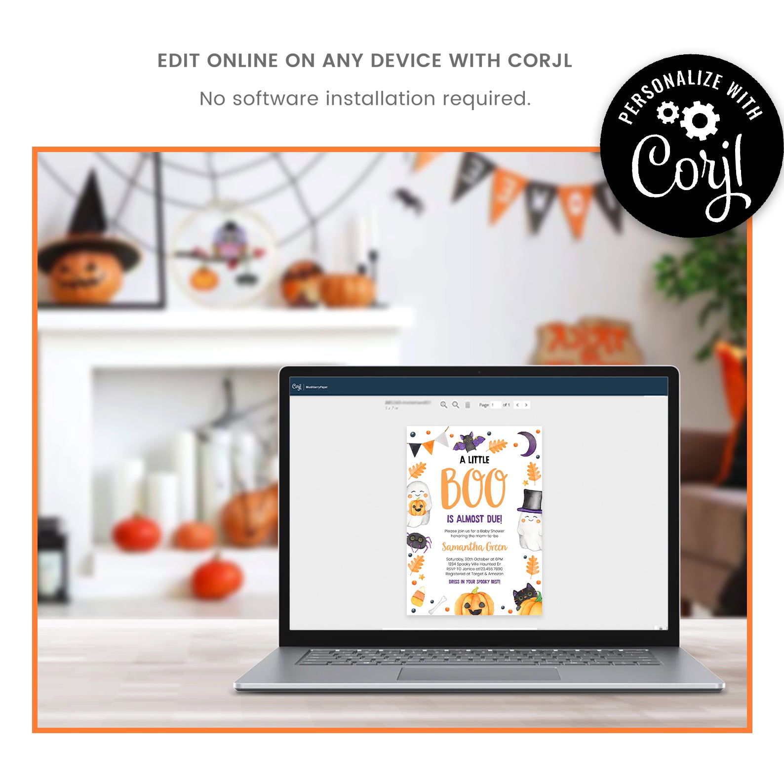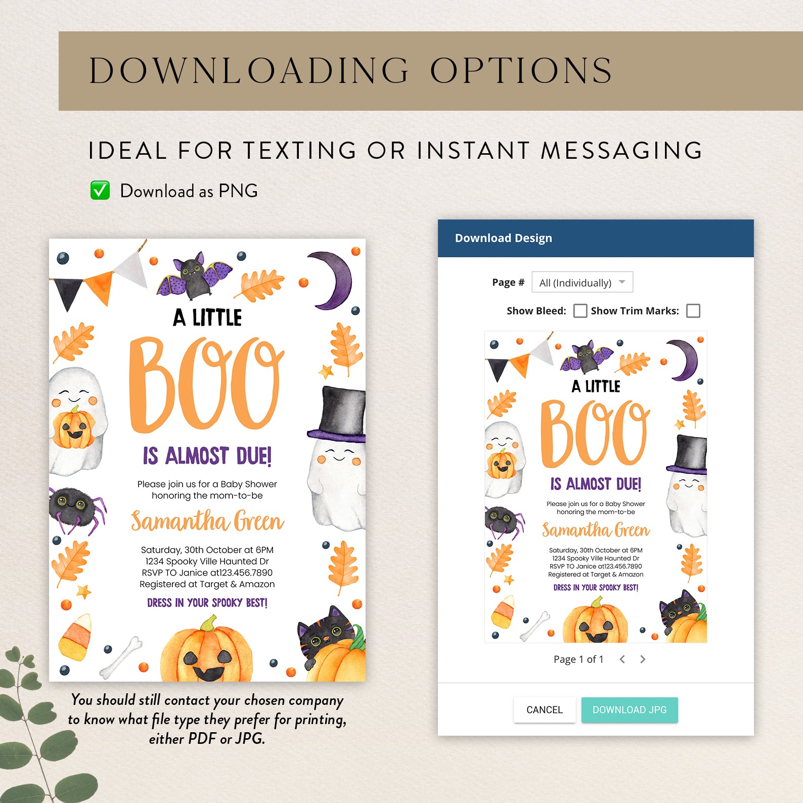 - Purchase this Whimsical Baby Shower Digital Invite: A Little Boo is Coming! template
