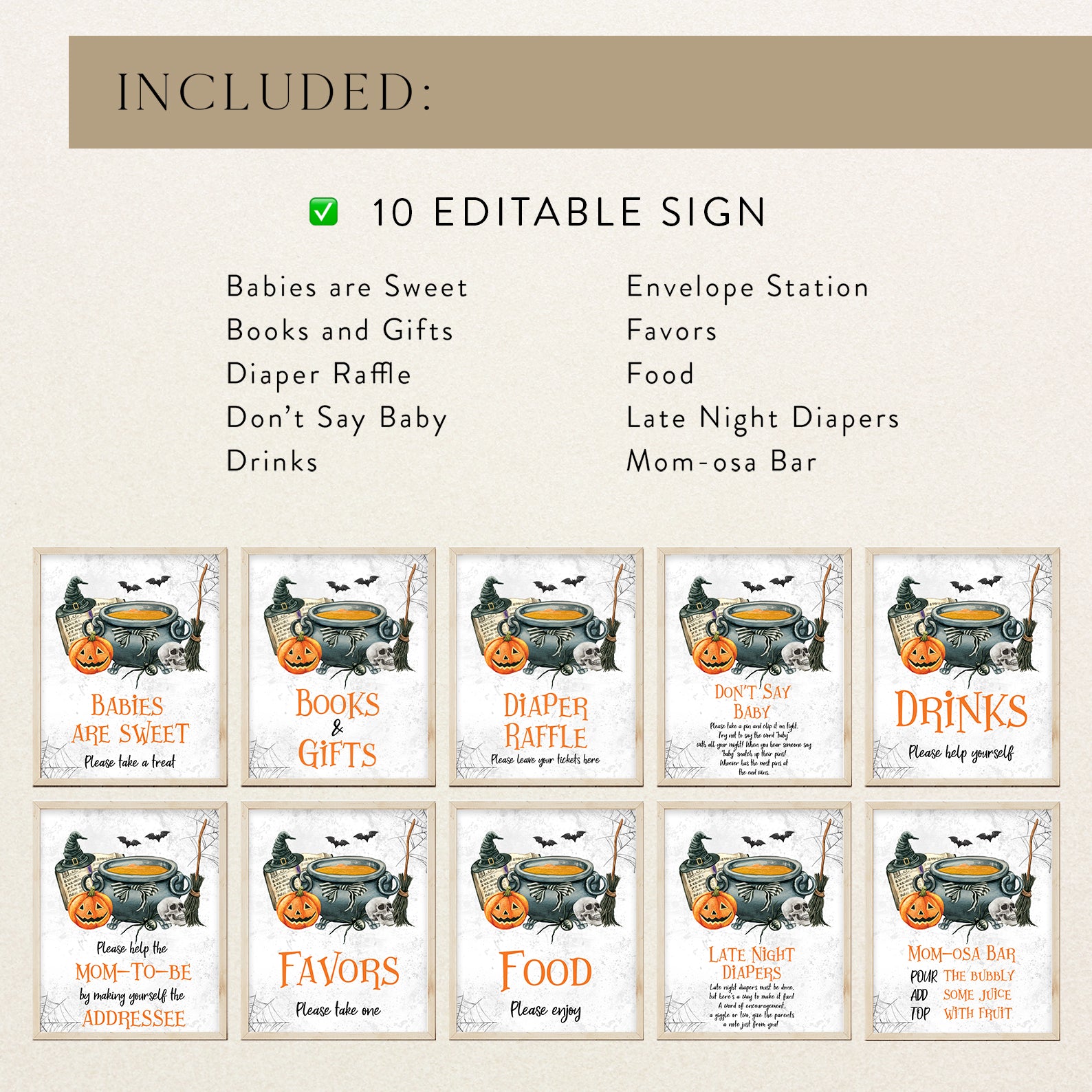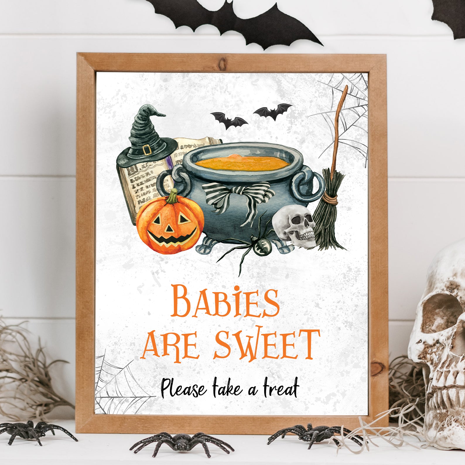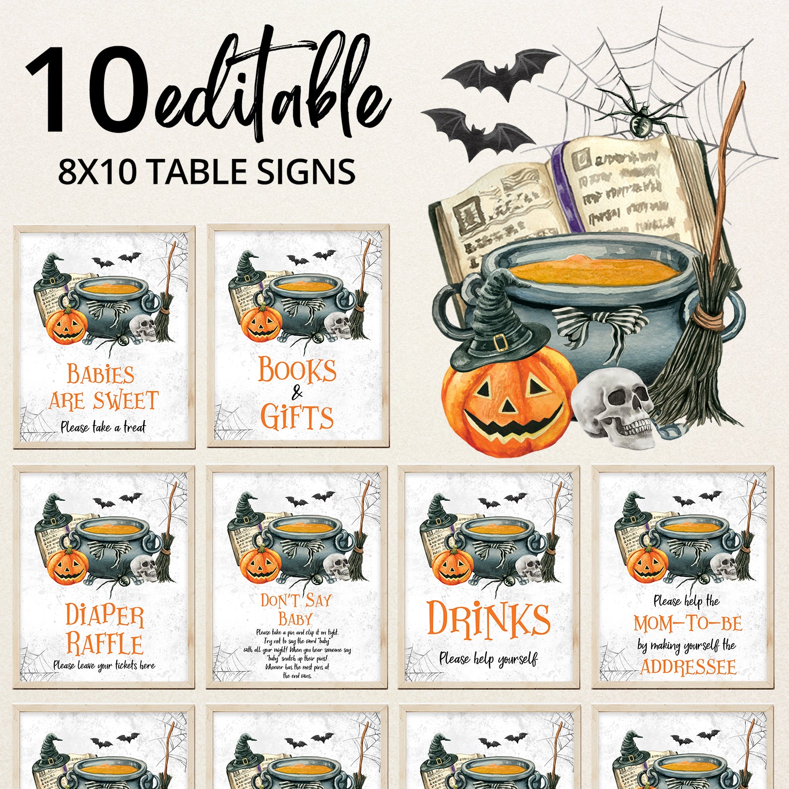 - Purchase this A Baby is Brewing: Whimsical Halloween Orange Baby Shower Table Sign! template
