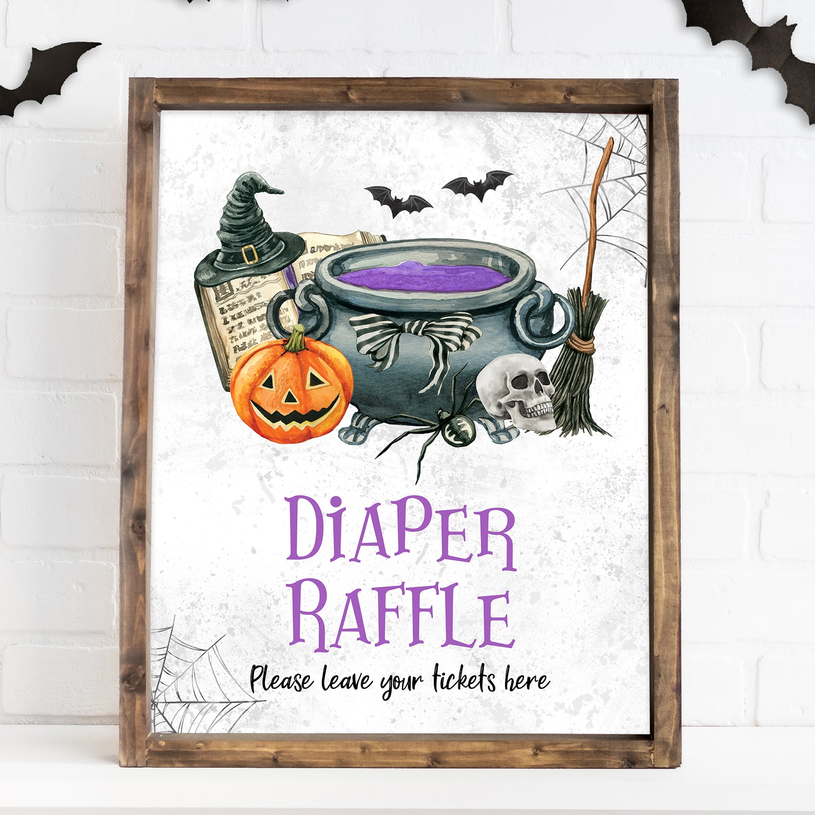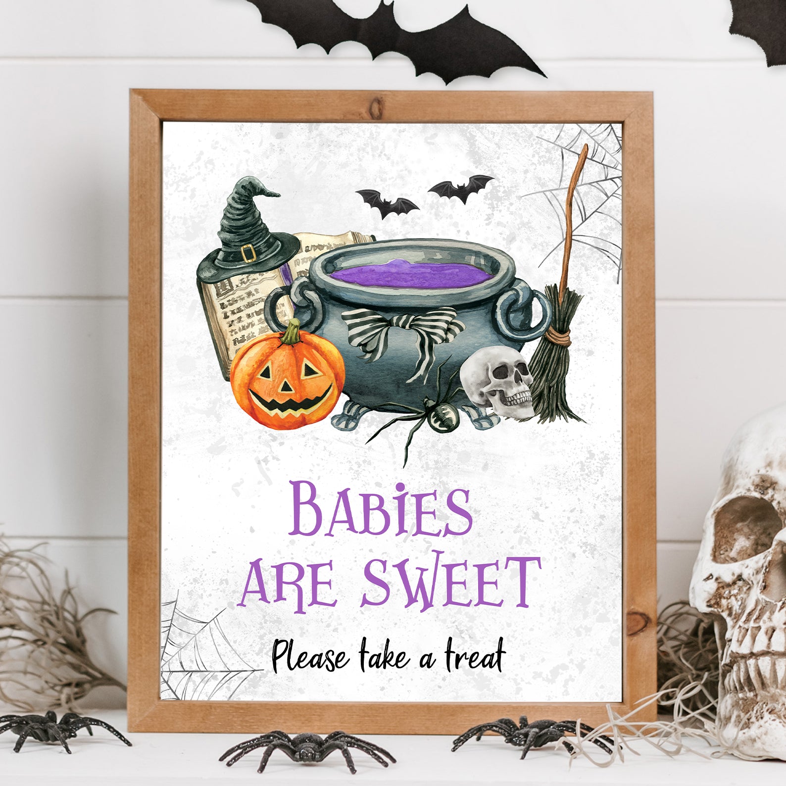 - Purchase this A Baby is Brewing: Whimsical Halloween Purple Baby Shower Table Sign! template
