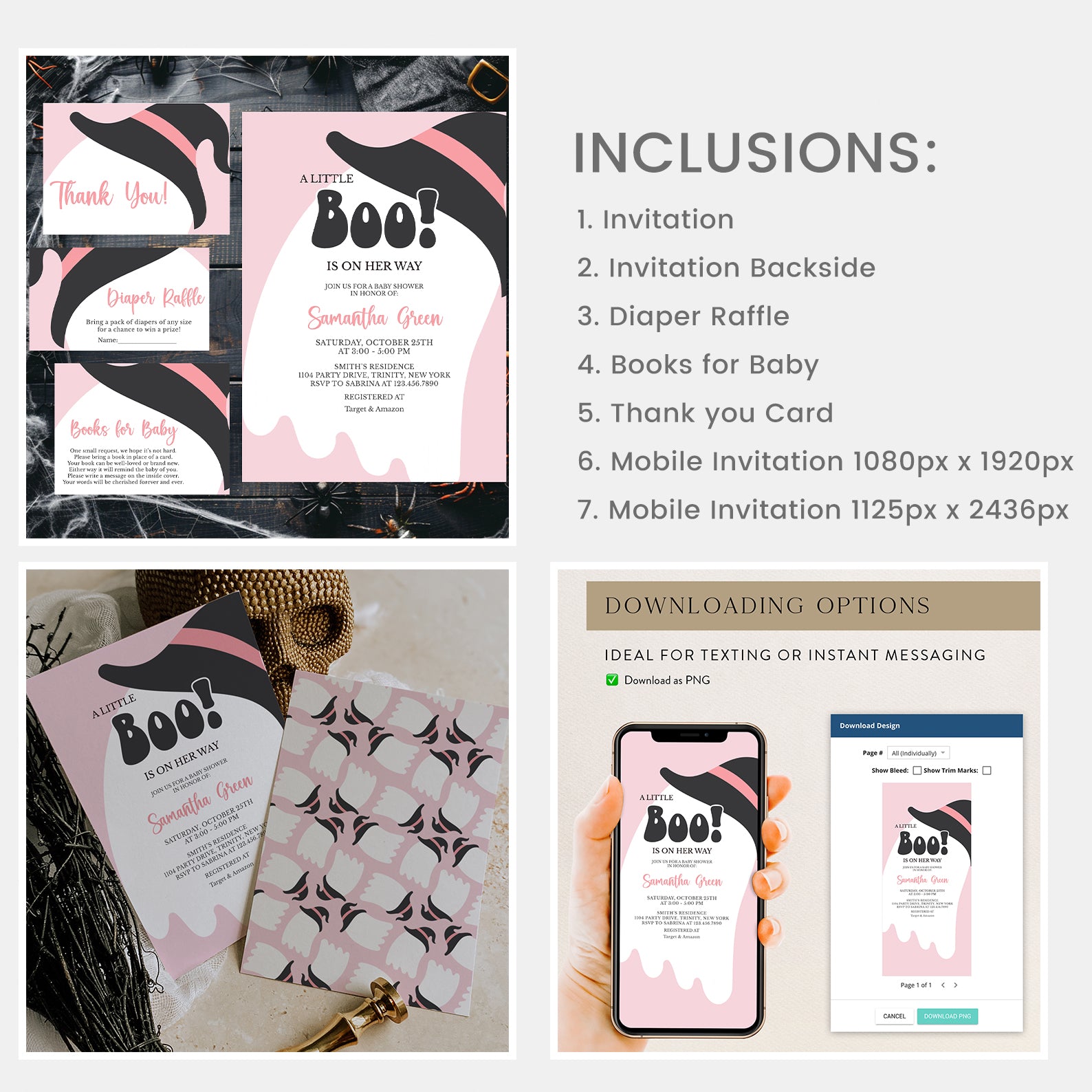 - Purchase this A Little Boo Is On Her Way: Pink Halloween Mega Bundle template