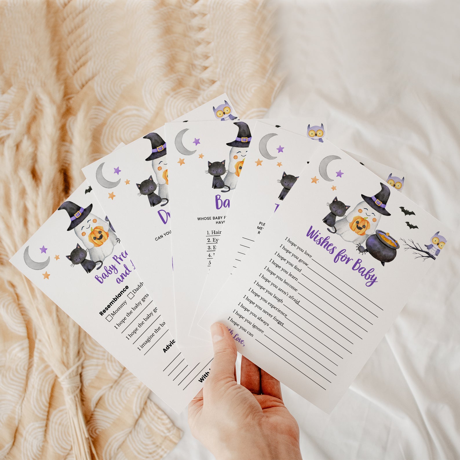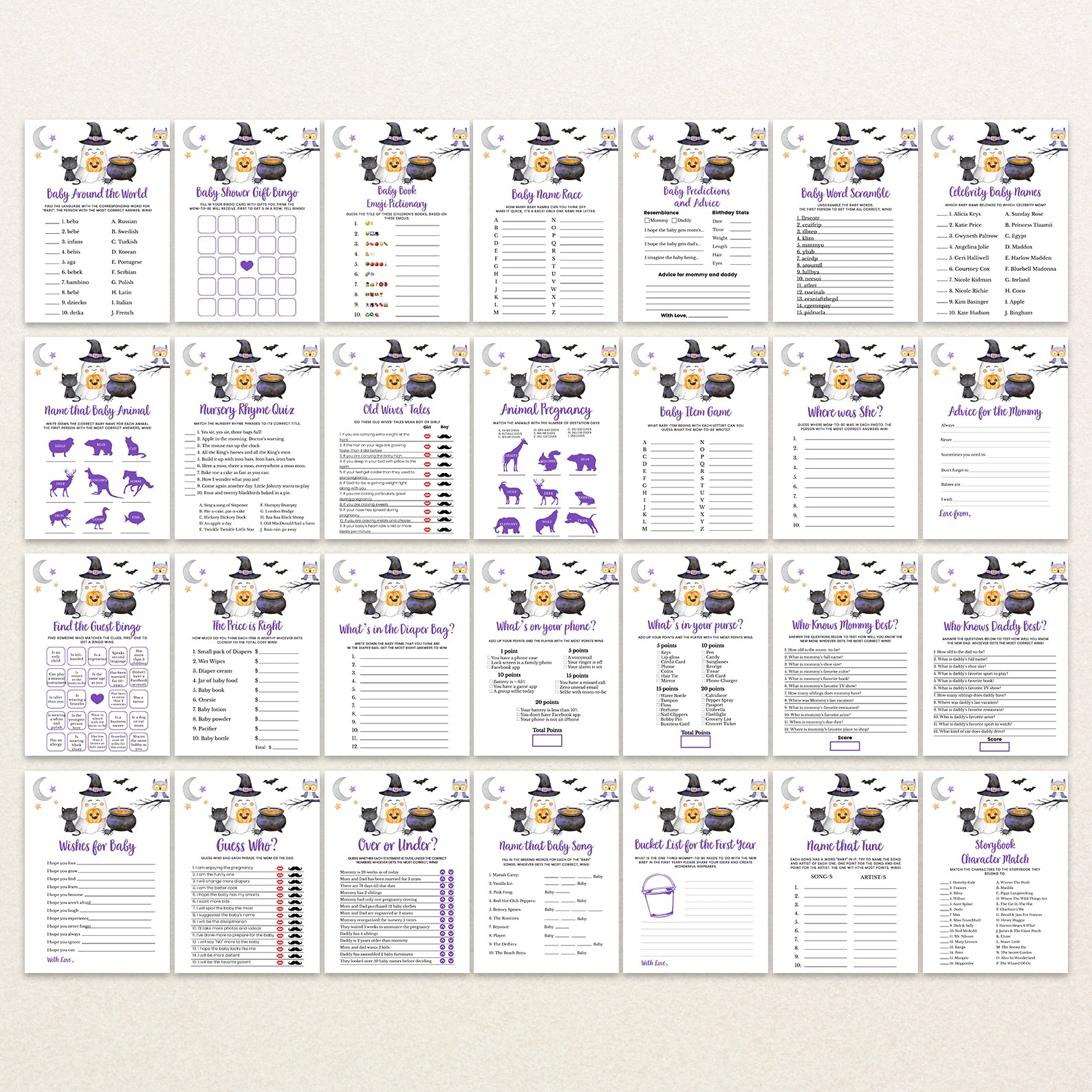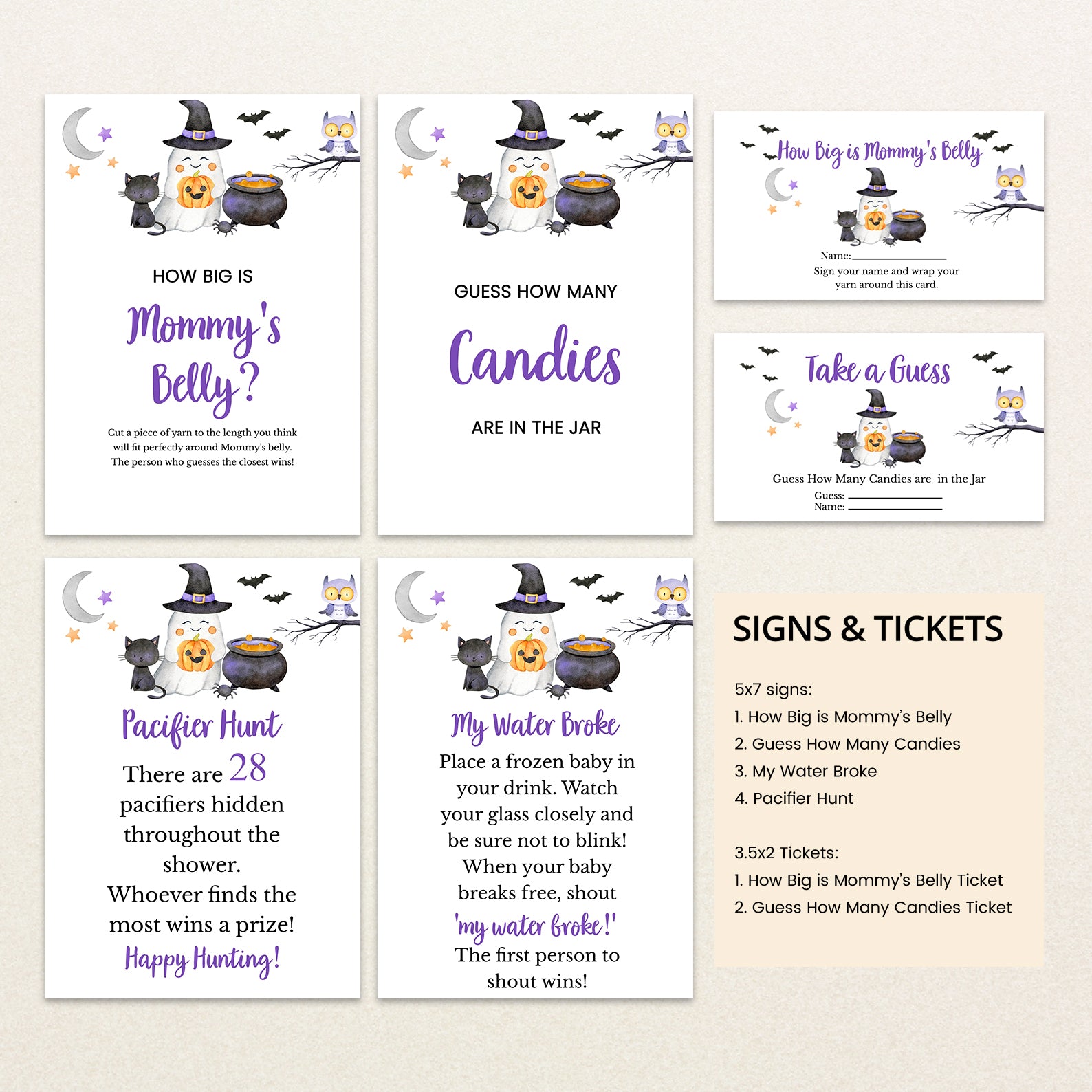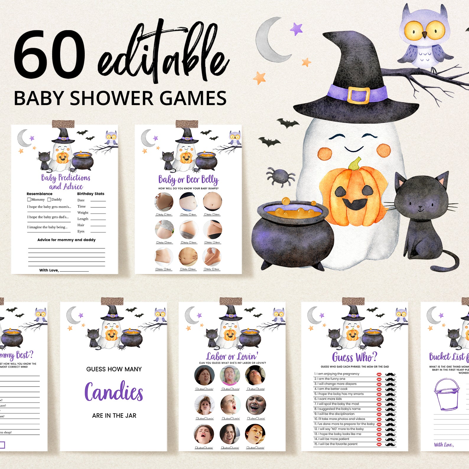 Welcome your little one in style with our delightful Halloween Baby Shower Game Bundle! This bundle includes editable baby shower games, providing endless fun and entertainment for your special event.