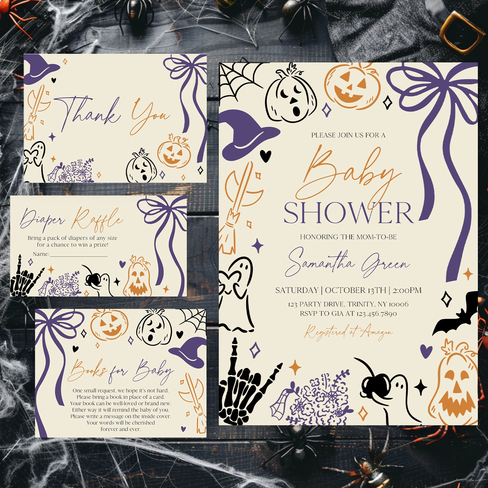 Halloween Baby Shower Invite Bundle: Pumpkins, Ghosts & Witchy Fun