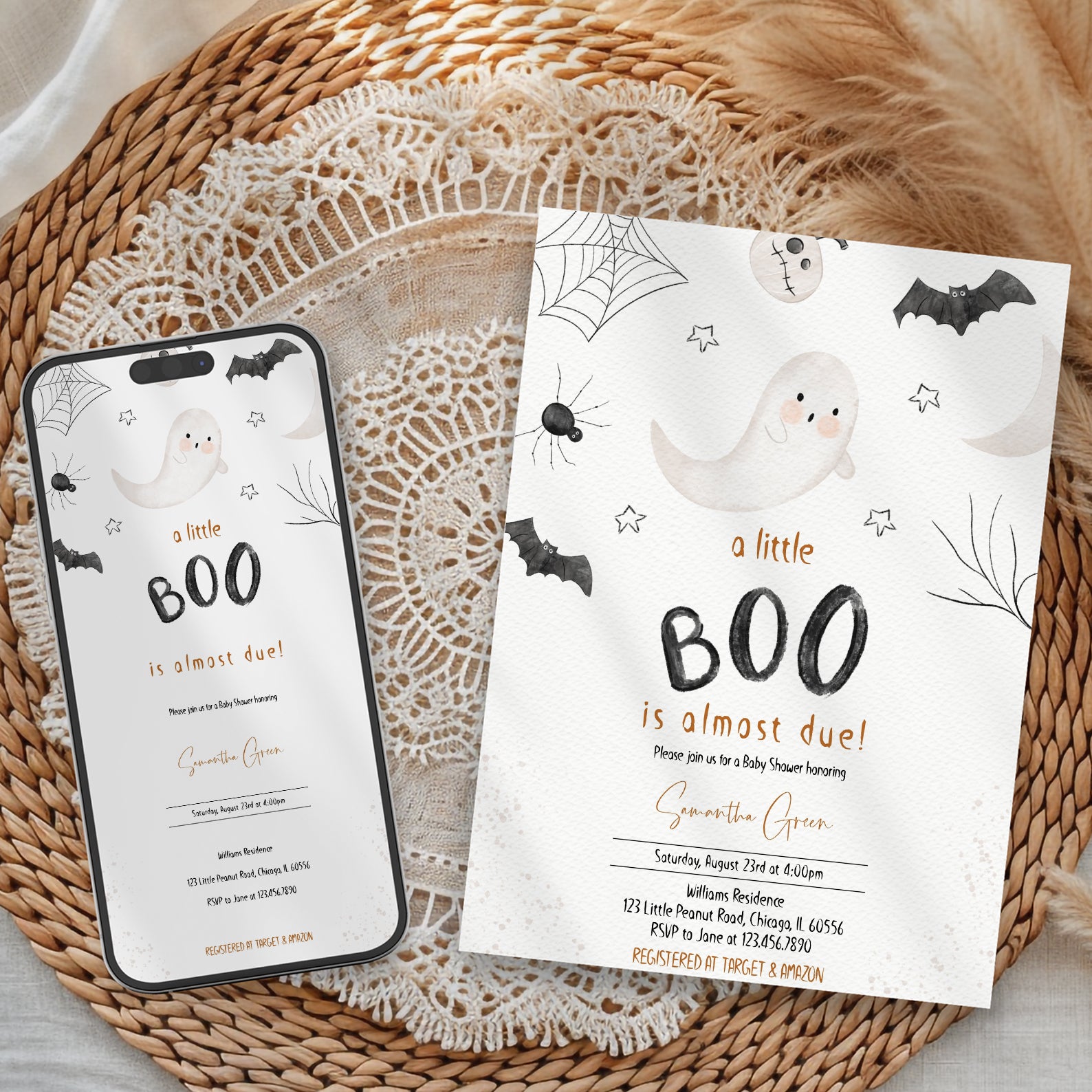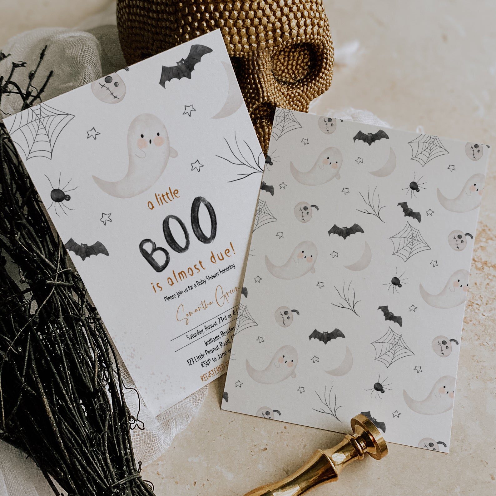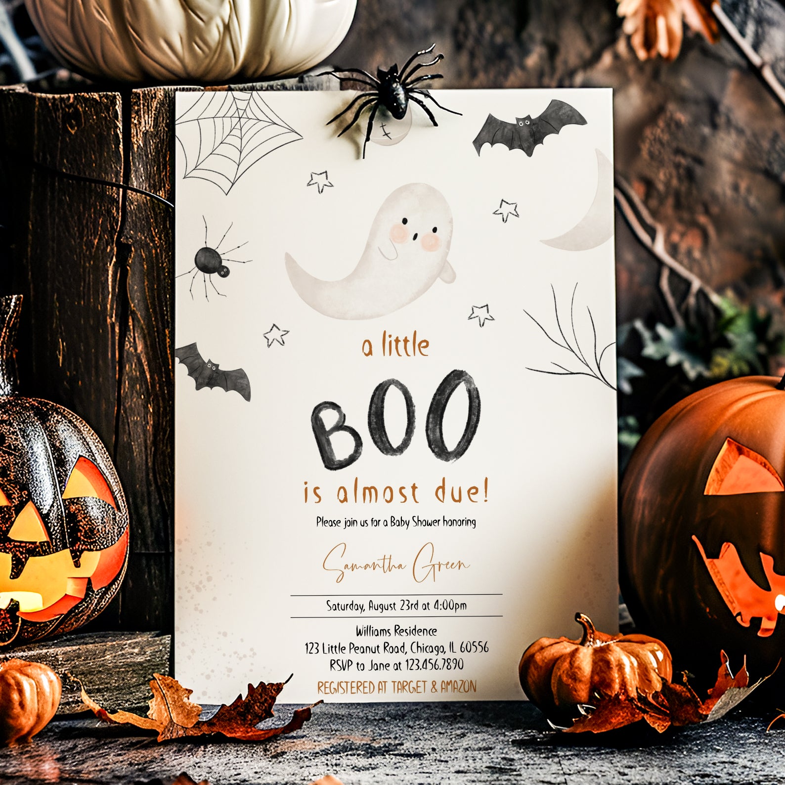 - Purchase this Minimalist Baby Shower Invite: ‘A Little Boo is Almost Due’ template