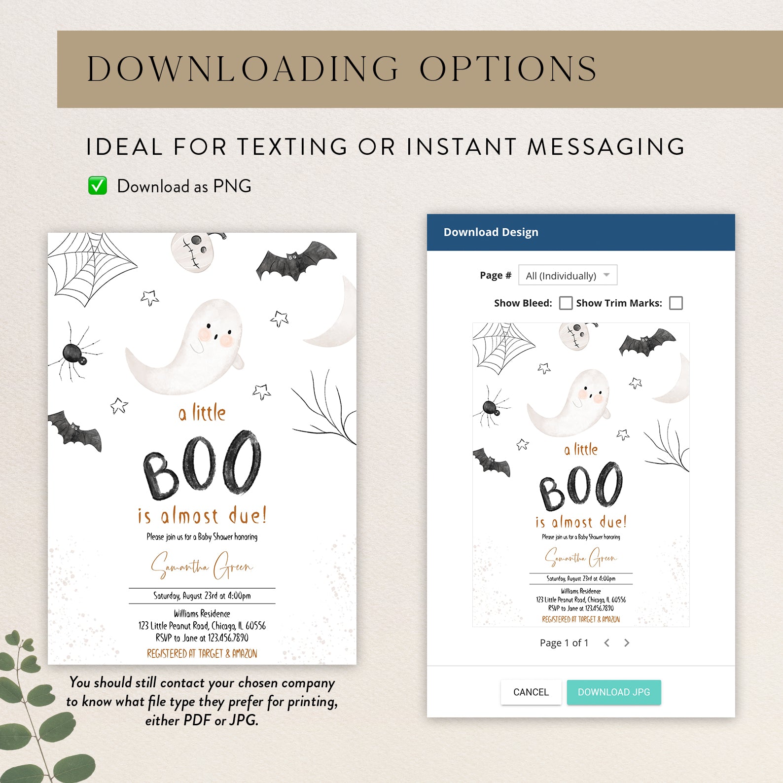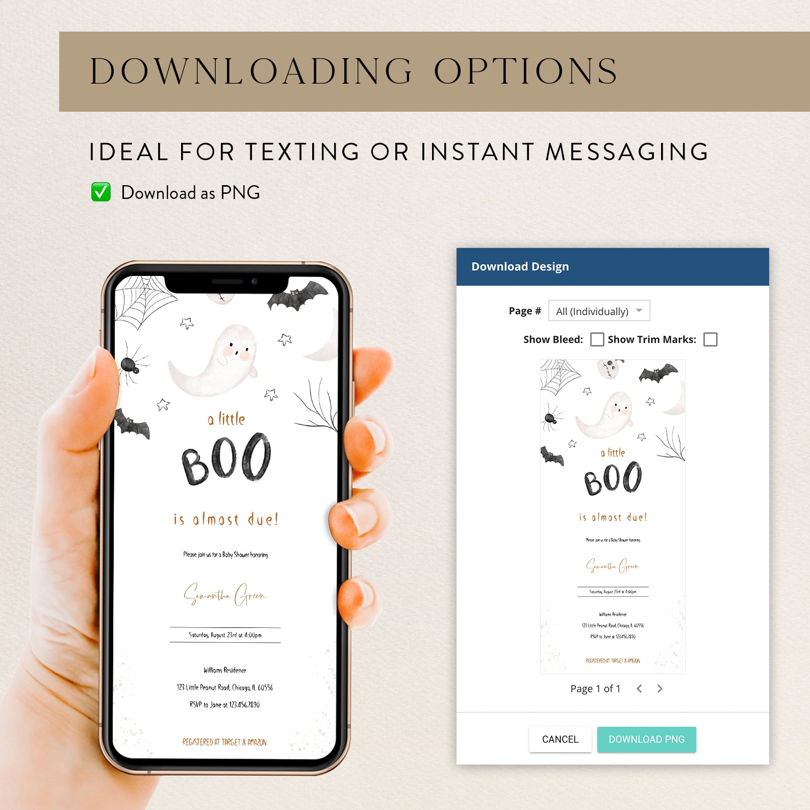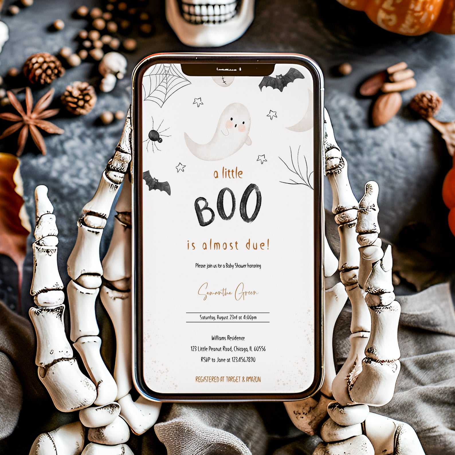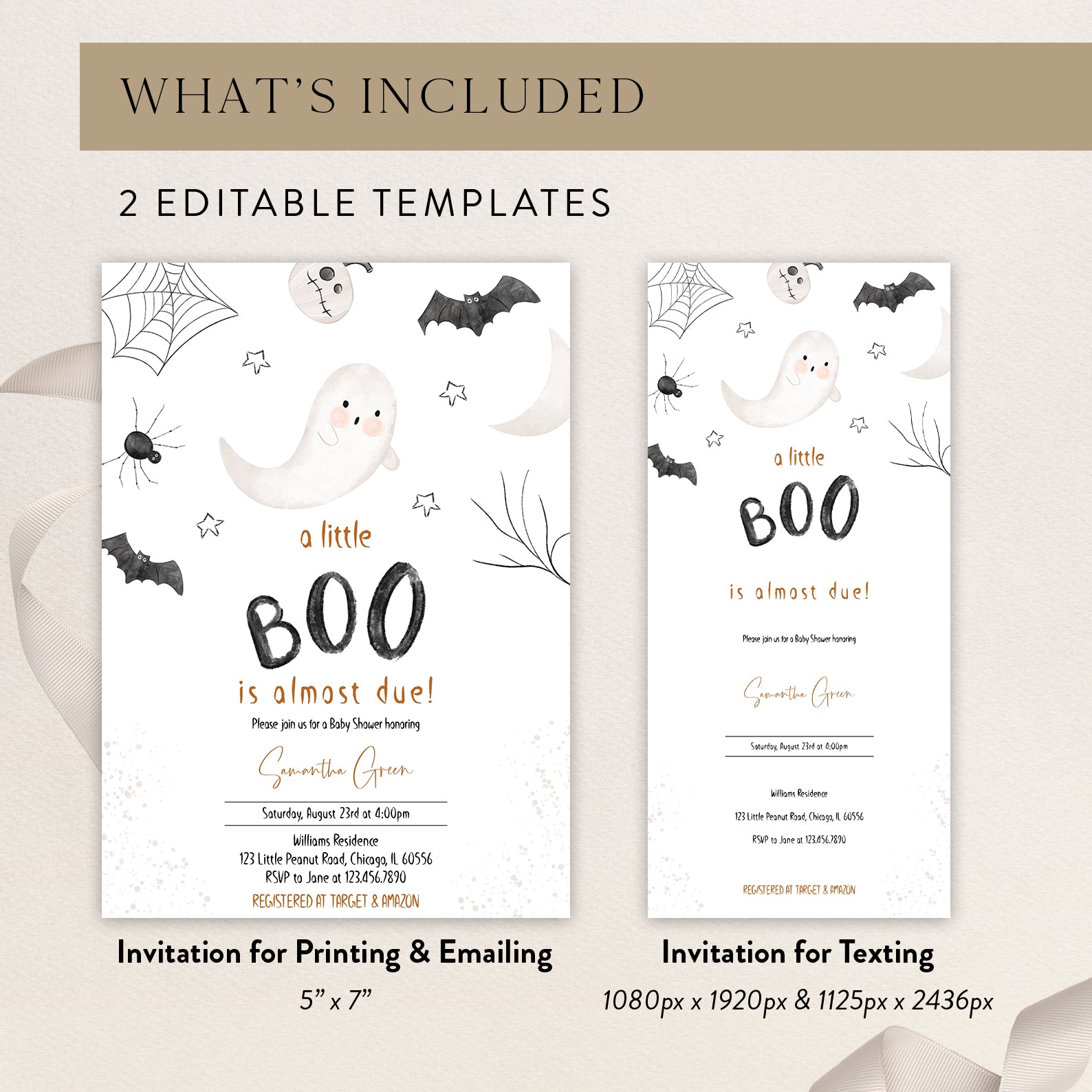 - Purchase this Minimalist Baby Shower Invite: ‘A Little Boo is Almost Due’ template