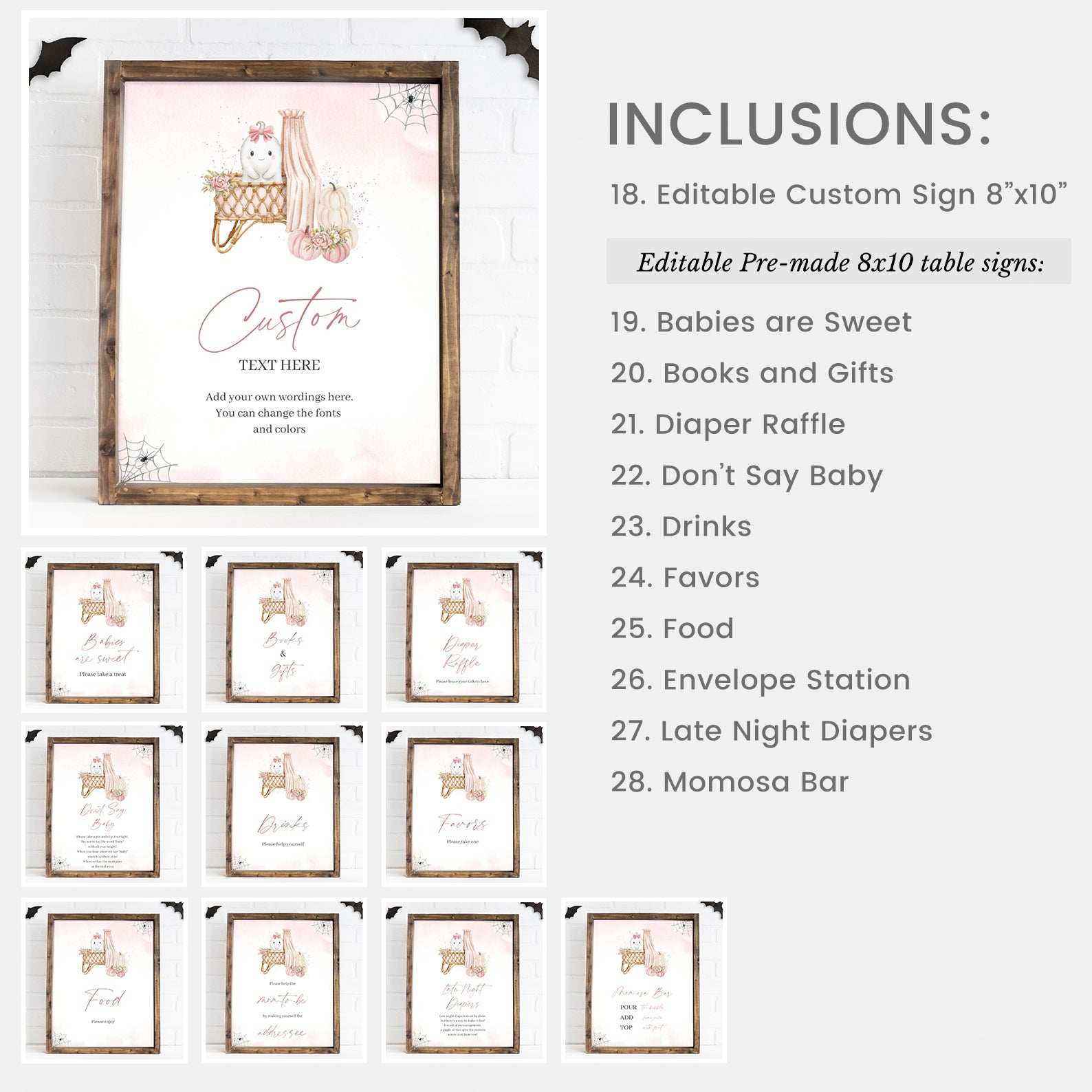 - Purchase this Pink Halloween Baby Shower Mega Bundle: A Boo-tiful Bundle Joy template