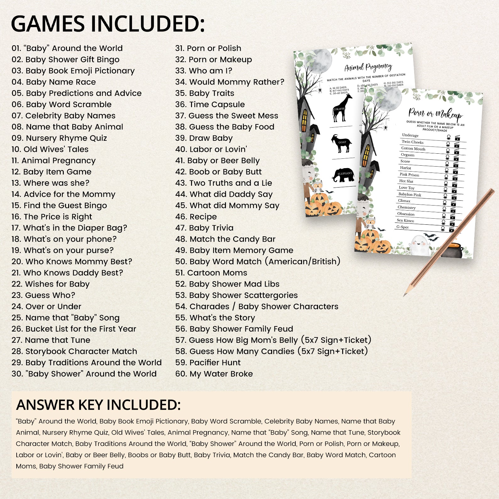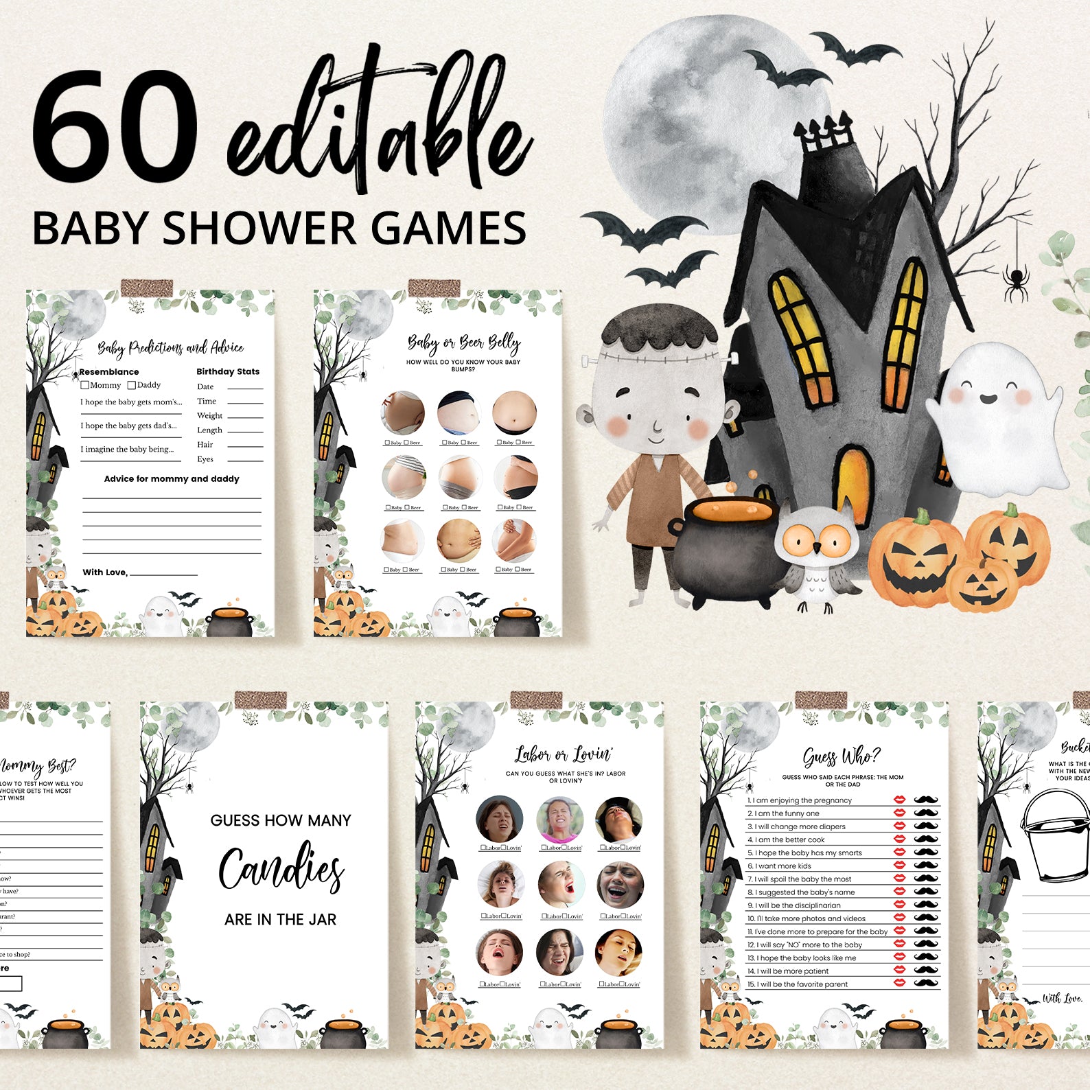 Bring extra fun to your spooky baby shower with this bundle of 60 editable Halloween-themed games! Featuring playful ghosts, bubbling cauldrons, bats, pumpkins, and a haunted house, each game is styled to match your eerie-sweet celebration. From classics like Baby Bingo to unique trivia, these printable games are fully customizable and easy to edit, giving guests plenty of laughs and memories as they celebrate your little boo’s arrival.