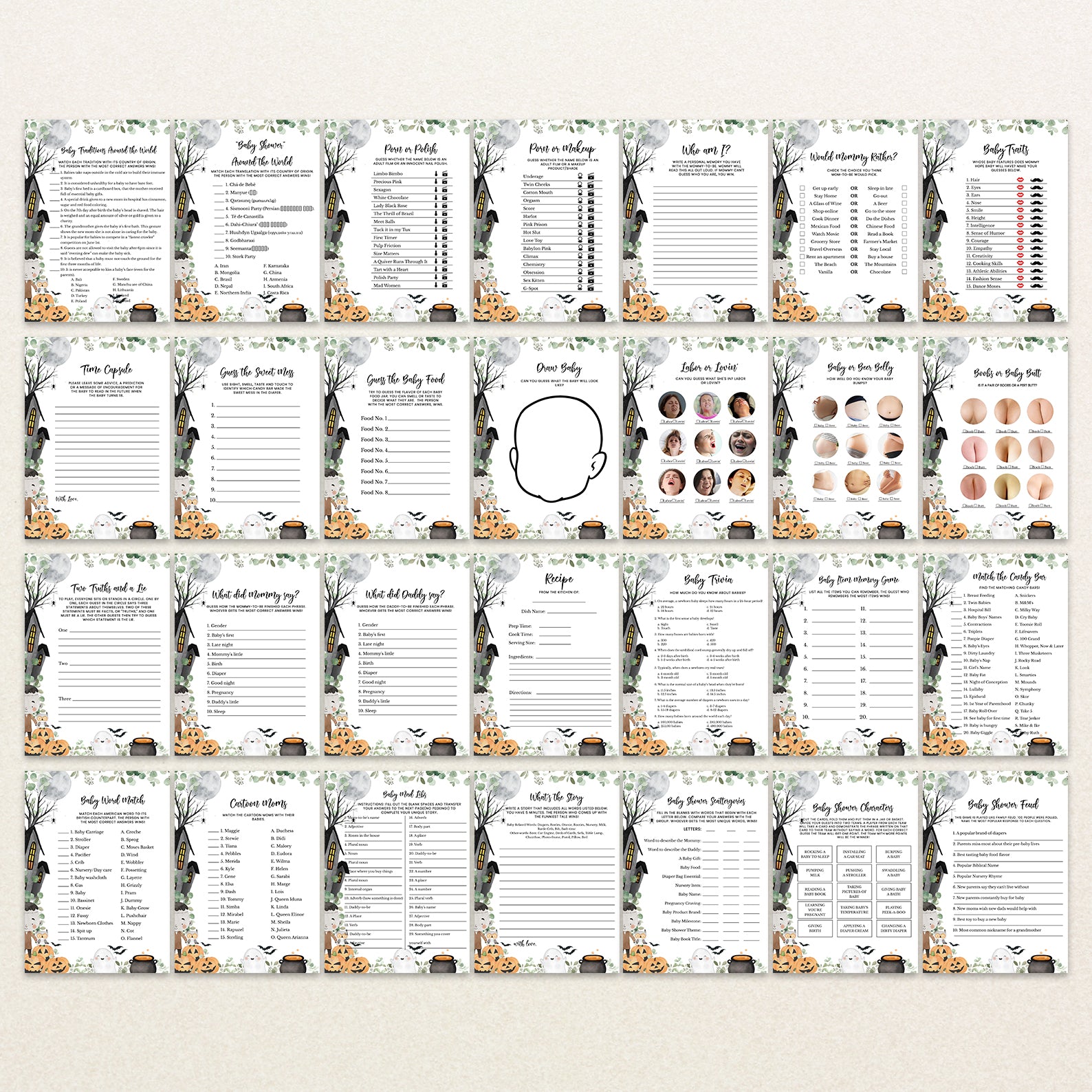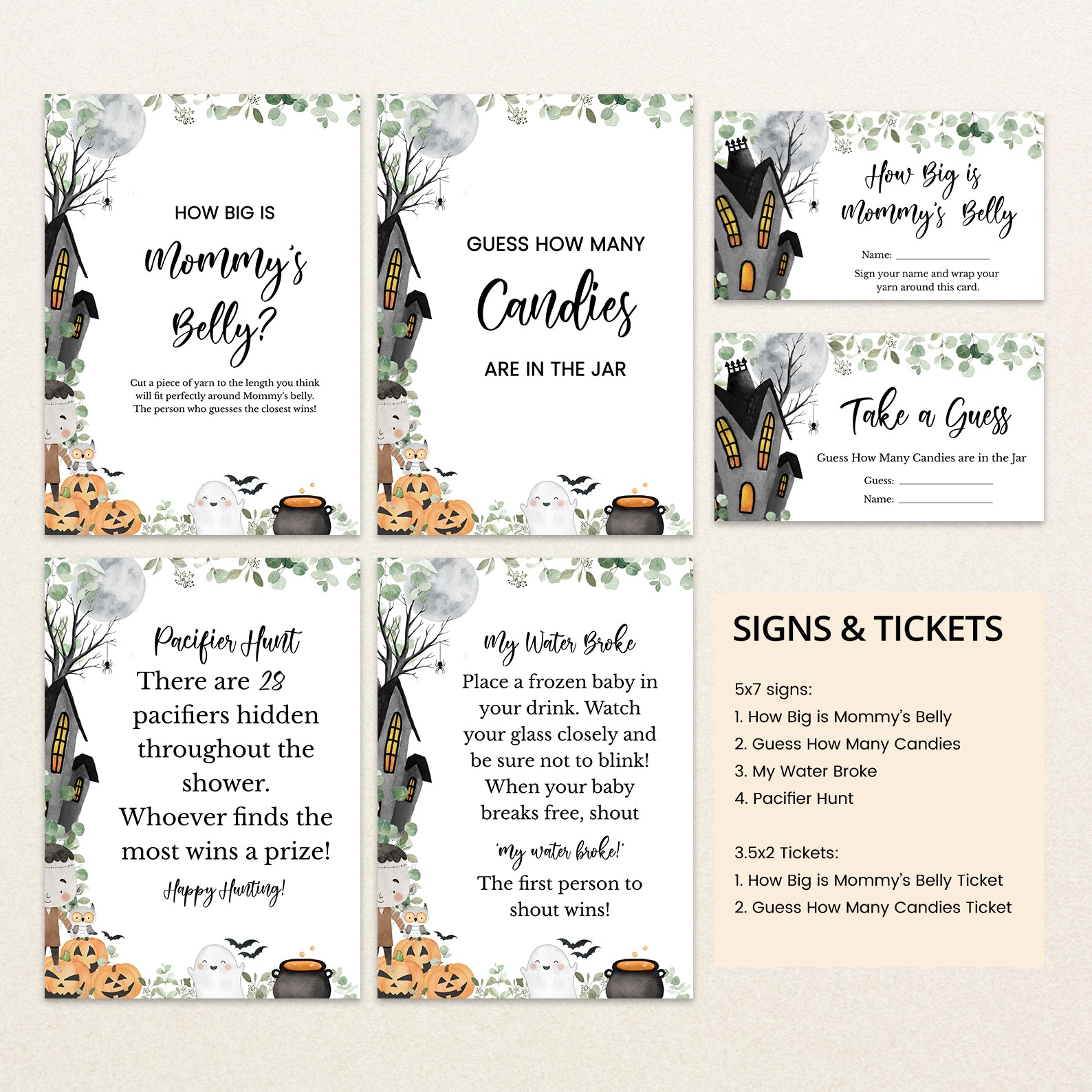 - Purchase this Spooky 'A Little Boo is Almost Due' Halloween Baby Game Bundle template