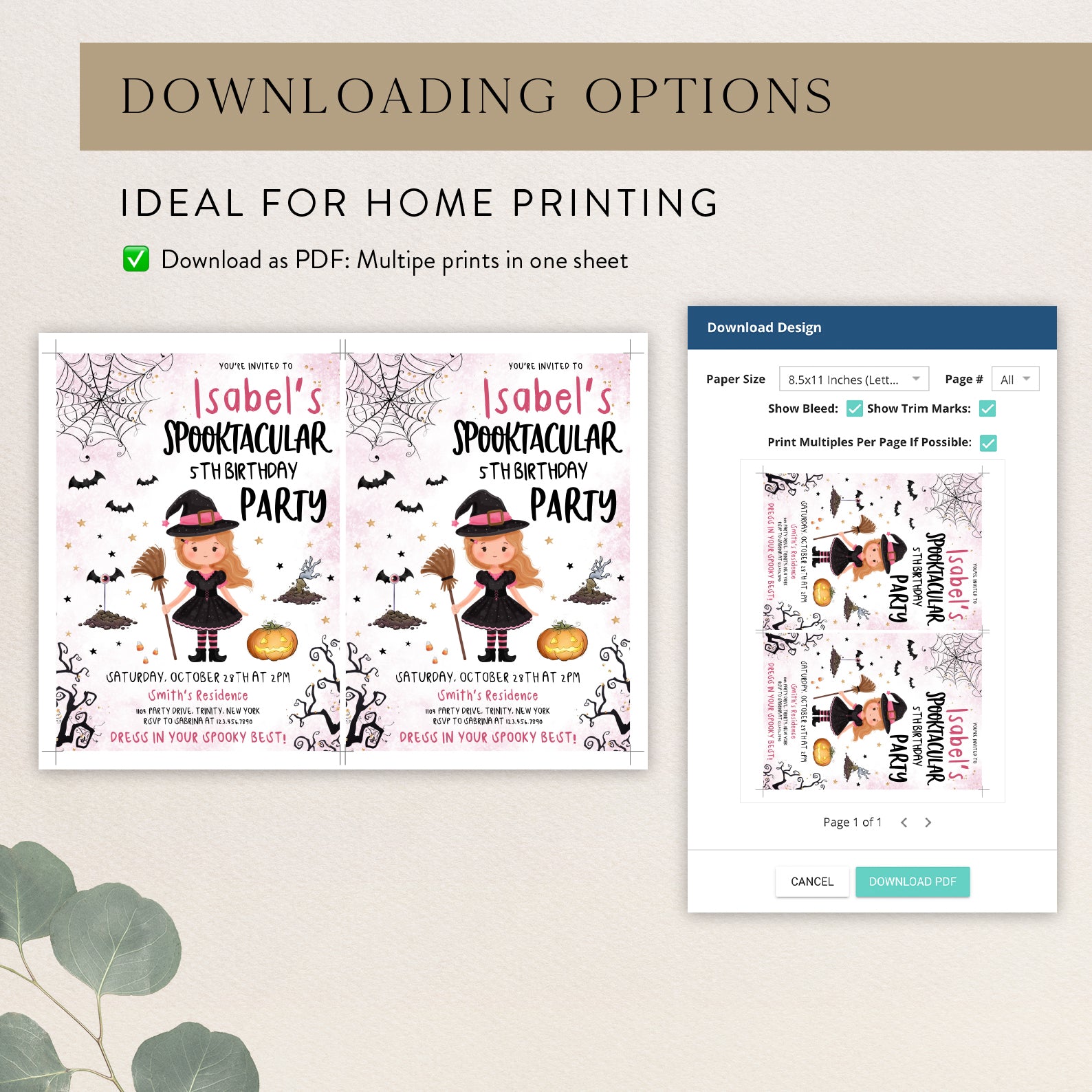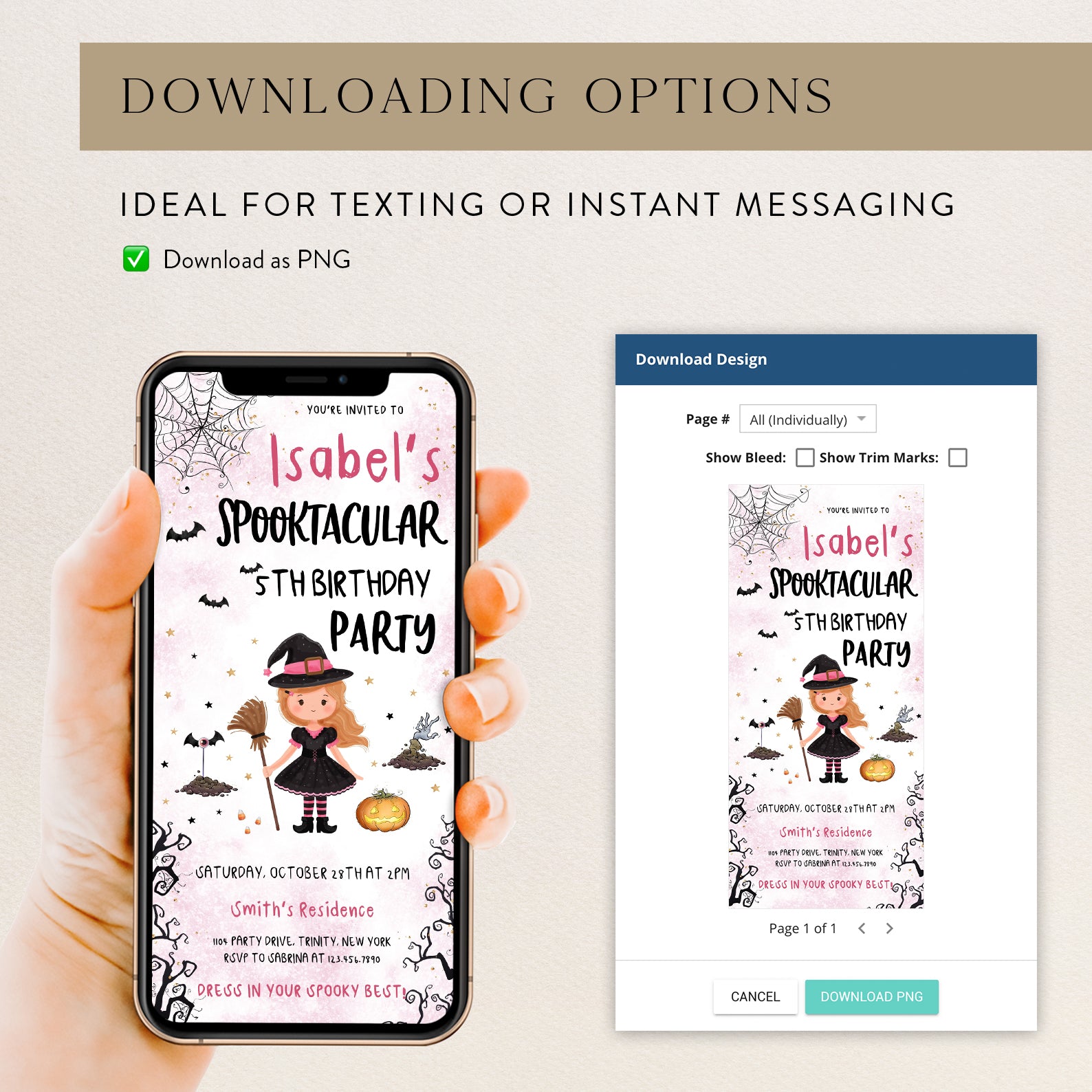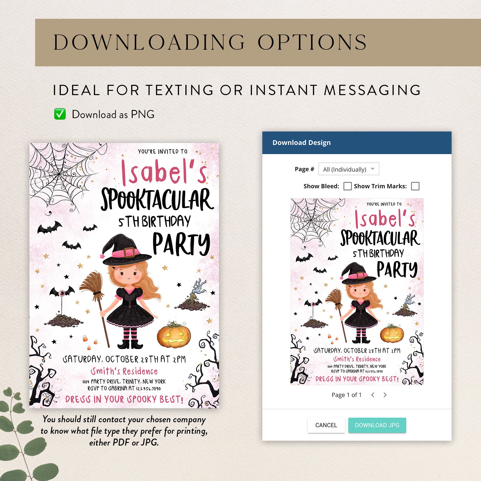- Purchase this 5th Halloween Birthday Invite: Pink Witch Party for Girls template