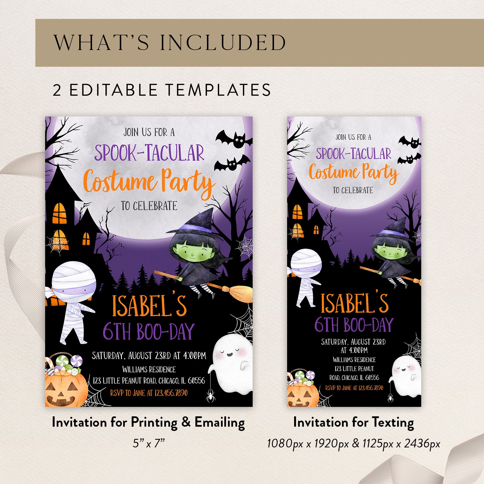 - Purchase this 6th Birthday Halloween Invite: Spooktacular Costume Party template