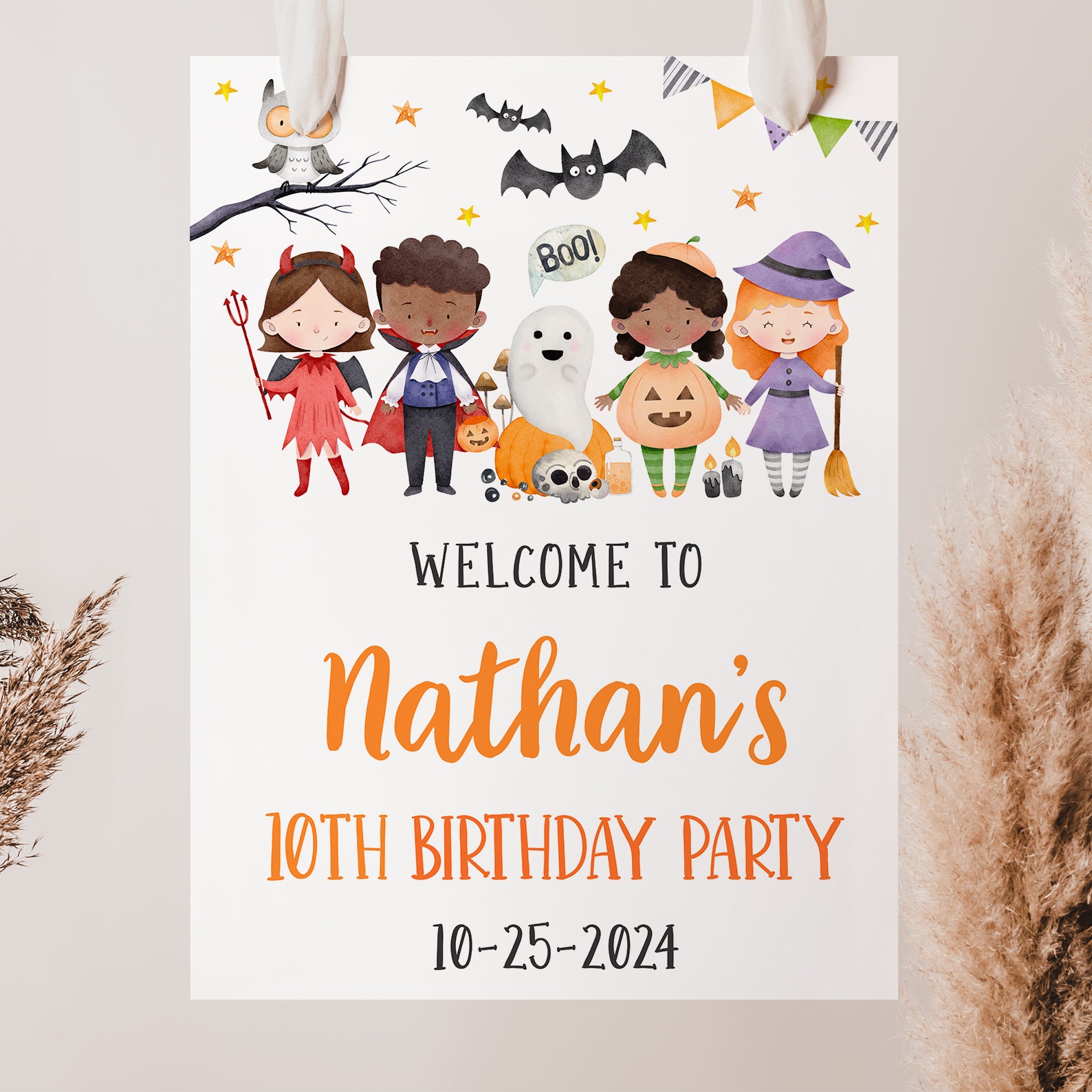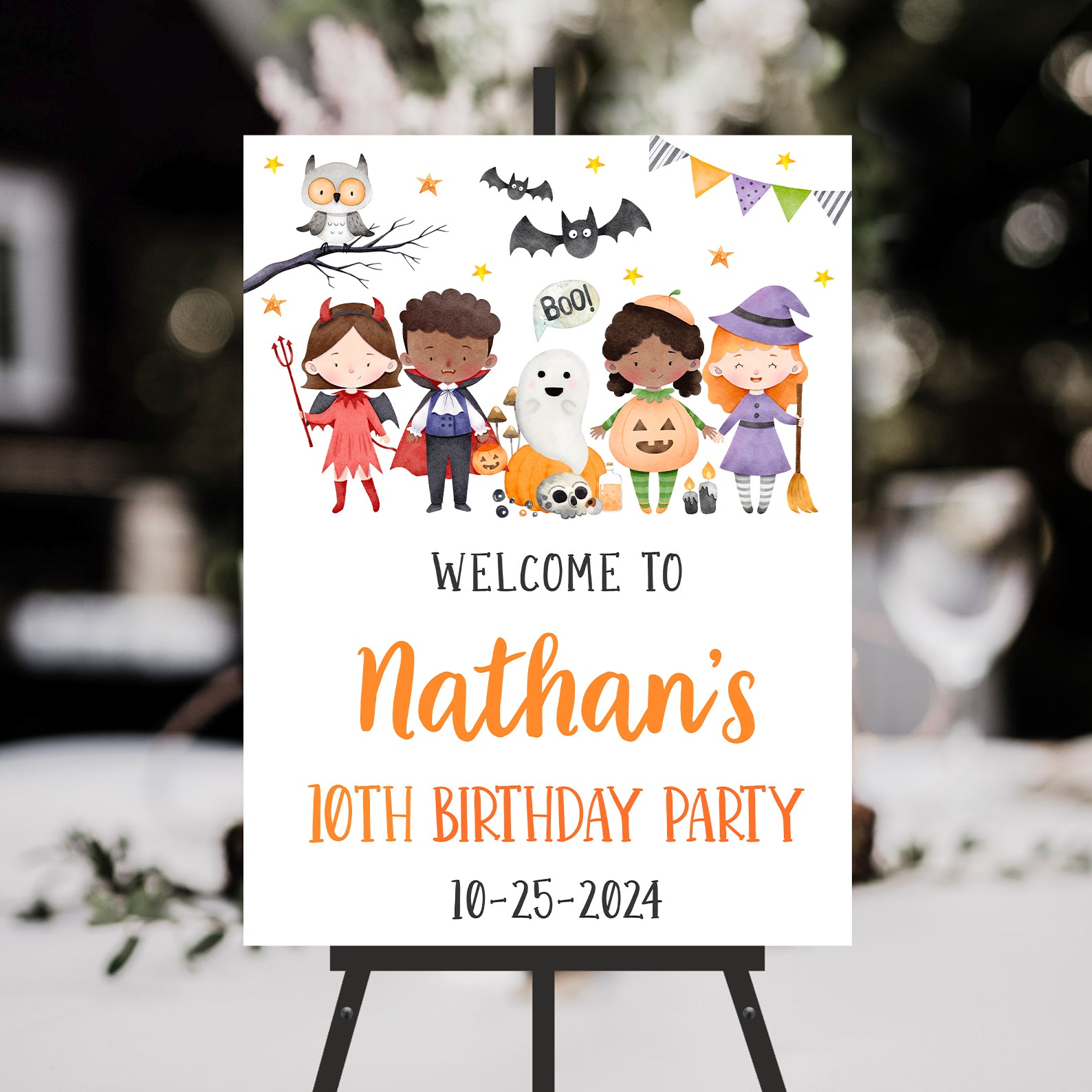 - Purchase this Spooky 10th Birthday Welcome Sign: Kids Halloween Costume Party template
