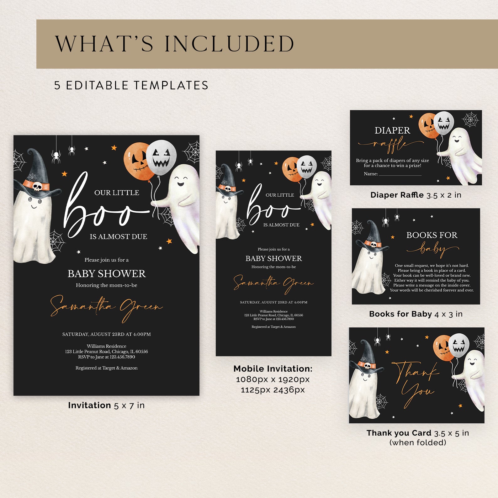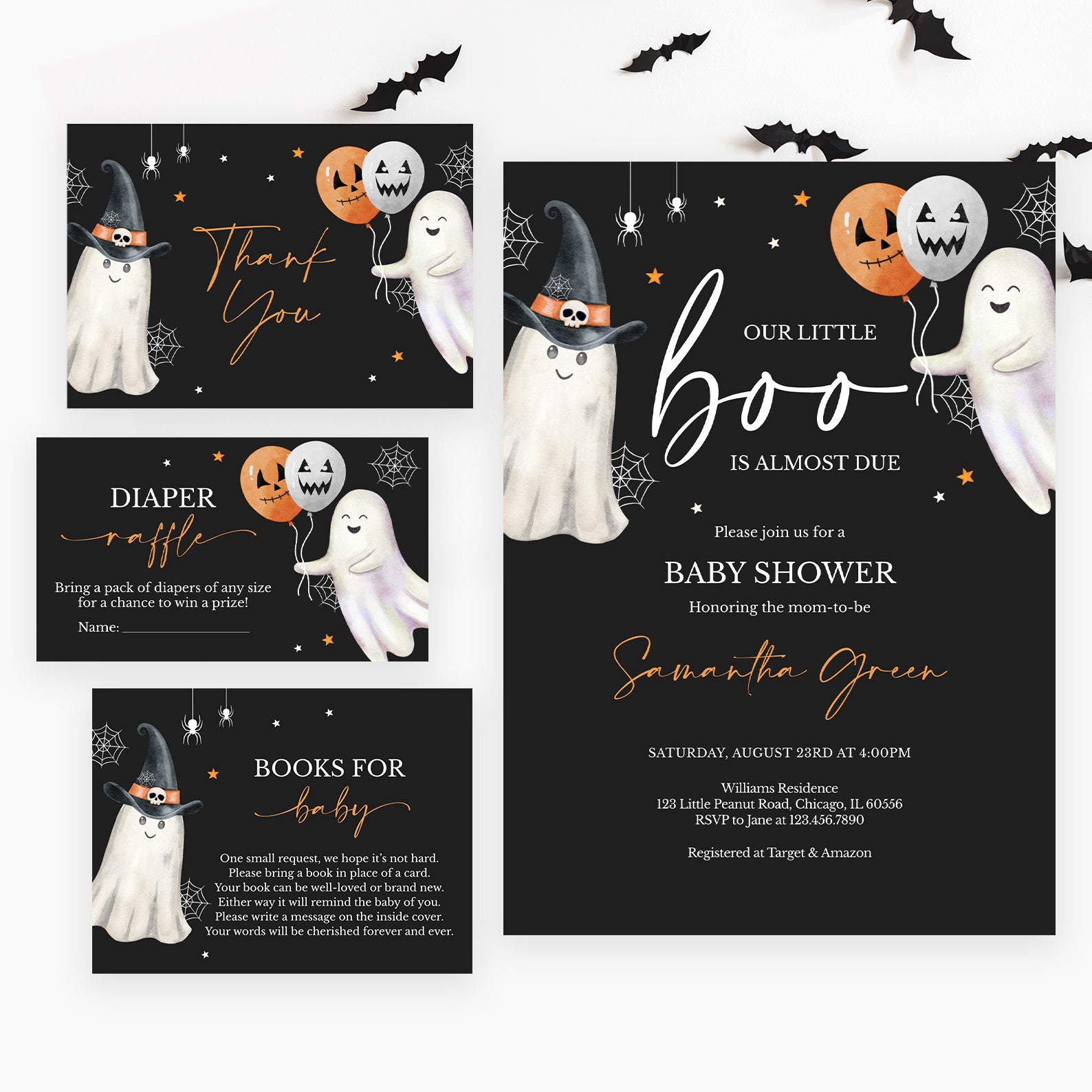 - Purchase this A Little Boo Is Due Halloween Ghost Baby Shower Black Invite Bundle template