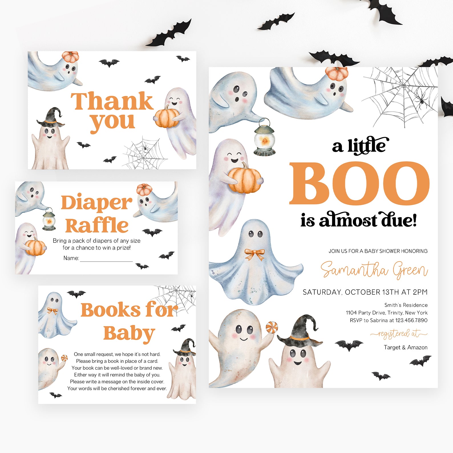 - Purchase this Cute Ghost Baby Shower Invitation Bundle: A Little Boo template