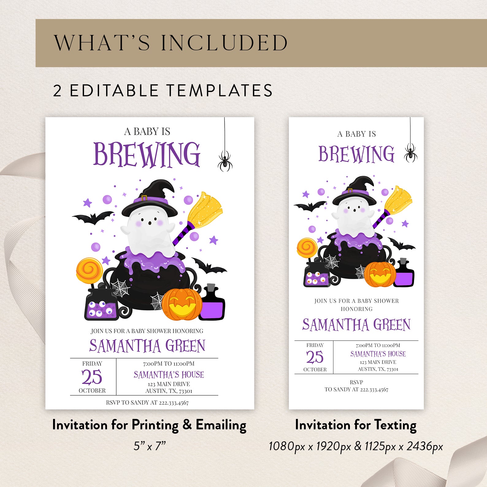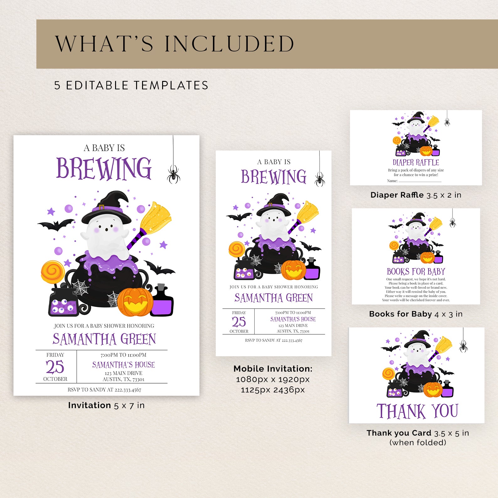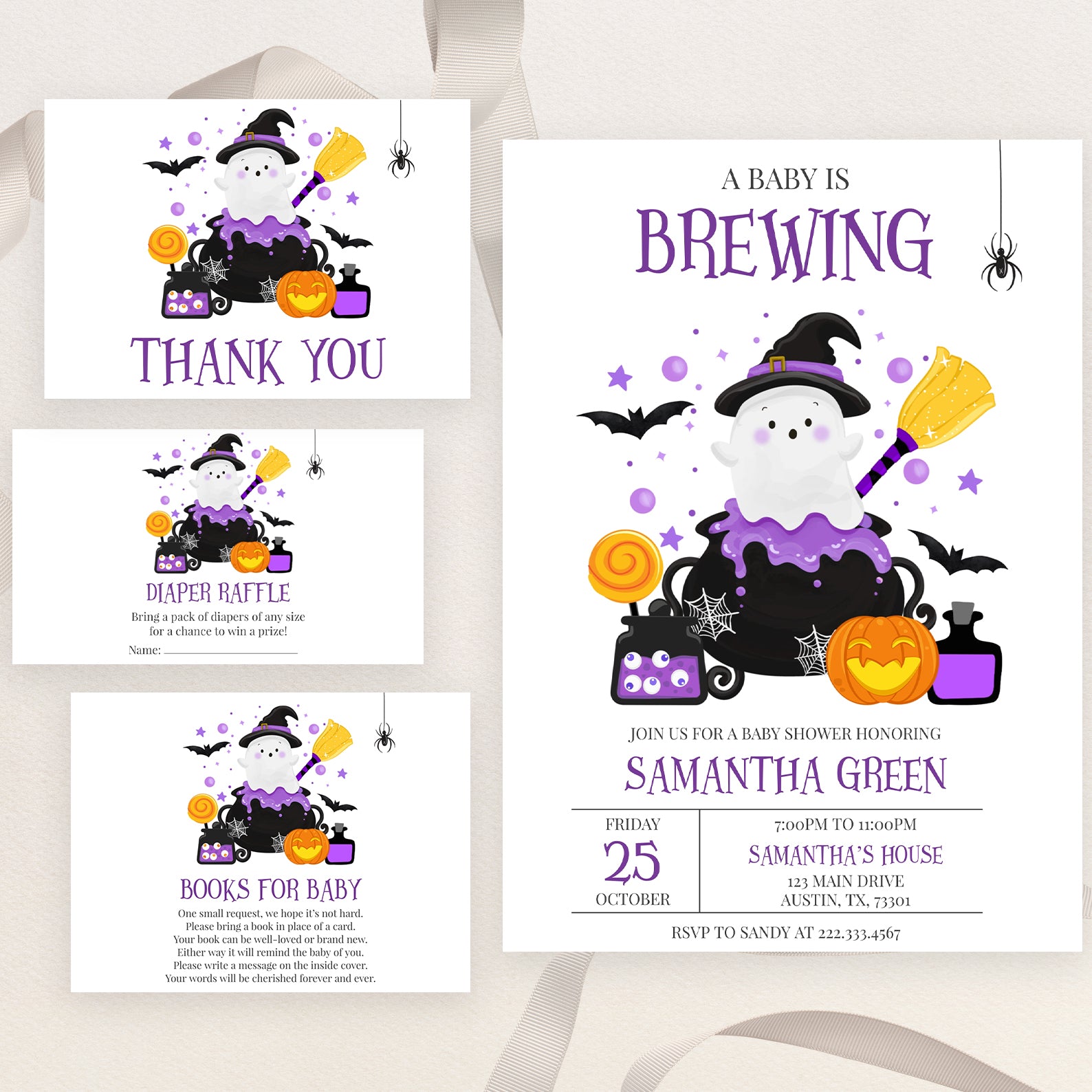 - Purchase this Little Boo Brewing in Cauldron Purple Digital Baby Shower Invitation Bundle template
