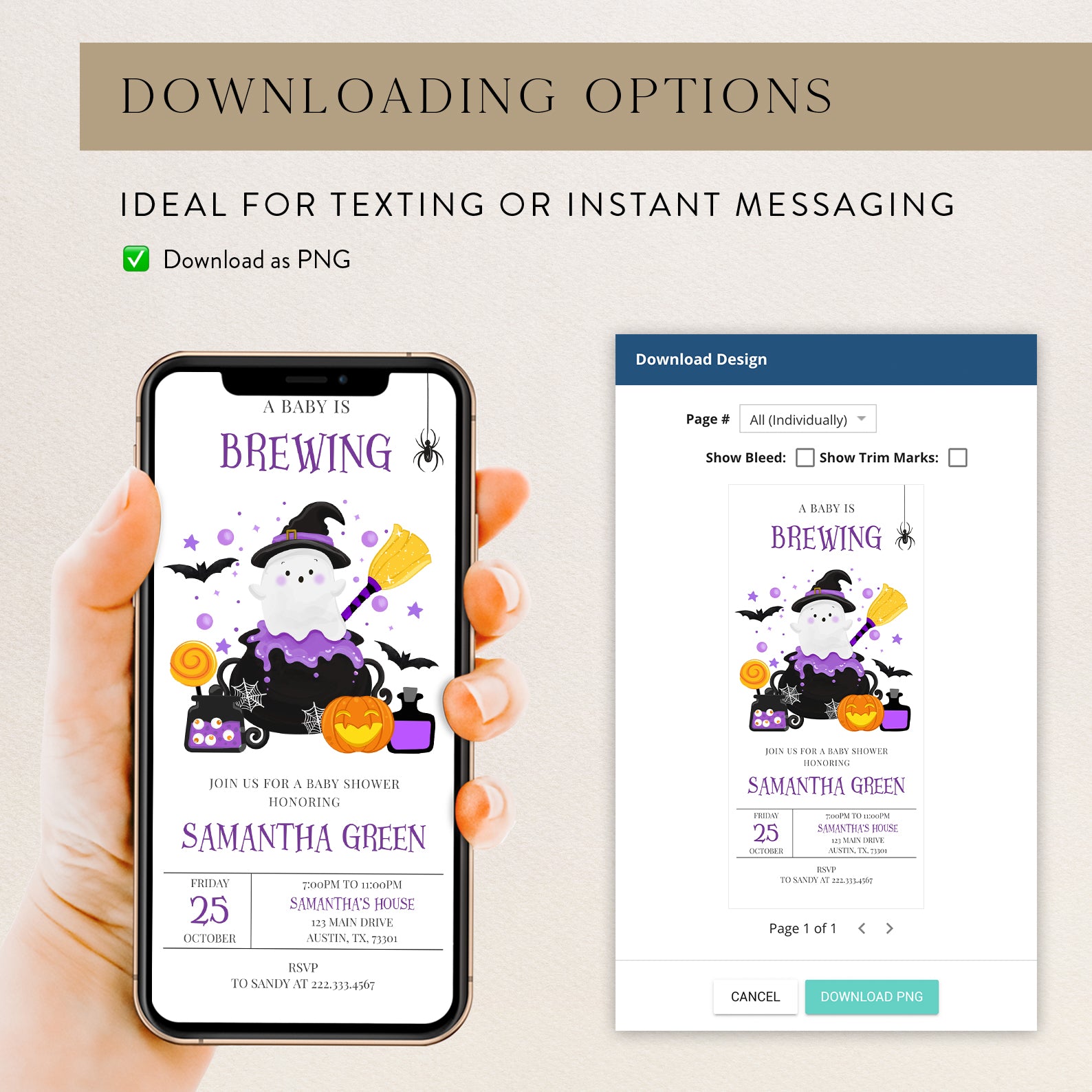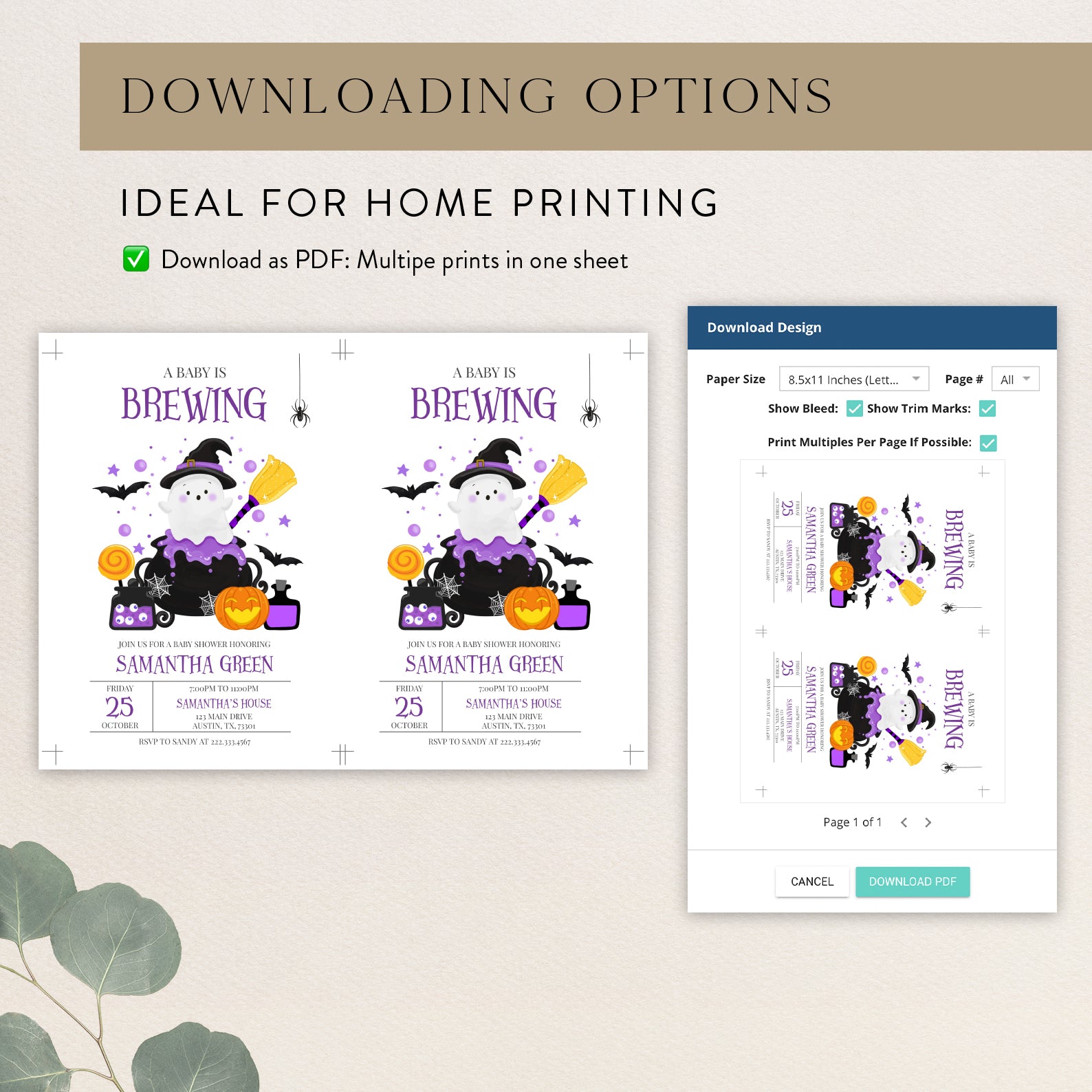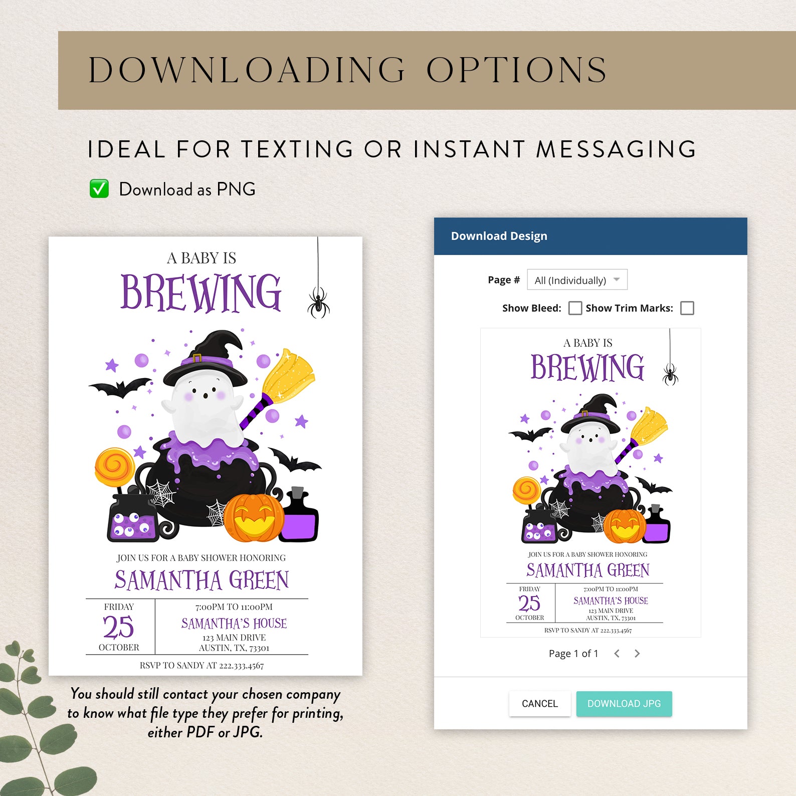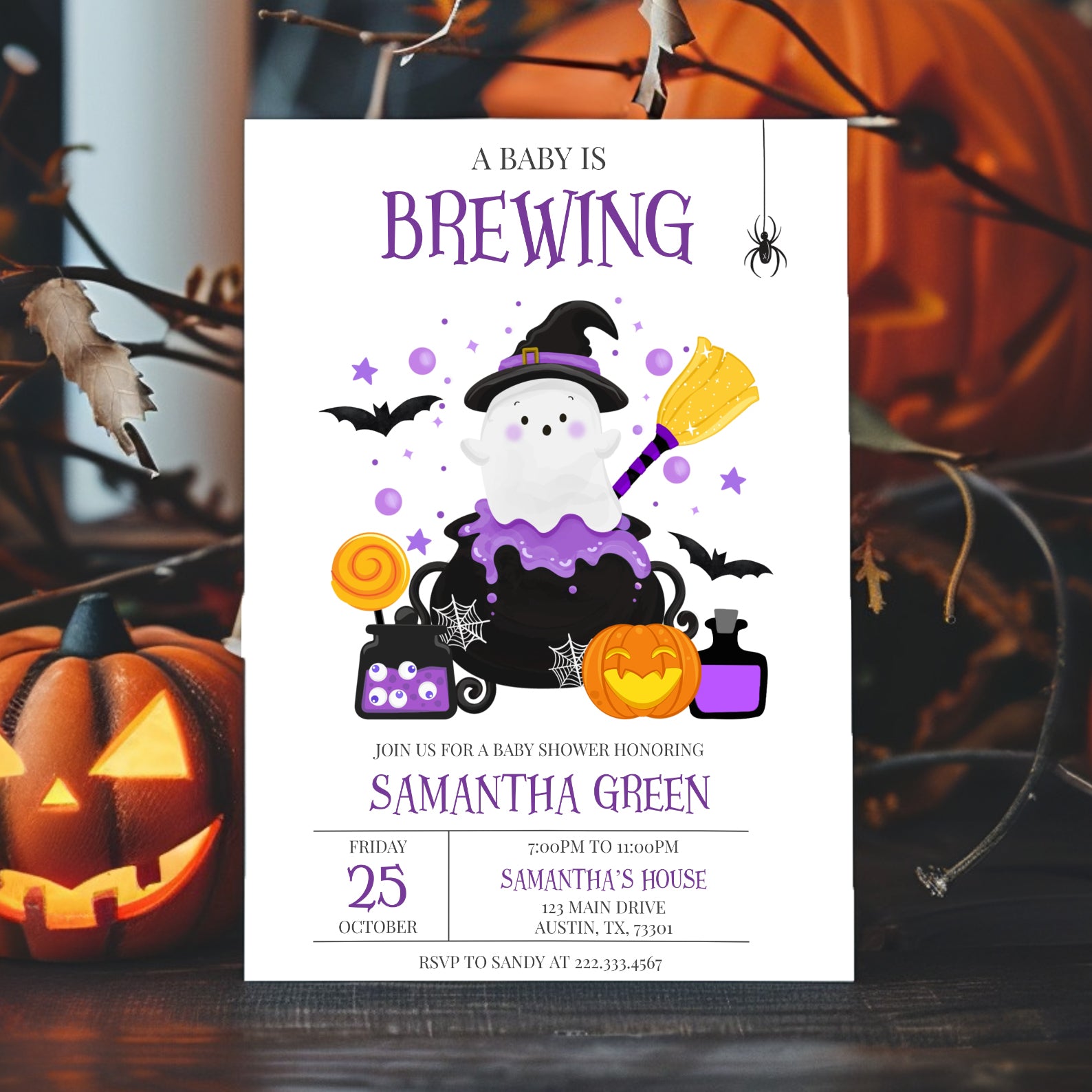- Purchase this Little Boo Brewing in Cauldron Purple Digital Baby Shower Invitation Bundle template