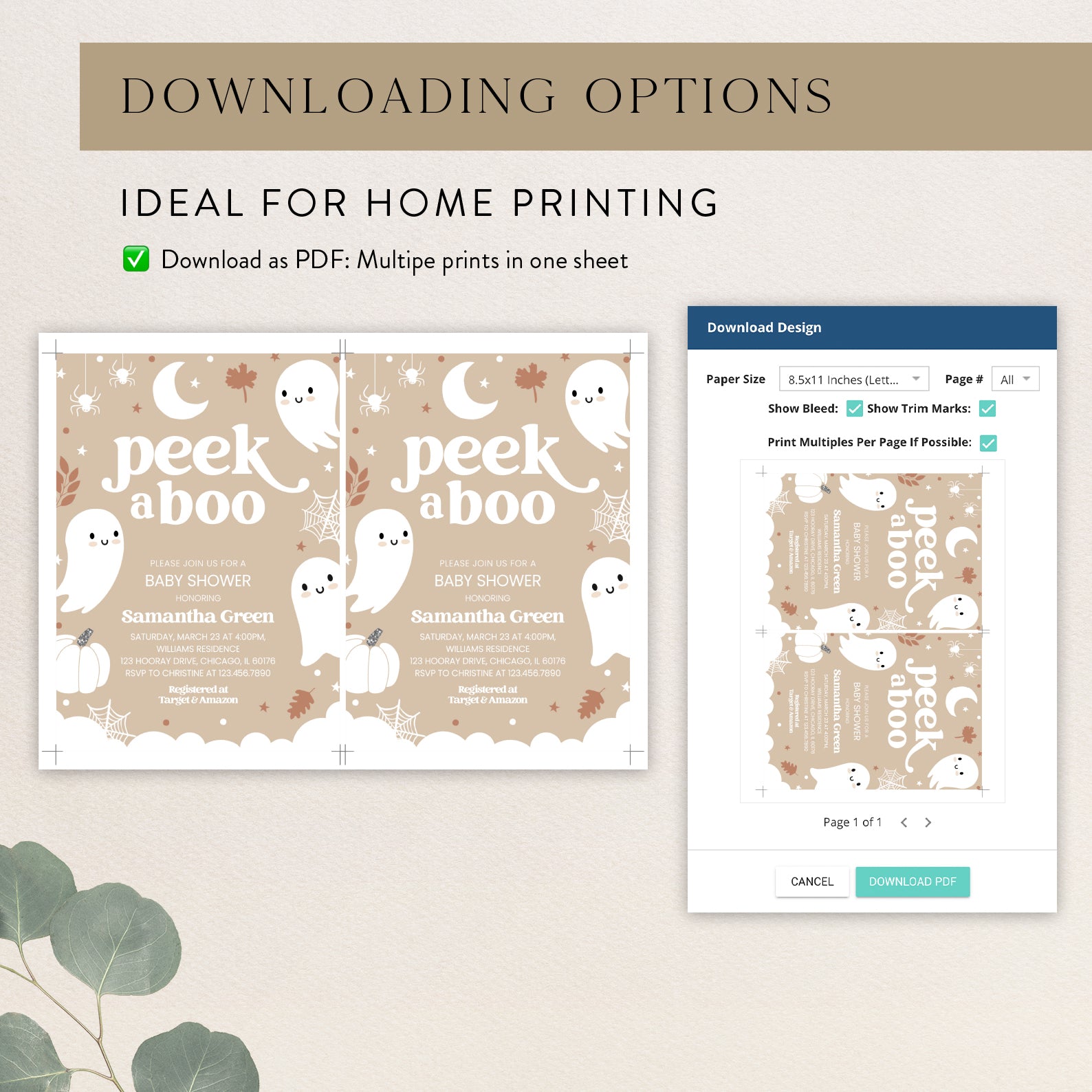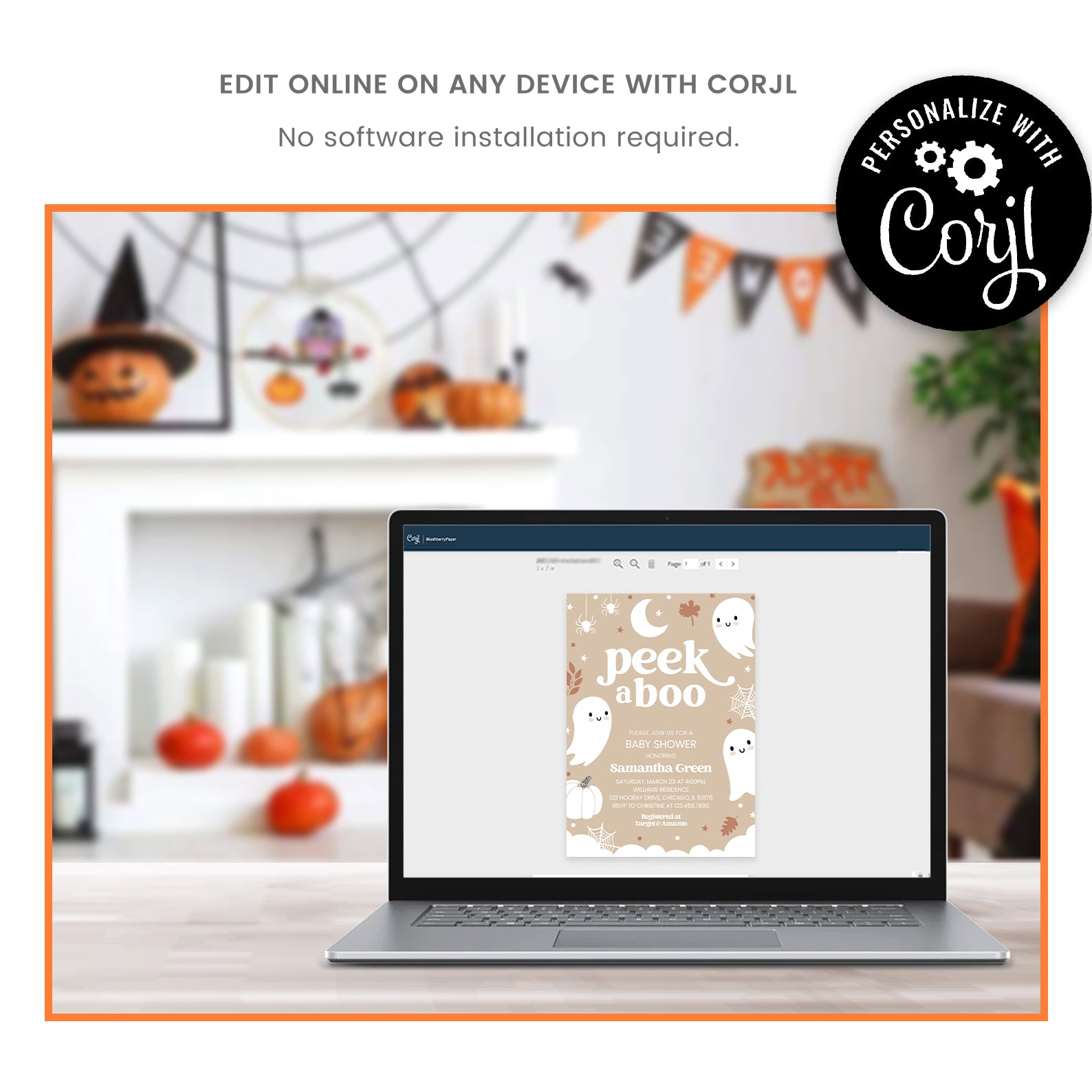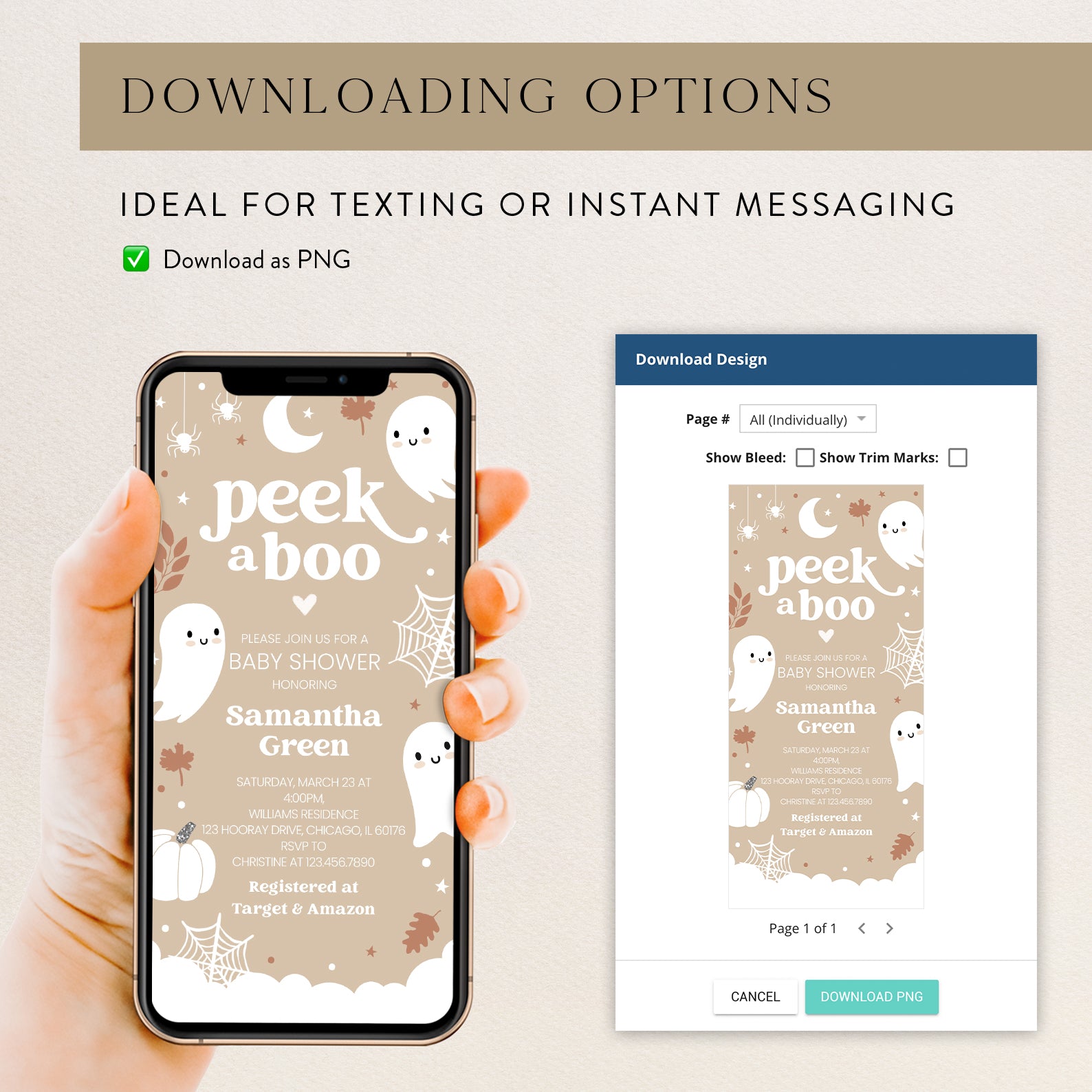 - Purchase this Peek-A-Boo Baby Shower Invite Bundle: Friendly Ghosts & Halloween Fun! template