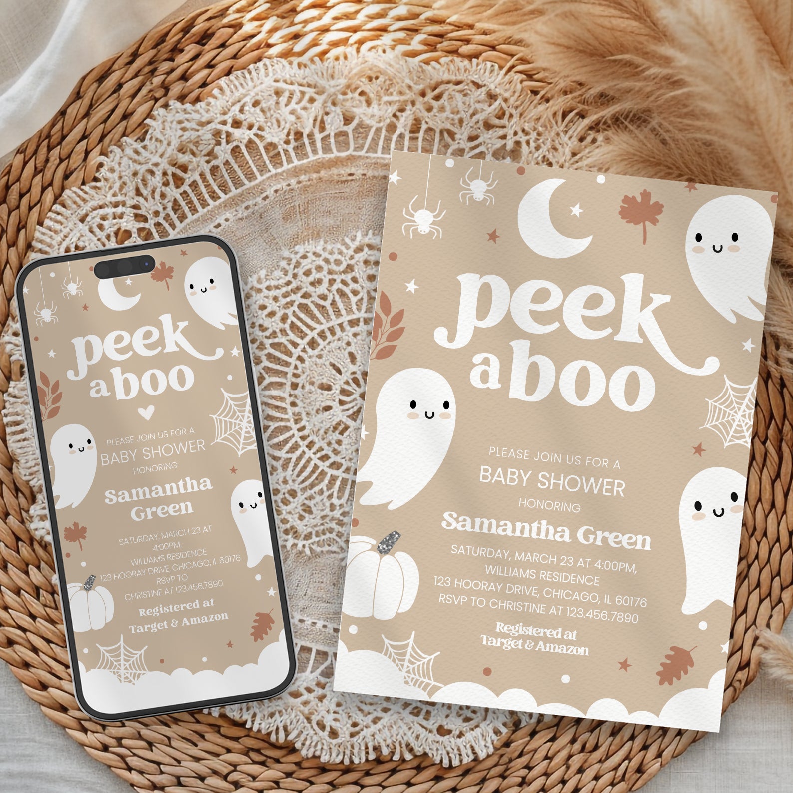 Peek-A-Boo Baby Shower Invite Bundle: Friendly Ghosts & Halloween Fun!