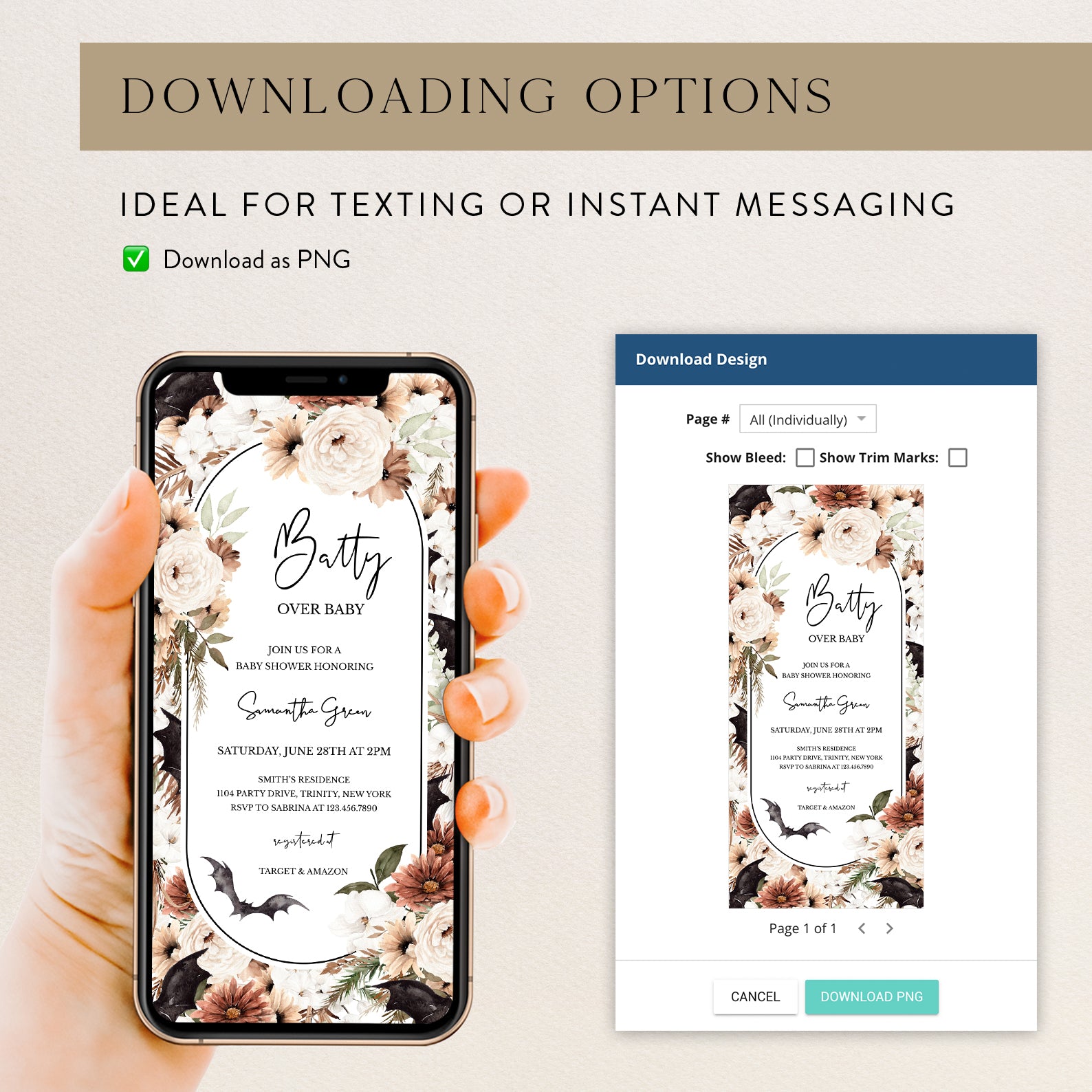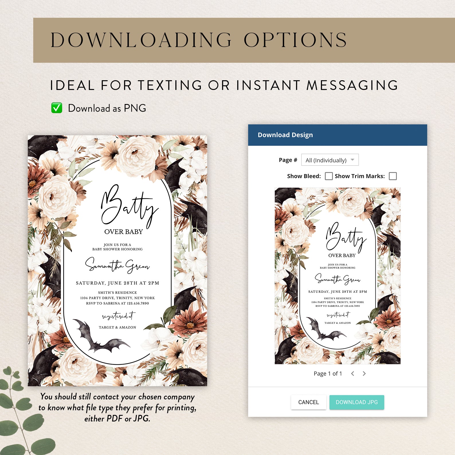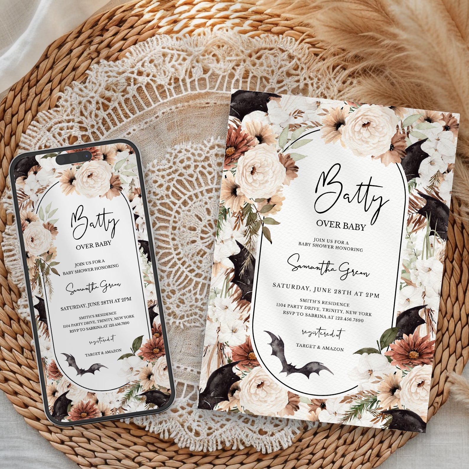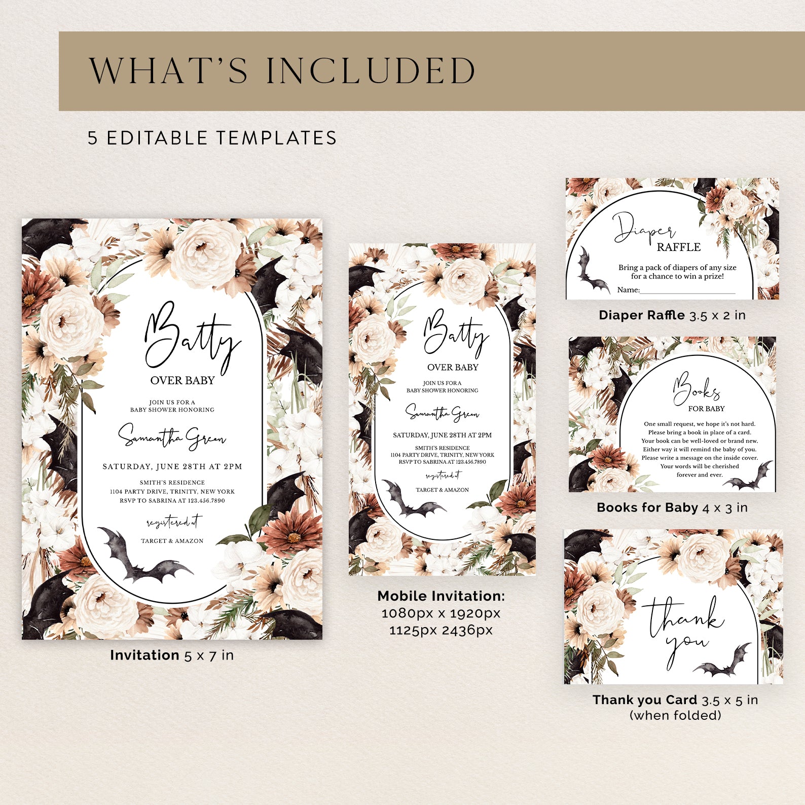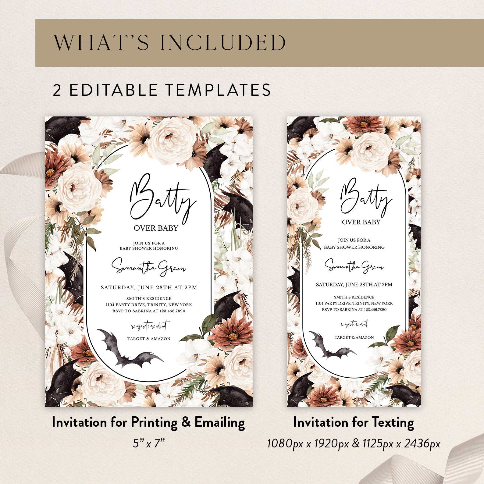 - Purchase this Spooky Batty Baby: Halloween Invite Bundle with Floral Watercolor template