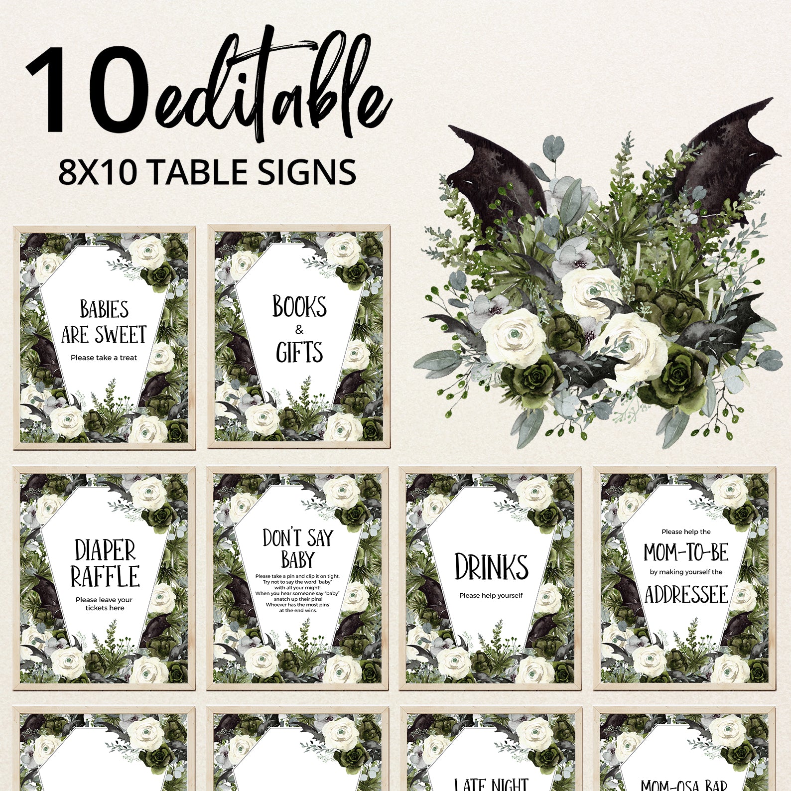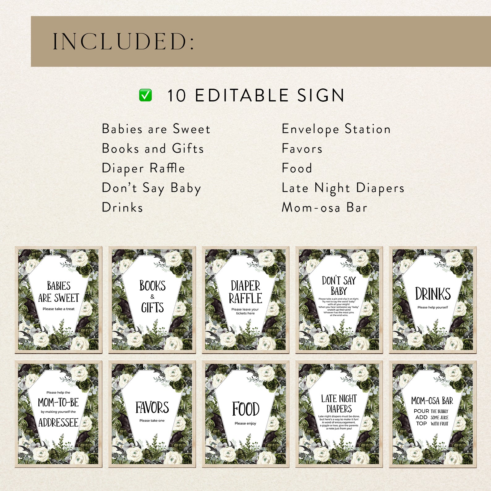 - Purchase this Coffin-Shaped Baby Shower Table Sign: Bats & Green Roses template