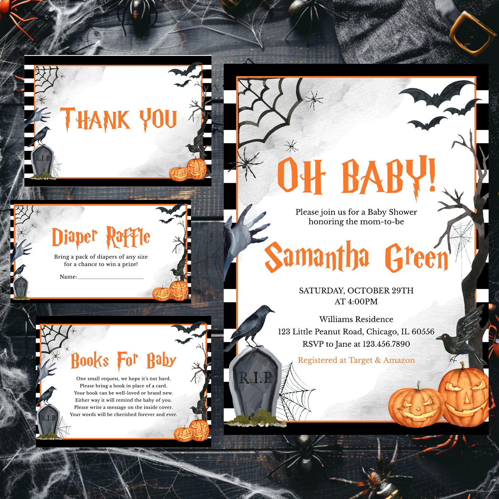 Eerie 'Oh Baby' Halloween Digital Invitation Bundle: Spooky Fun