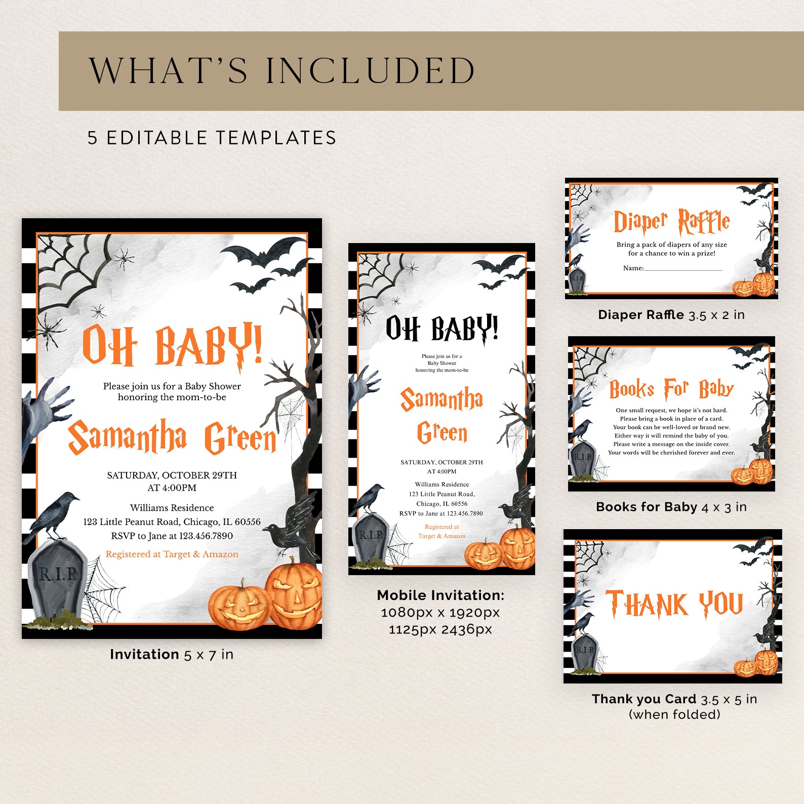 - Purchase this Eerie 'Oh Baby' Halloween Digital Invitation Bundle: Spooky Fun template