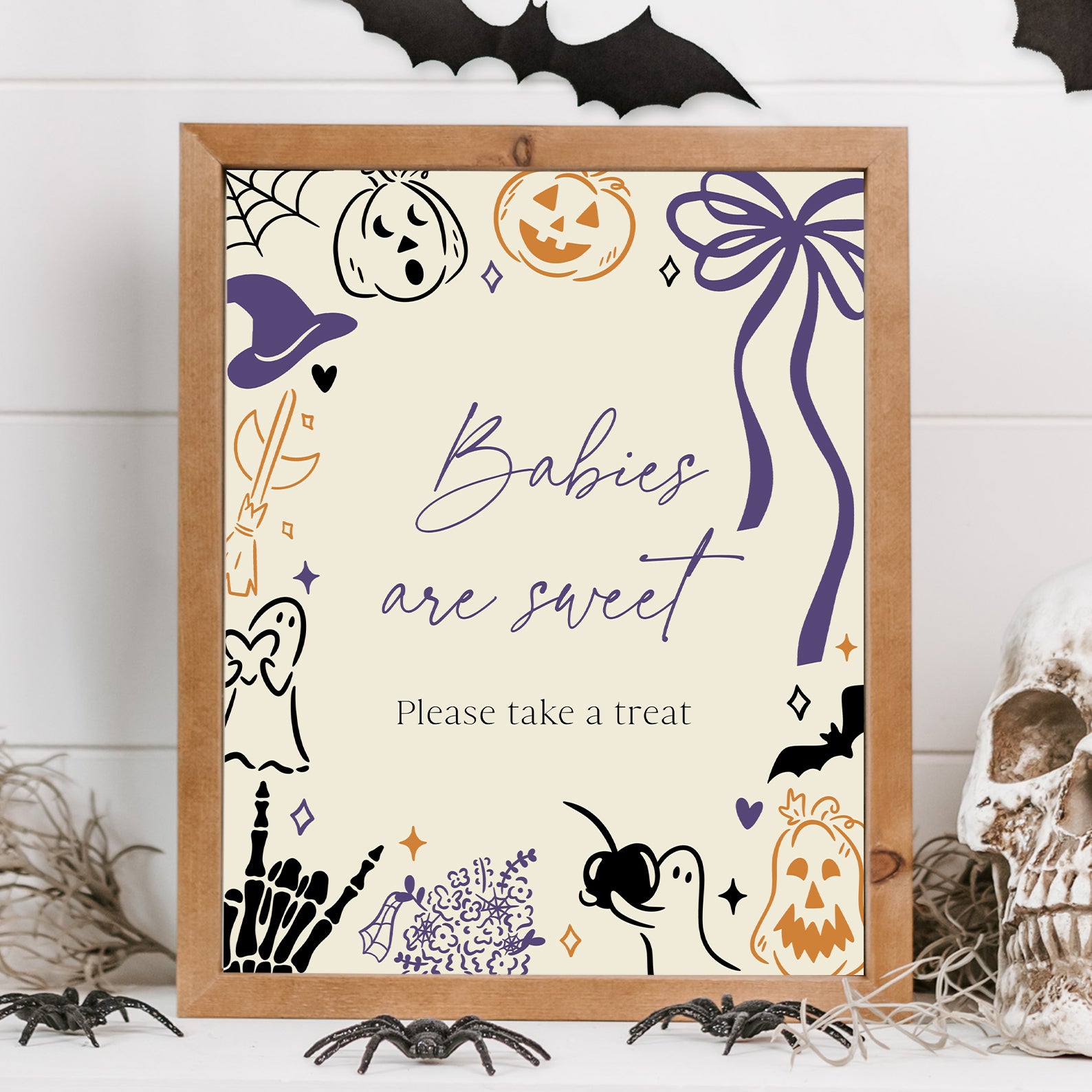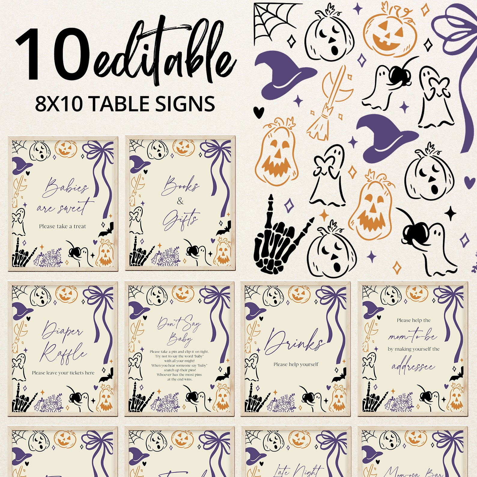 - Purchase this Halloween Baby Shower Table Sign: Pumpkins, Ghosts & Witchy Fun template