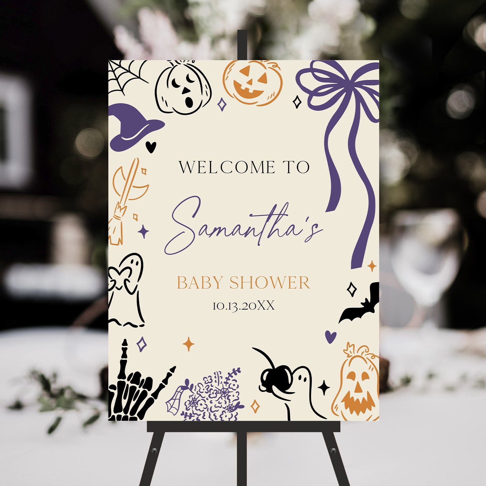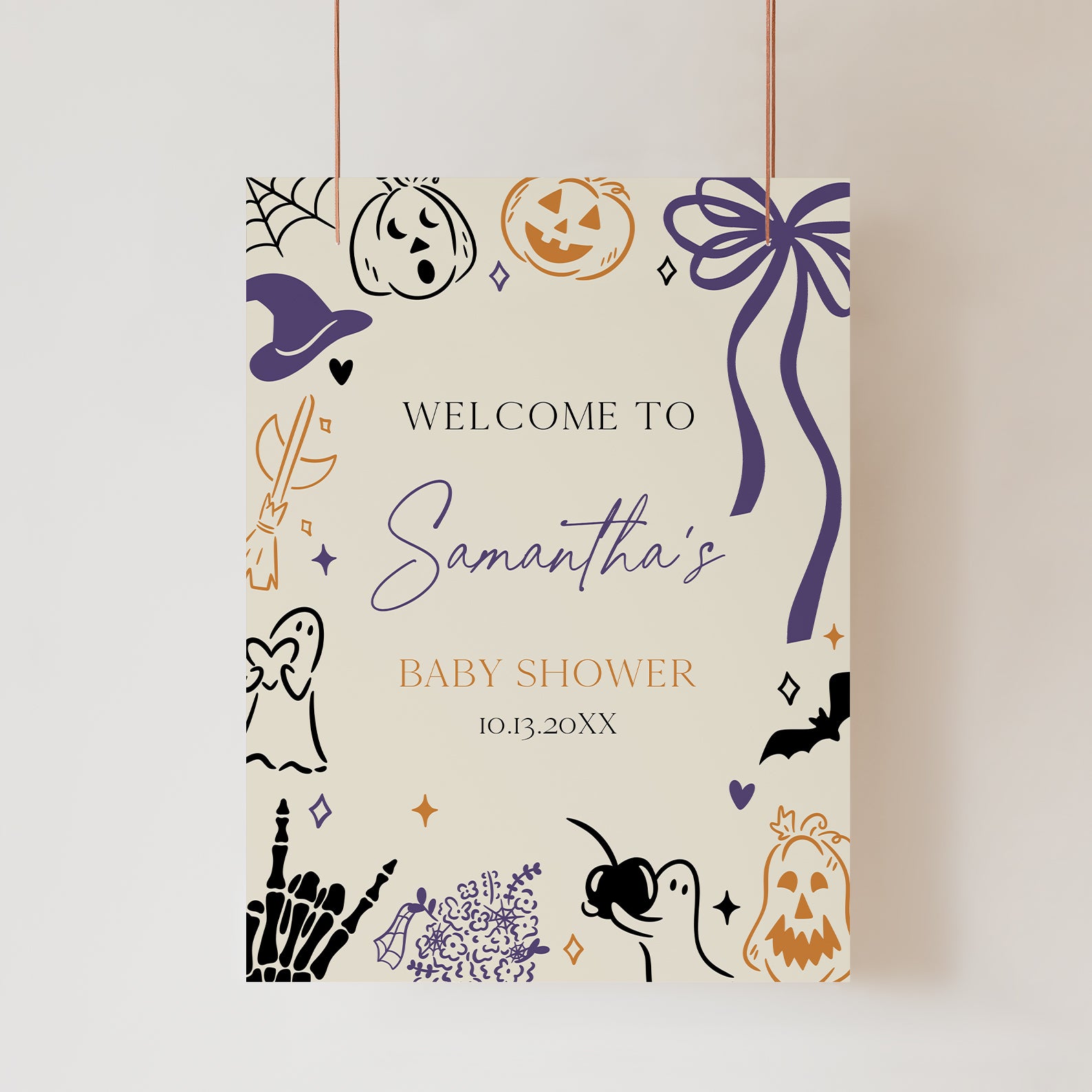 - Purchase this Halloween Baby Shower Welcome Sign: Pumpkins, Ghosts & Witchy Fun template