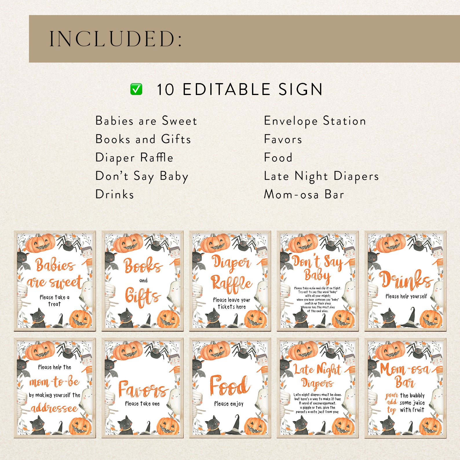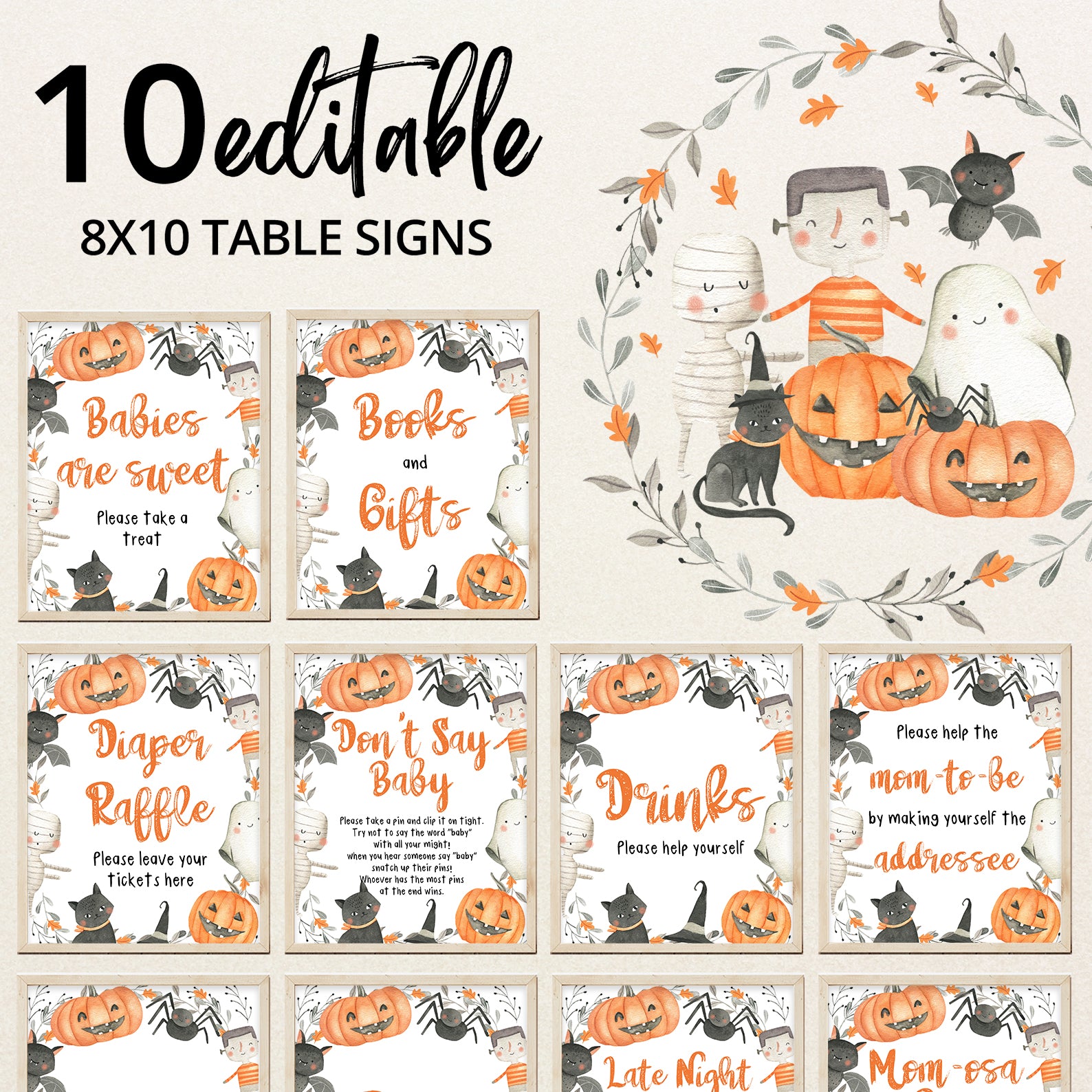 - Purchase this Spooky & Cute Baby Shower Digital Table Sign: Halloween Awaits! template