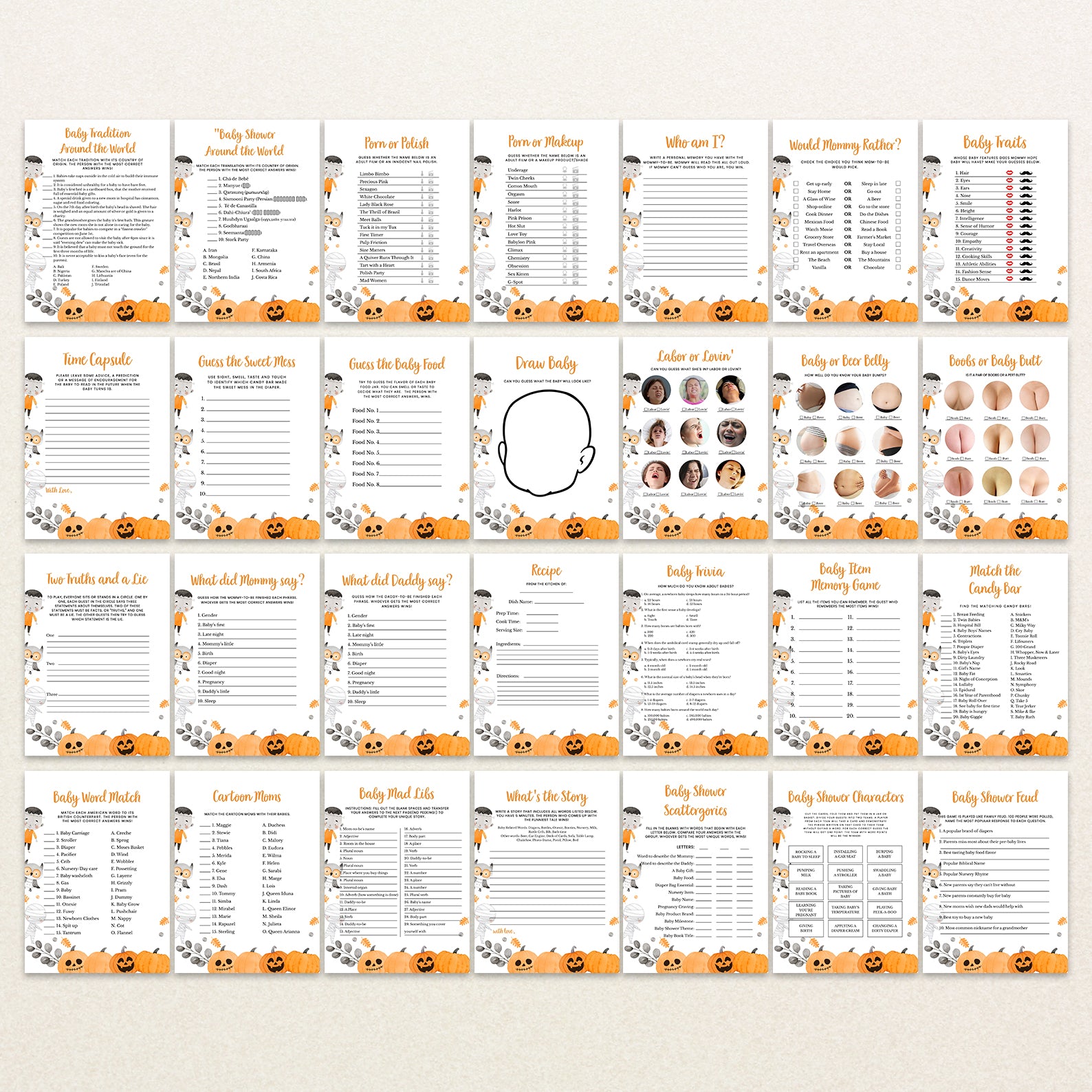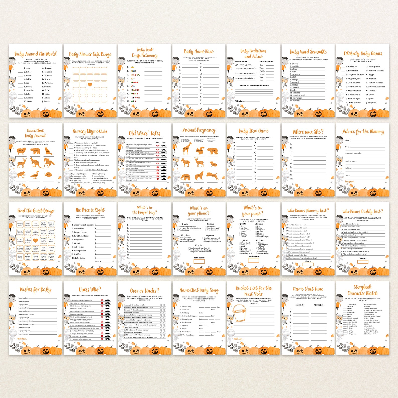 Sweet Pumpkin Baby Shower Game Bundle: Spooktacular Celebration!