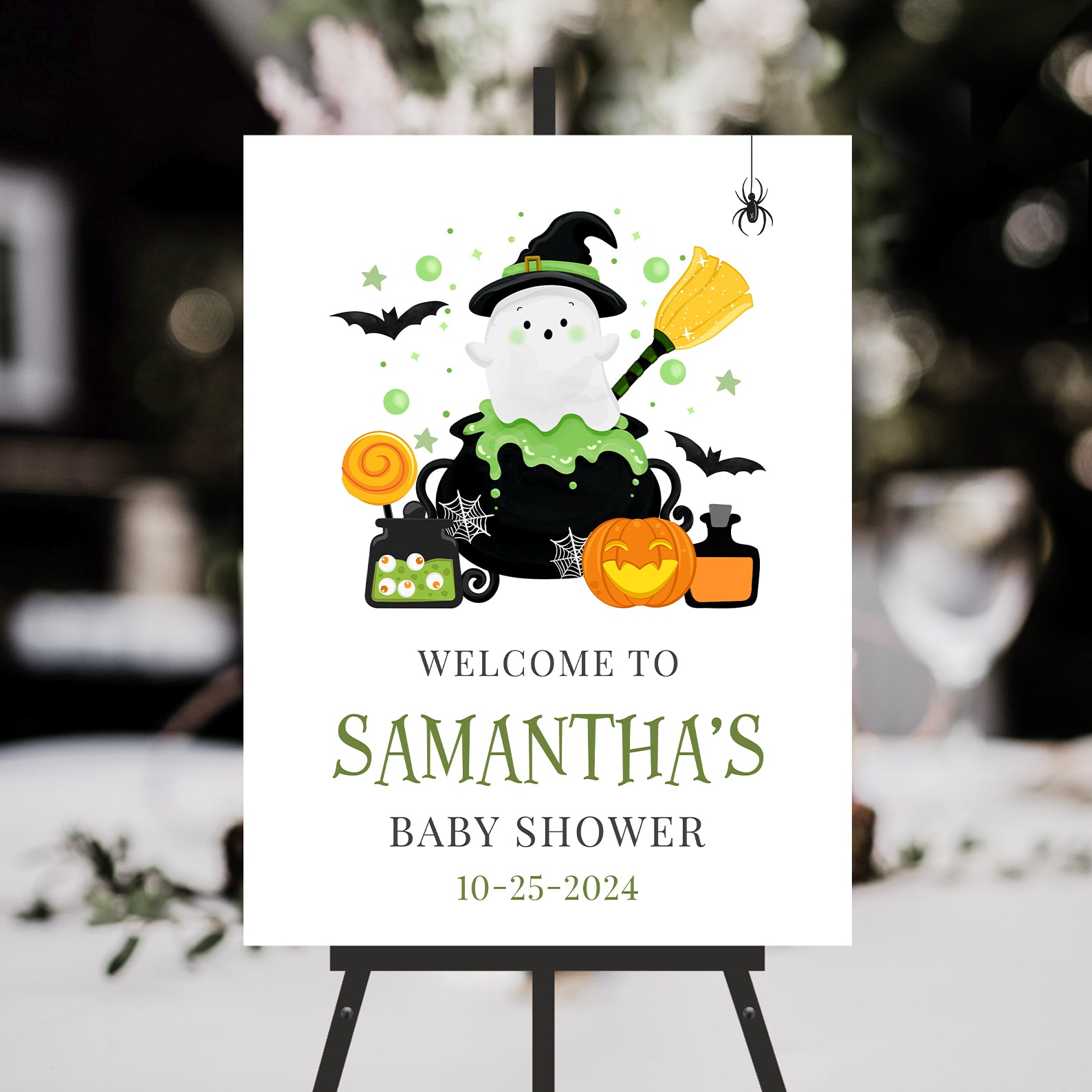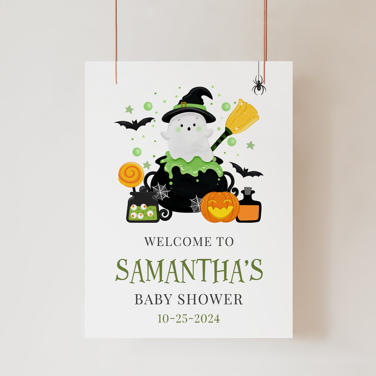 1. Purchase this Little Boo Brewing in Cauldron Green Digital Baby Shower Welcome Sign template