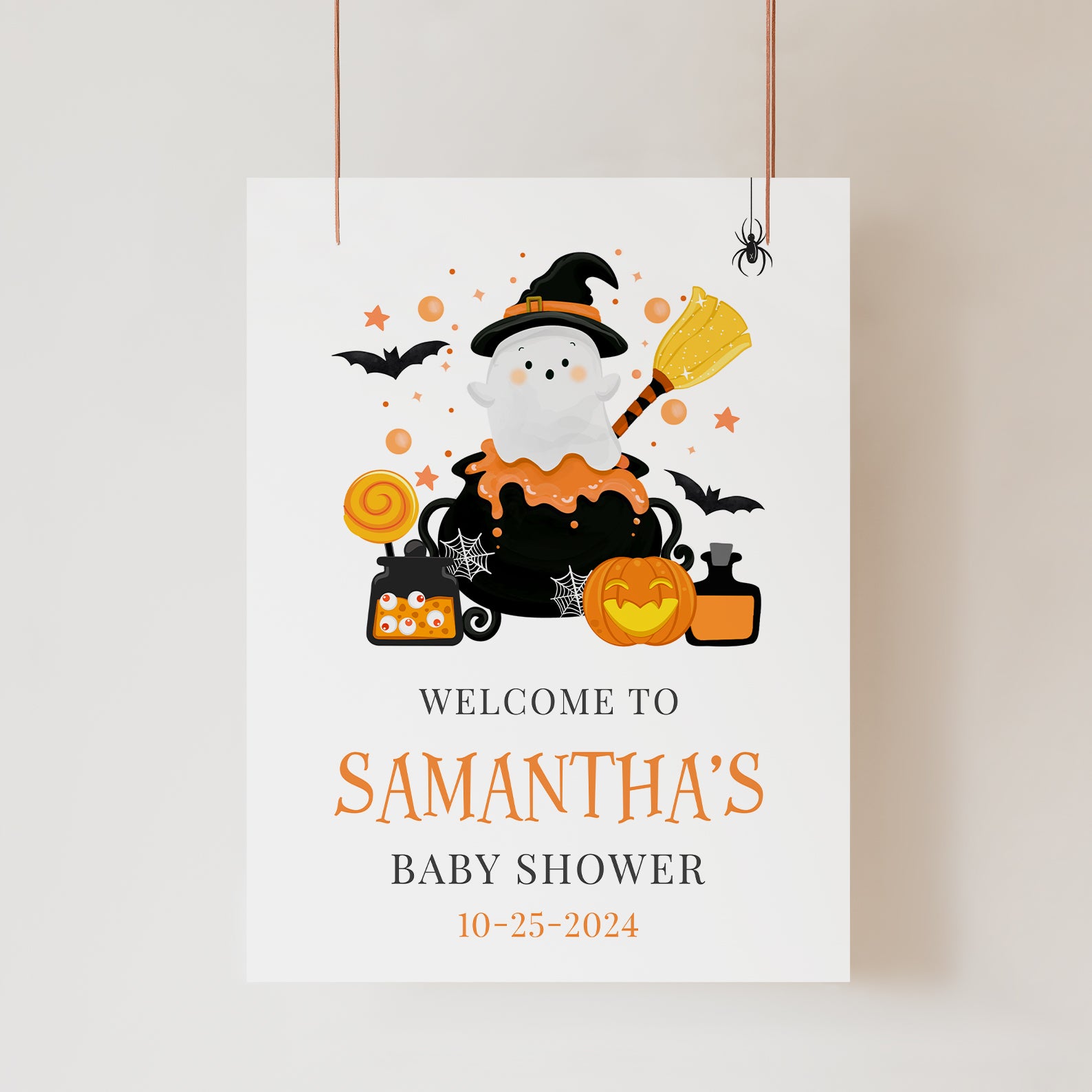 - Purchase this Little Boo Brewing in Cauldron Orange Digital Baby Shower Welcome Sign template