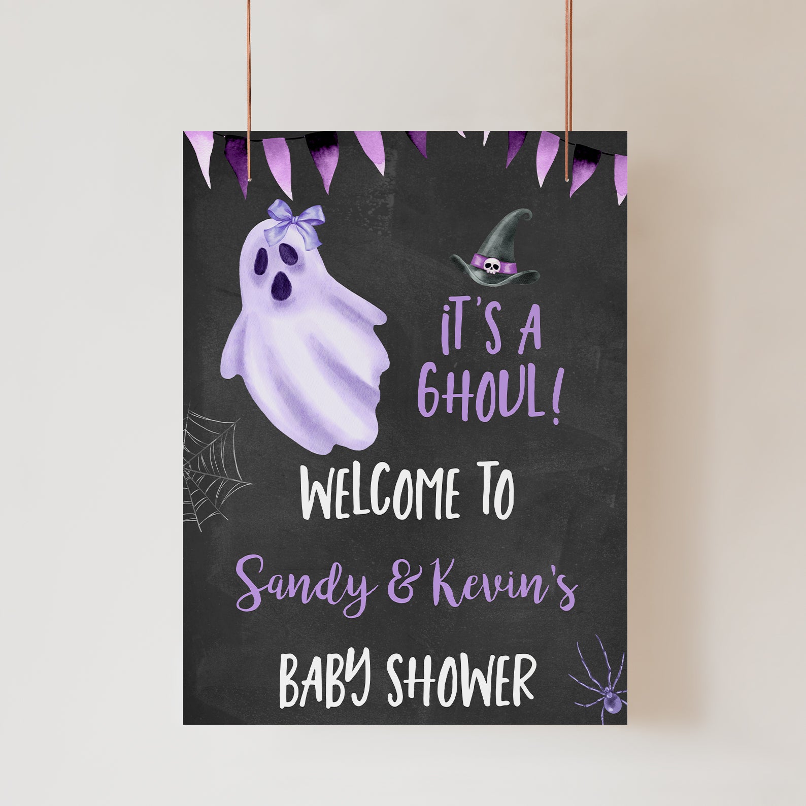 1. Purchase this Oh Sheet Ghoul Baby Shower Digital Welcome Sign: Spooky Fun Awaits! template
