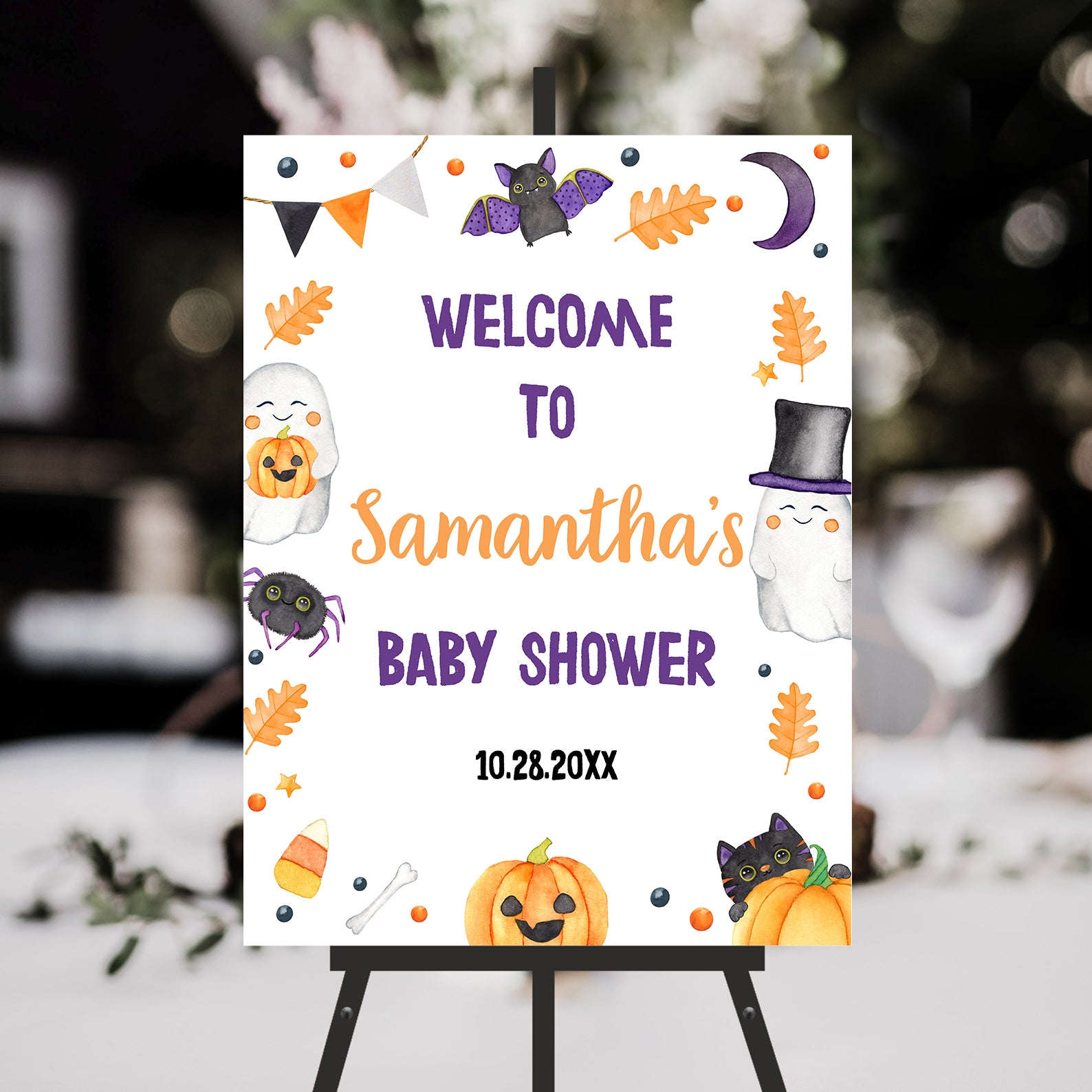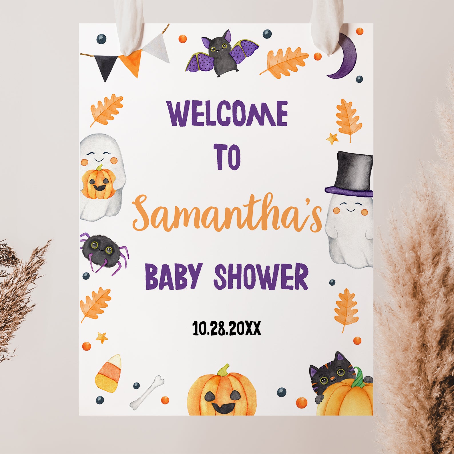 - Purchase this Whimsical Baby Shower Digital Welcome Sign: A Little Boo is Coming! template
